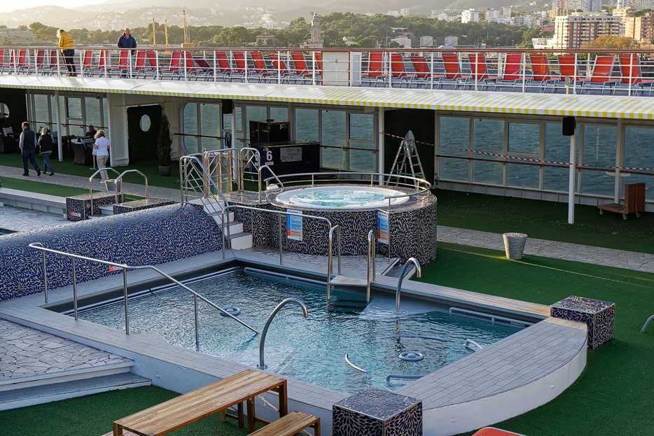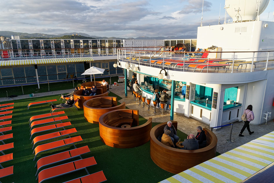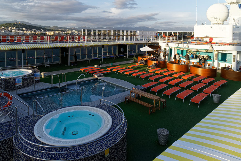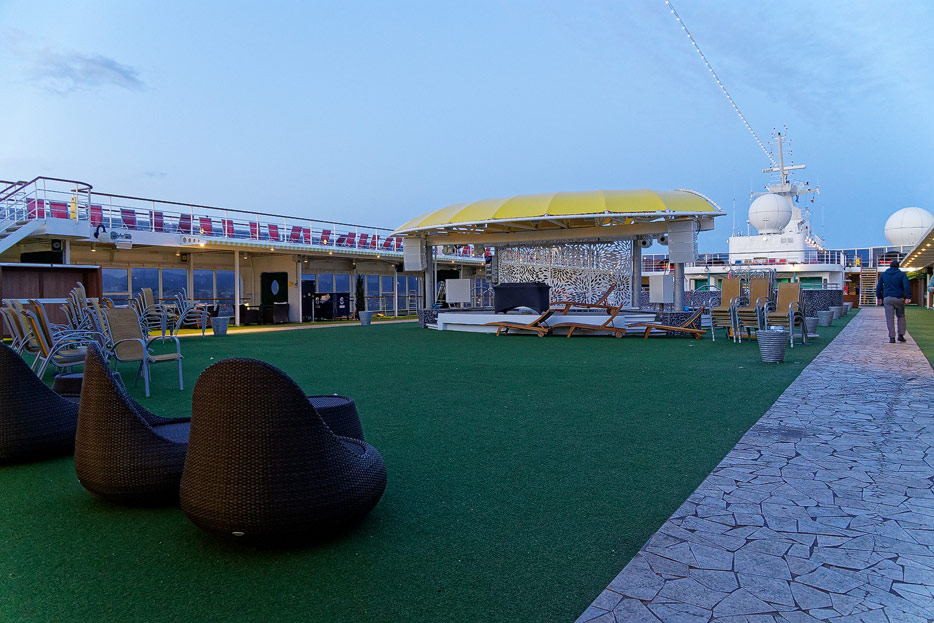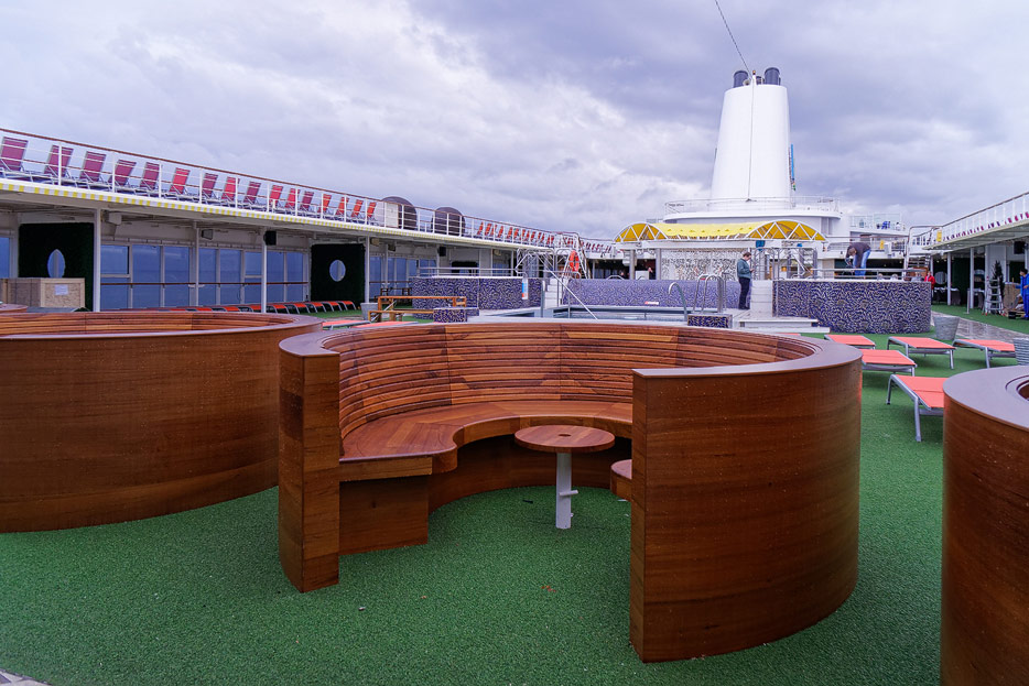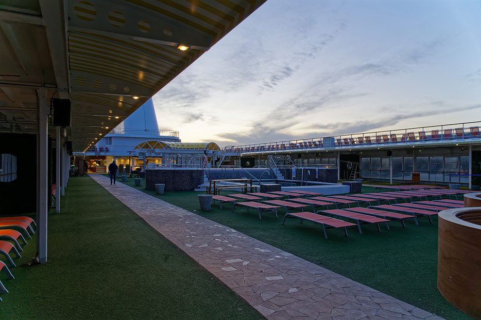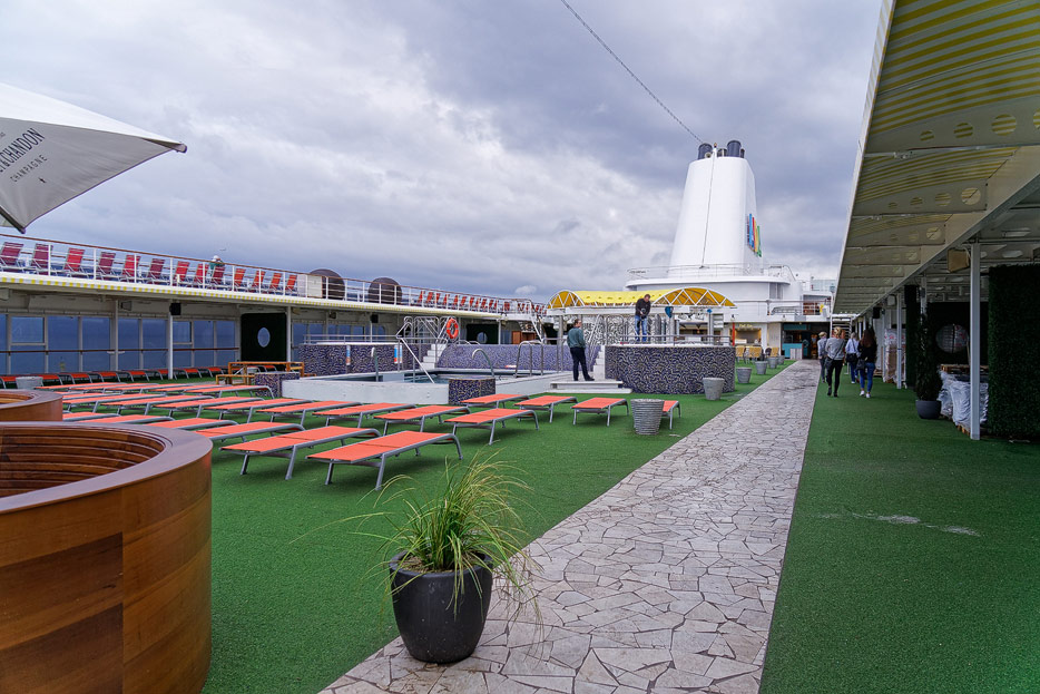 Bilder der Aussendecks der AIDAmira: Pools, Sonnendeck, Promenadendeck