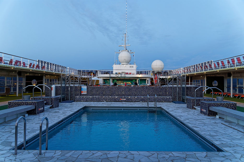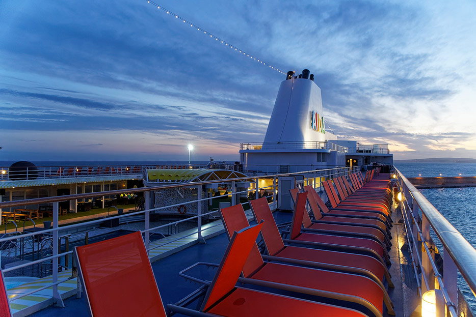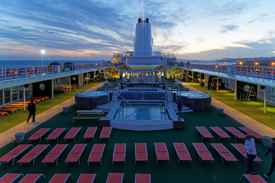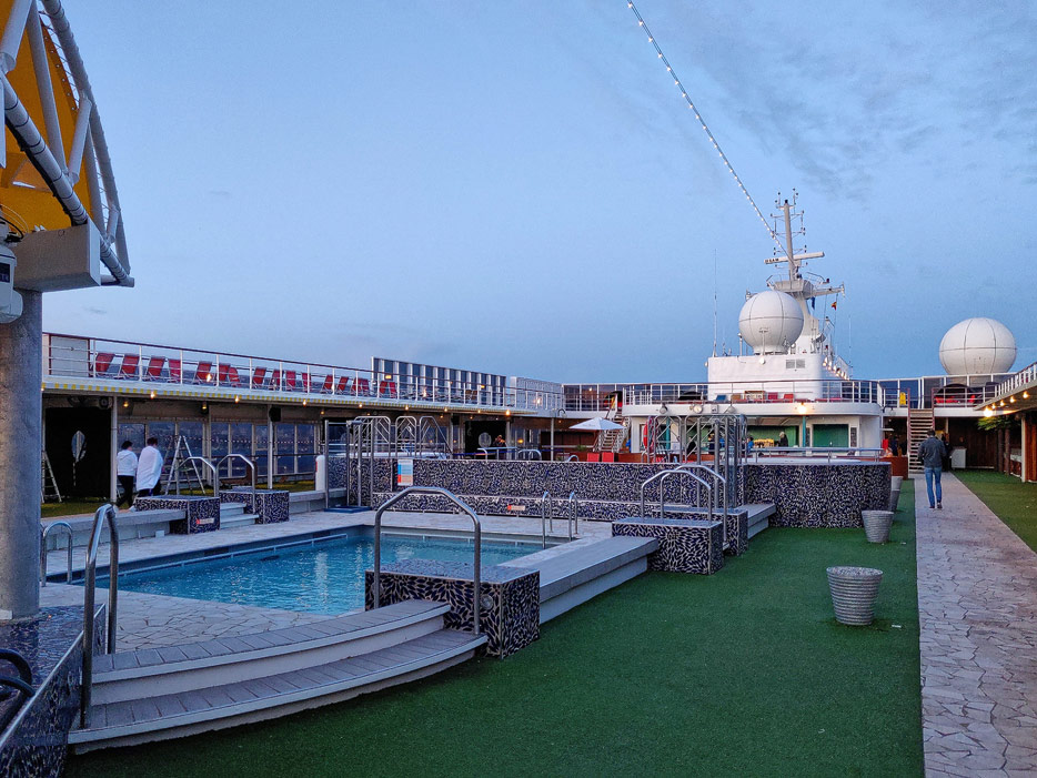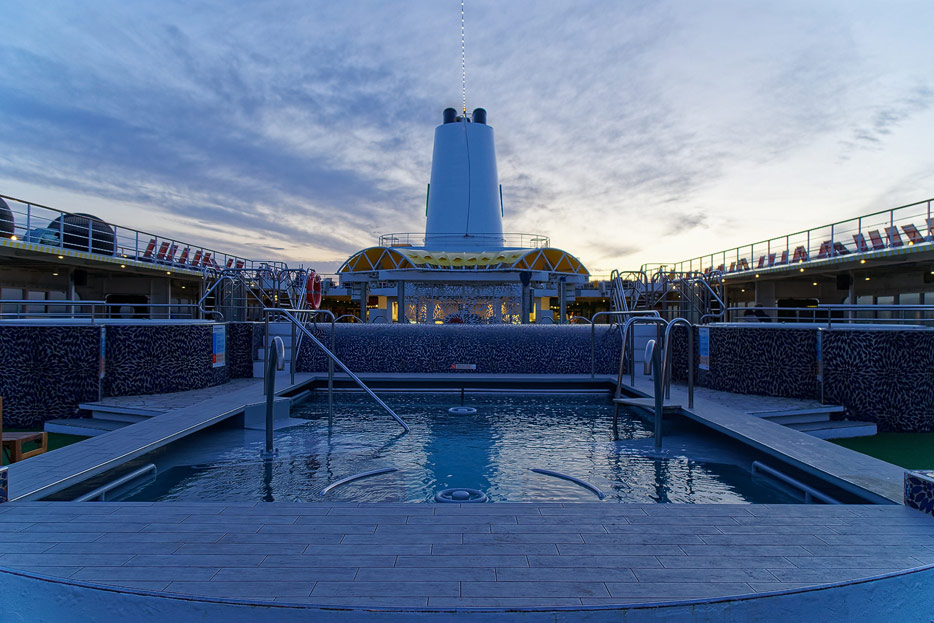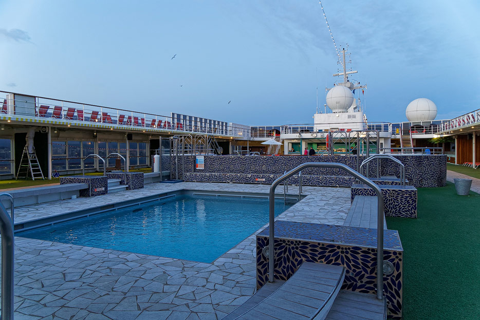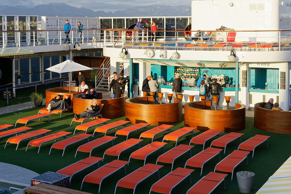 Bilder der Aussendecks der AIDAmira: Pools, Sonnendeck, Promenadendeck