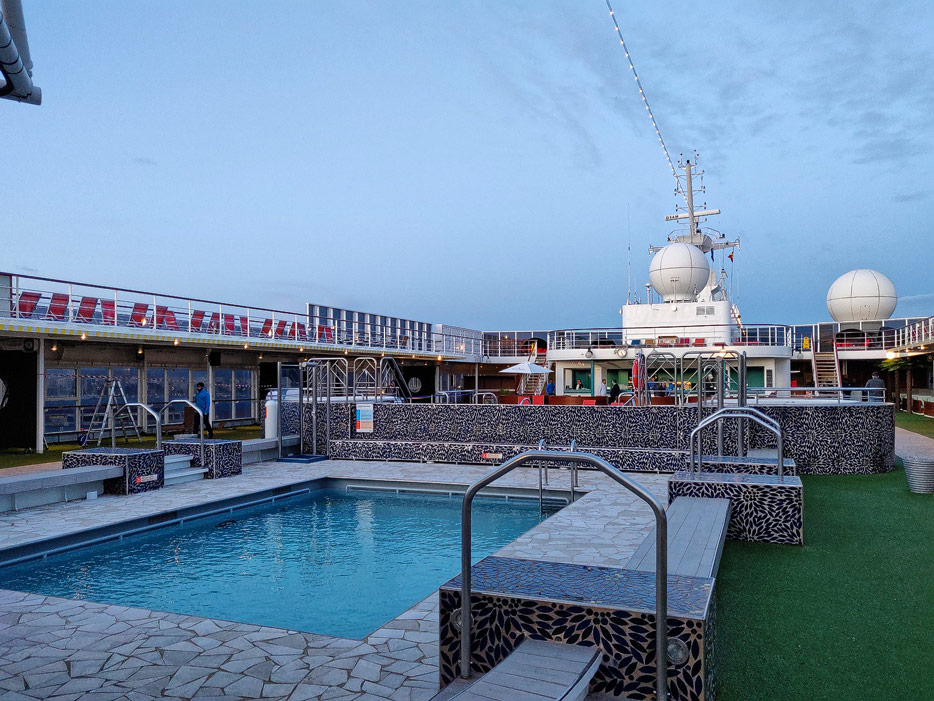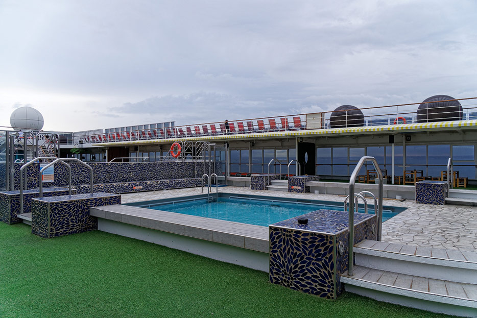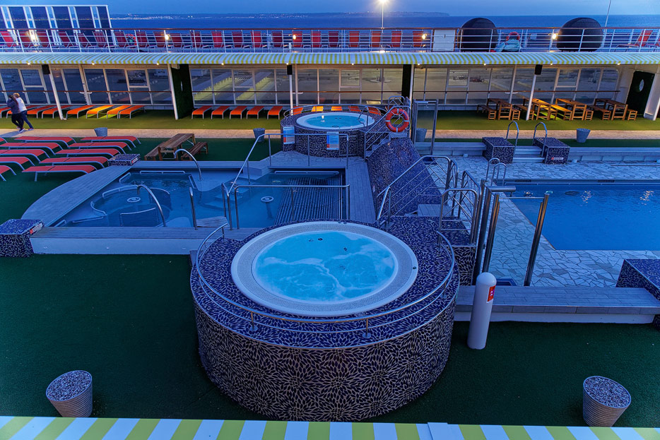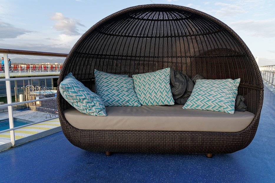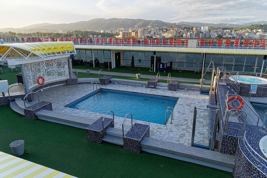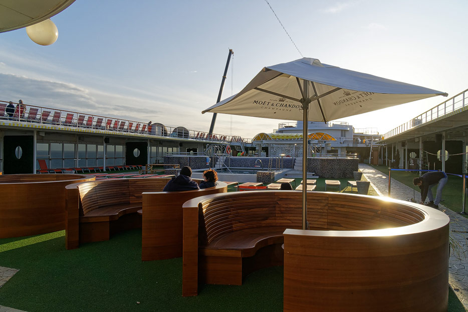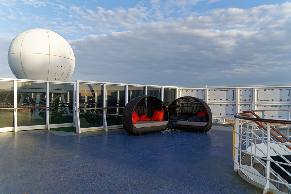 Bilder der Aussendecks der AIDAmira: Pools, Sonnendeck, Promenadendeck