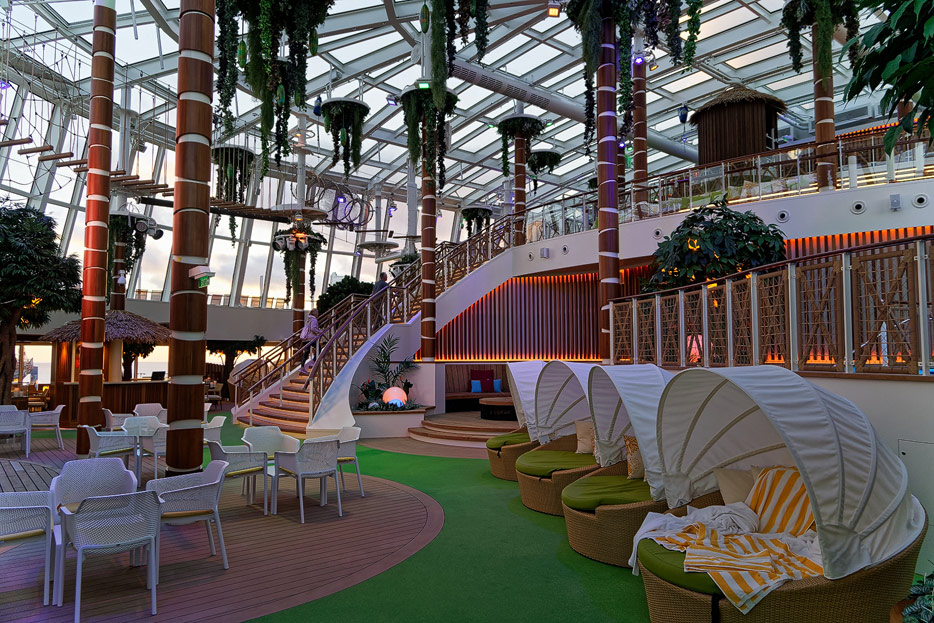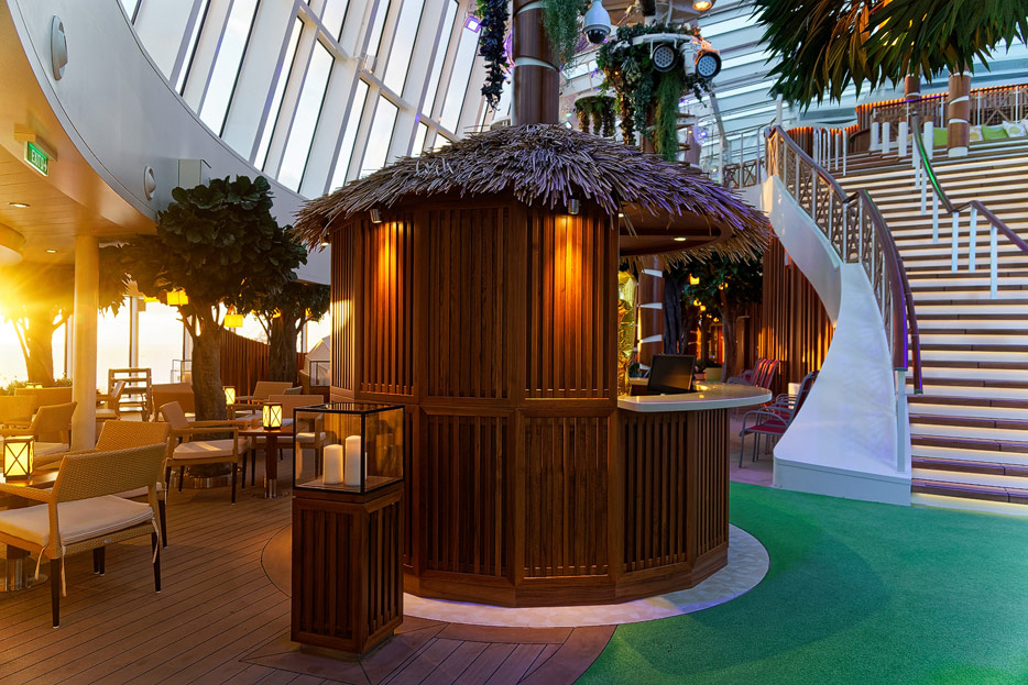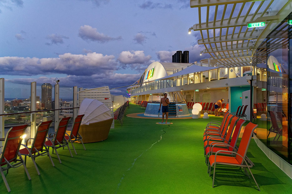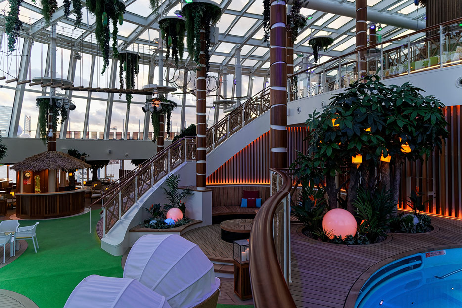 Bilder der Pools & Außendecks der AIDAnova inklusive Beach Club, Four Elements, Wasserrutschen, Minigolf, Lanaideck und Pool am Sonnendeck 18