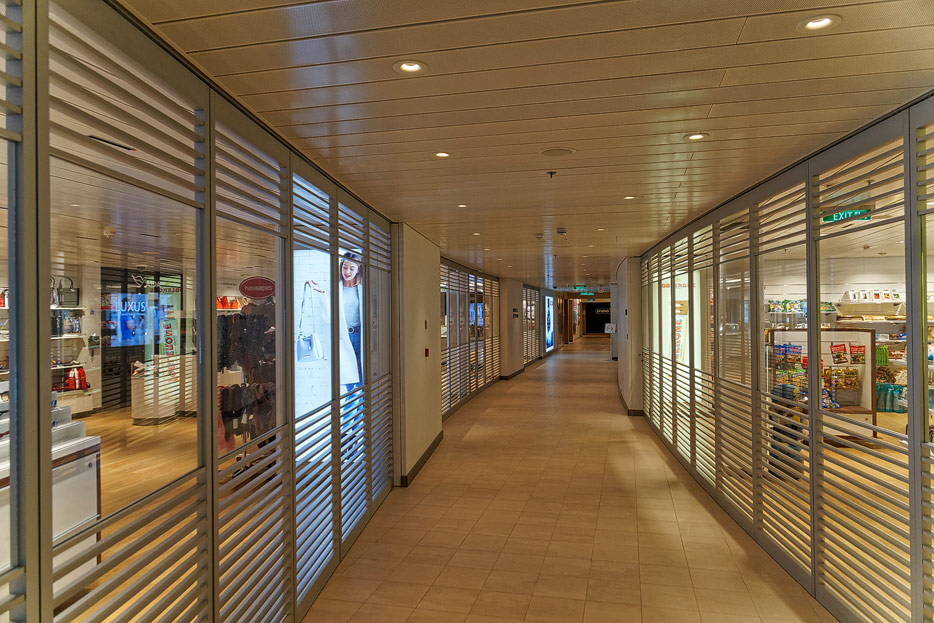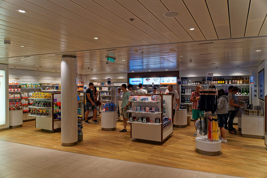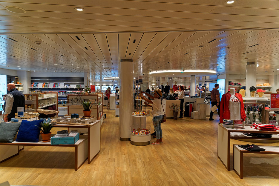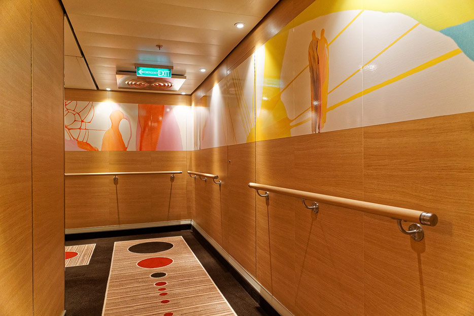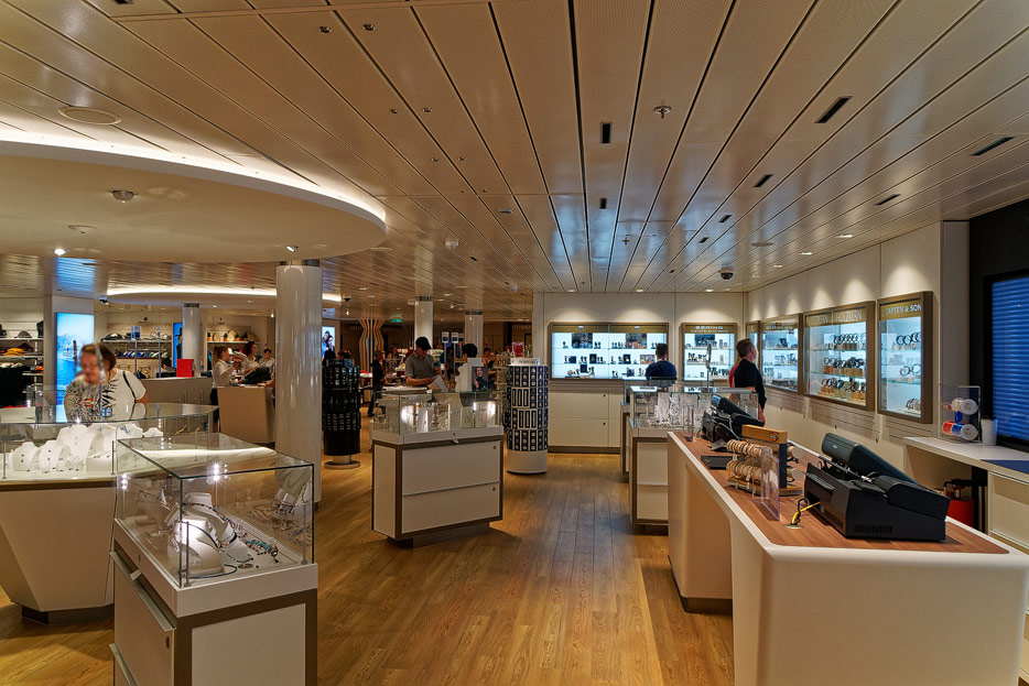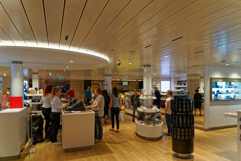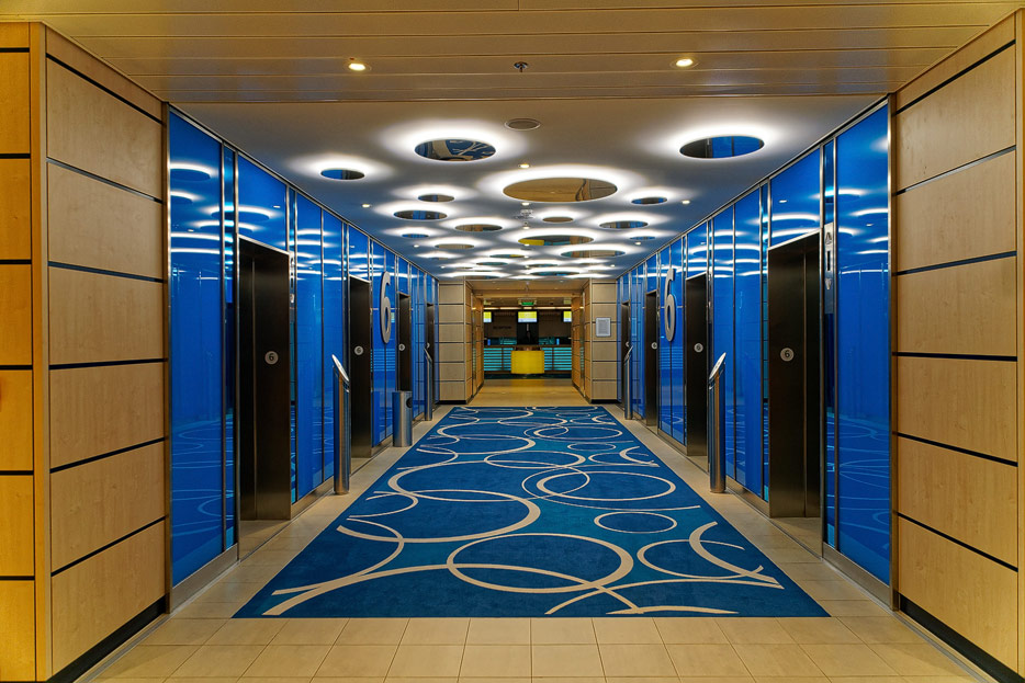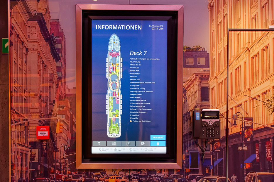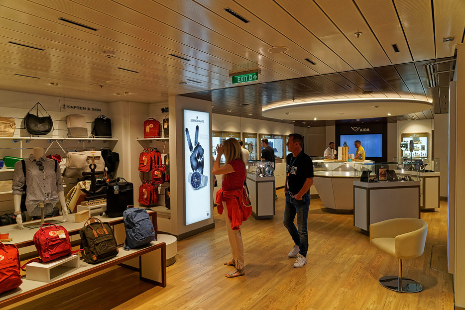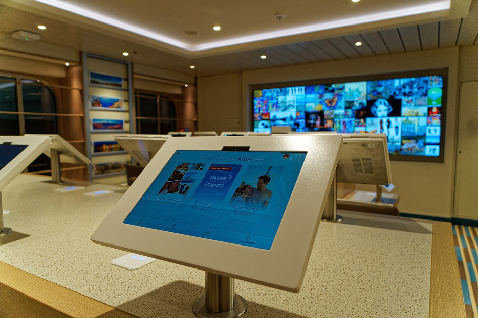 Bilder sonstiger Bereiche auf der AIDAnova, u.a. Rezeption, Shops, Waschsalon, Treppenhäuser und Aufzüge