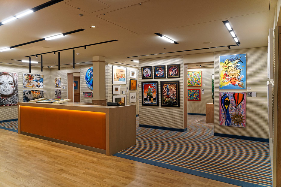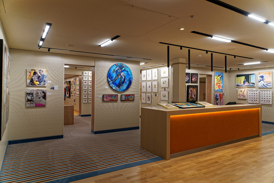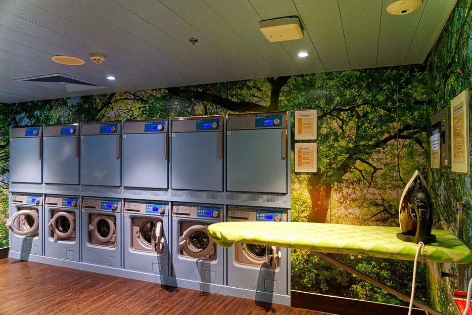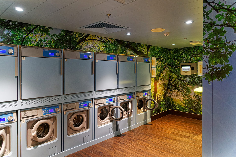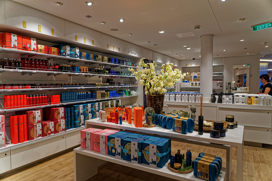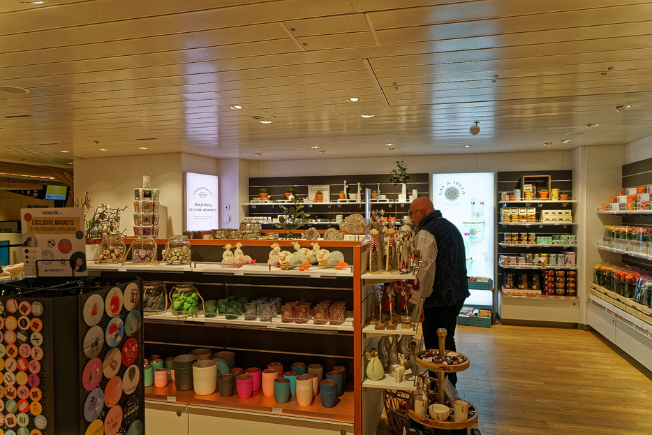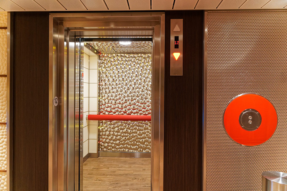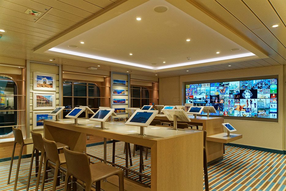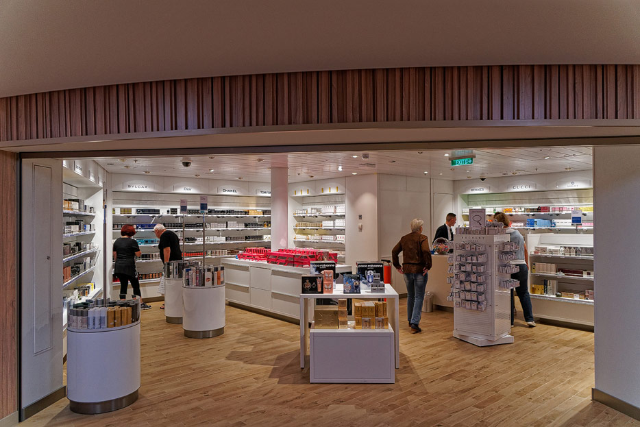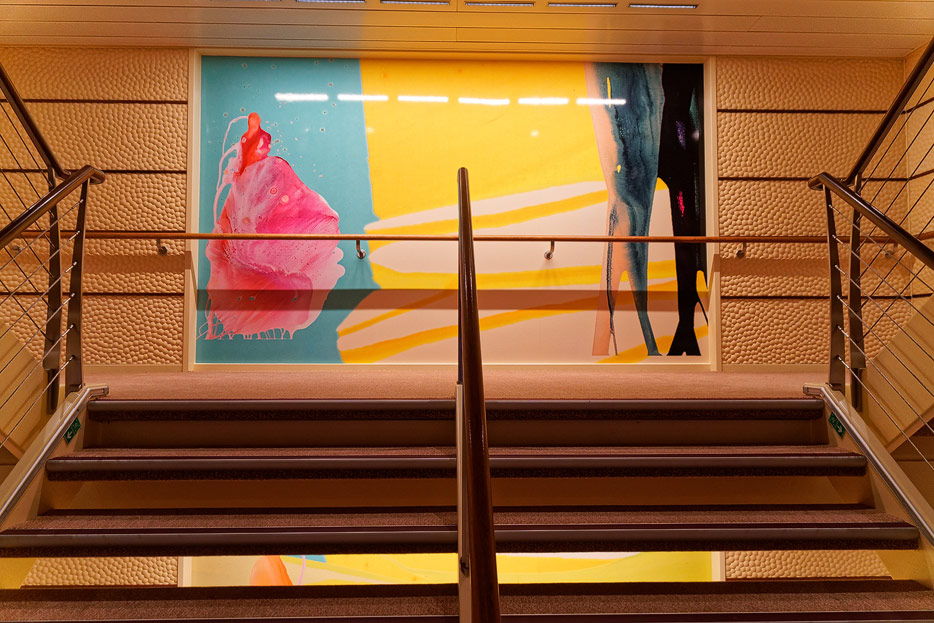Bilder sonstiger Bereiche auf der AIDAnova, u.a. Rezeption, Shops, Waschsalon, Treppenhäuser und Aufzüge