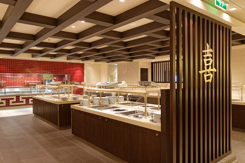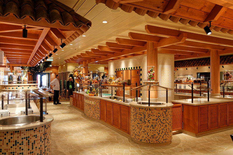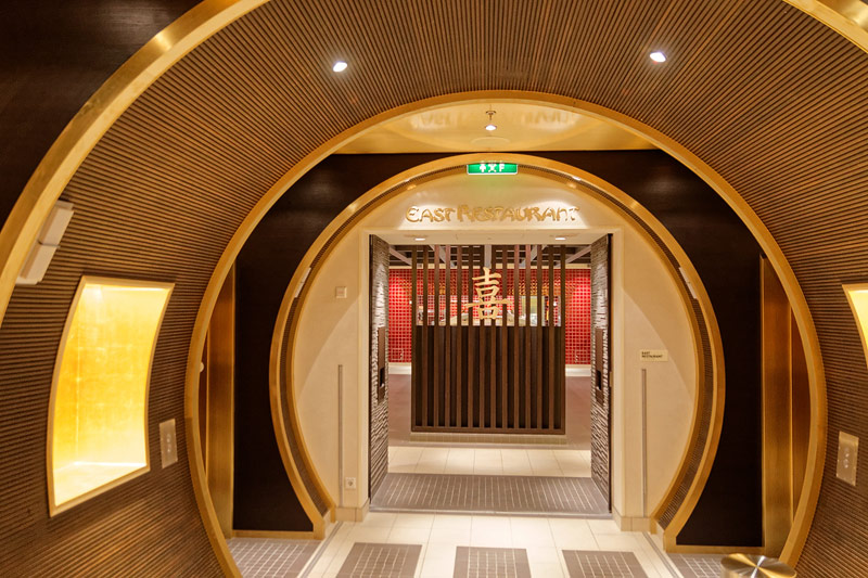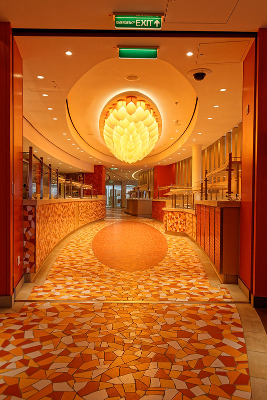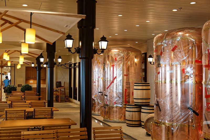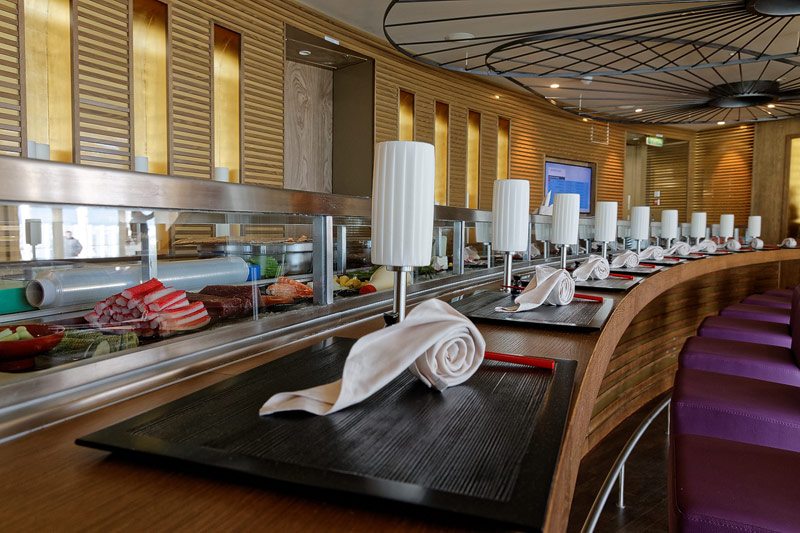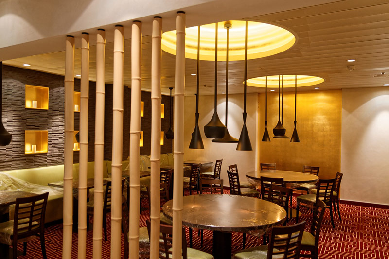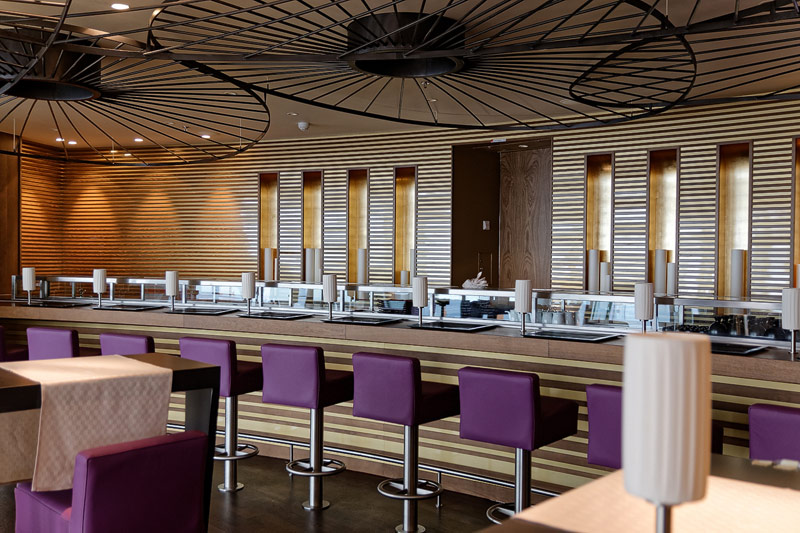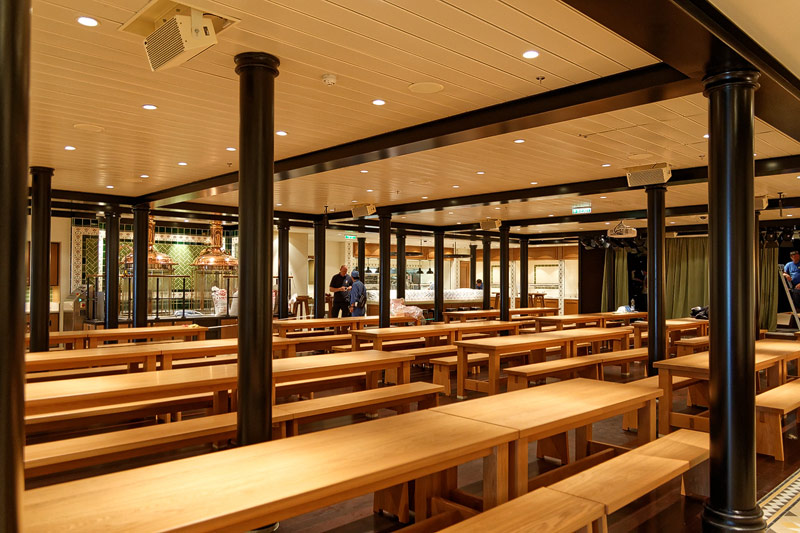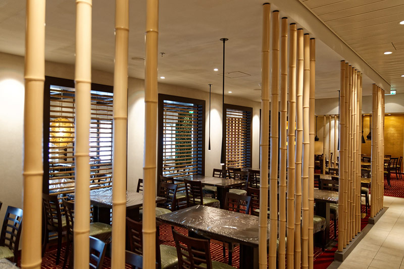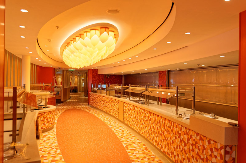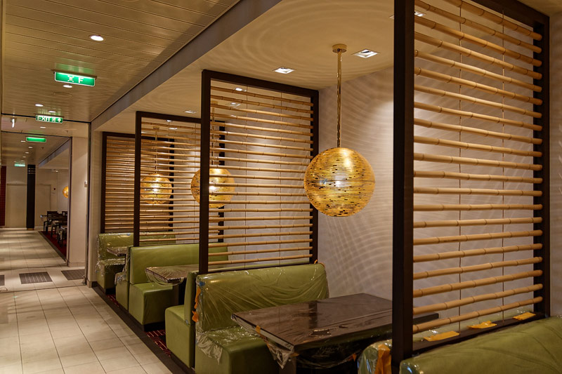 Restaurants auf der AIDAprima. Hinweis: Beachten Sie, dass die Bilder noch während der Bauphase entstanden sind - sin sind im East-Restaurants beispielsweise noch Schitzfolien-Abdeckungen über Bänken und Stühlen, die im Passagierbetrieb natürlich abgenommen werden.