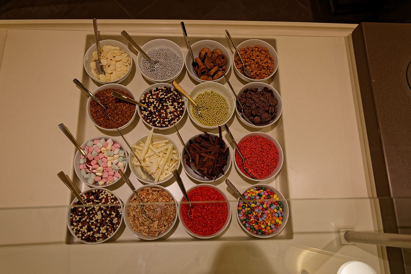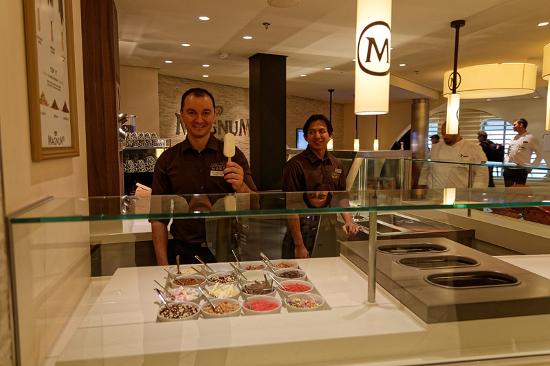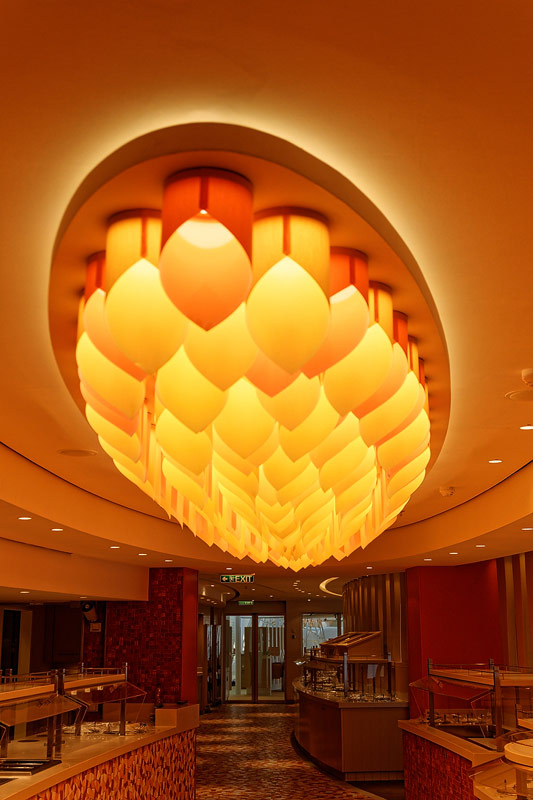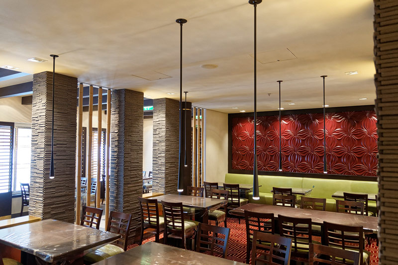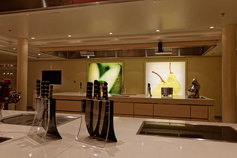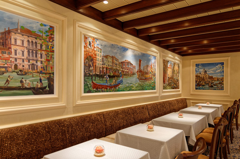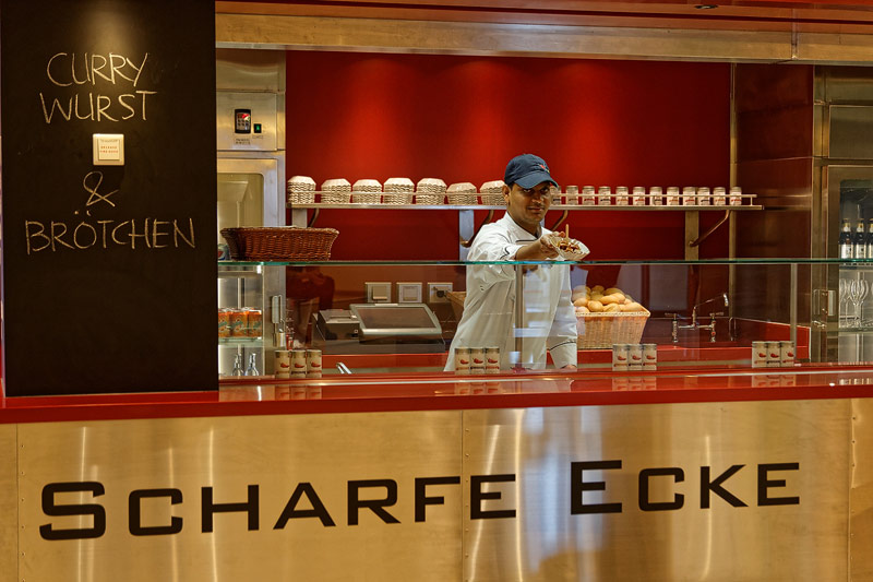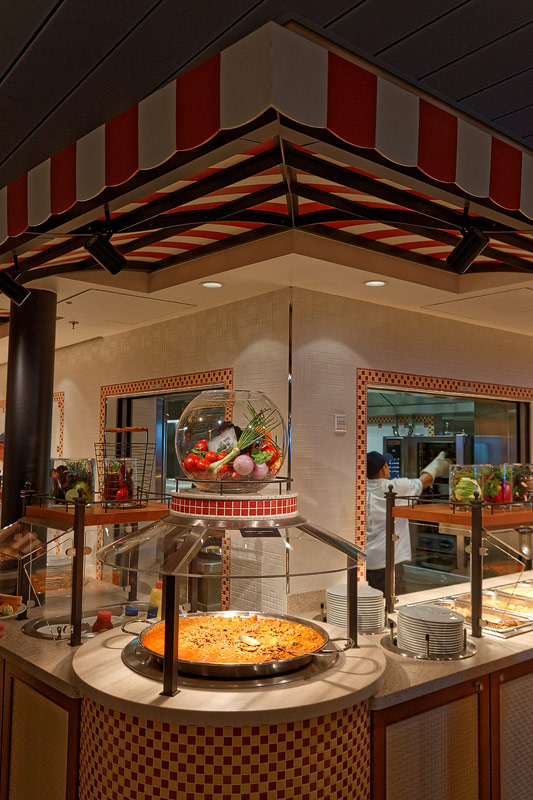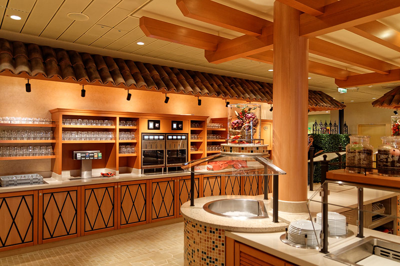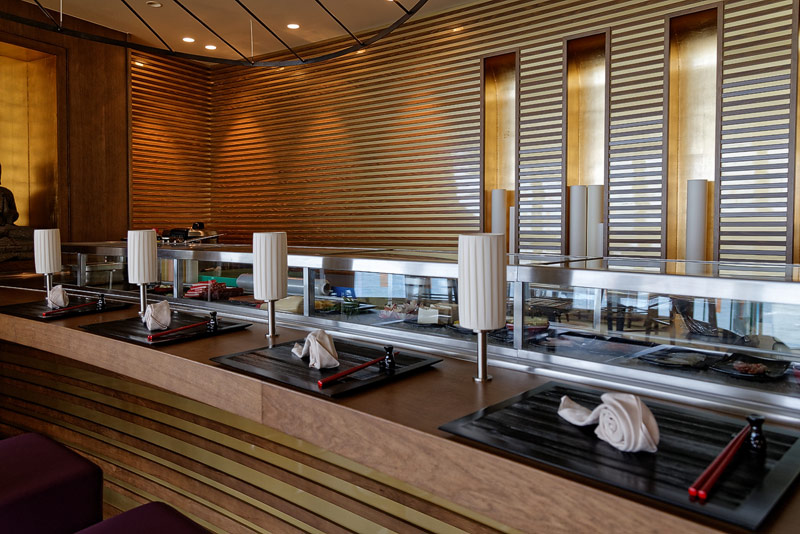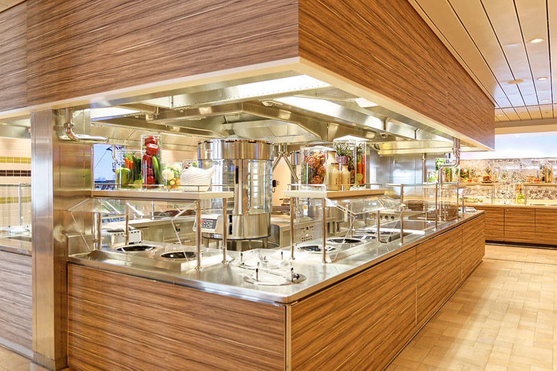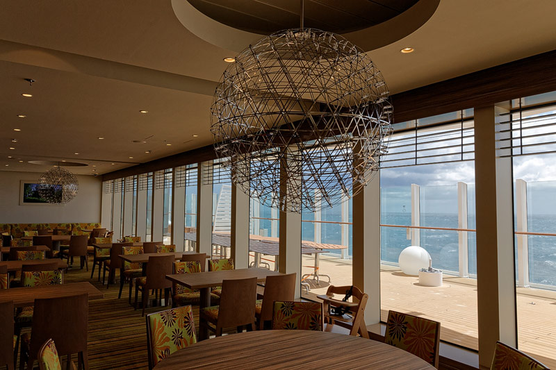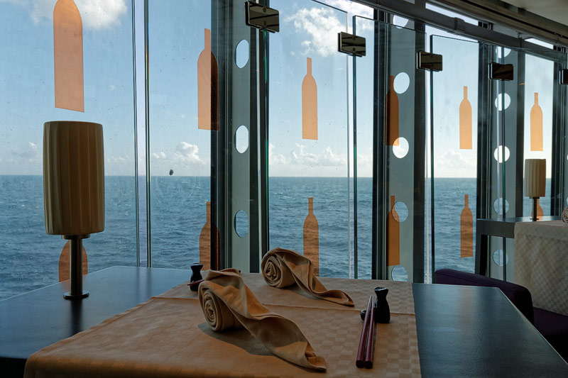 Restaurants auf der AIDAprima. Hinweis: Beachten Sie, dass die Bilder noch während der Bauphase entstanden sind - sin sind im East-Restaurants beispielsweise noch Schitzfolien-Abdeckungen über Bänken und Stühlen, die im Passagierbetrieb natürlich abgenommen werden.