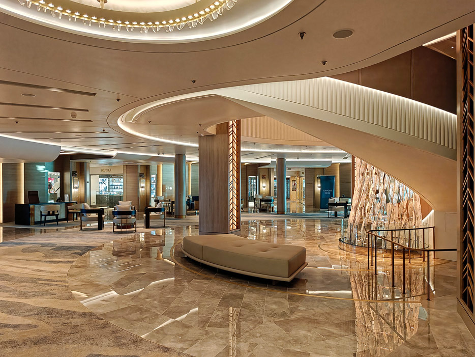Bilder des Atriums der Allura von Oceania Cruises
