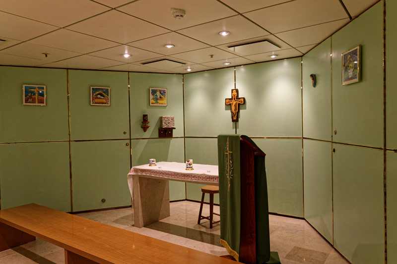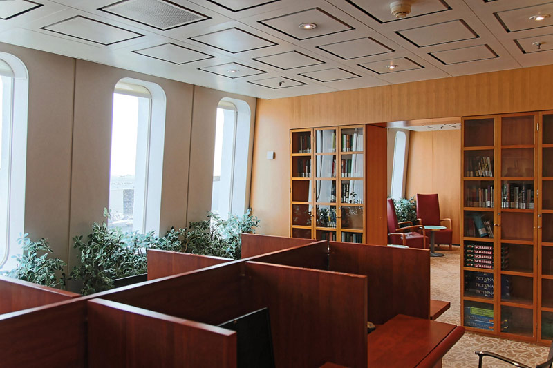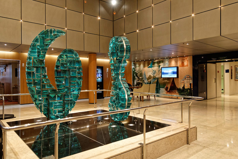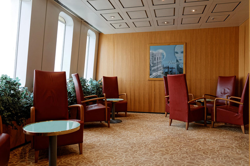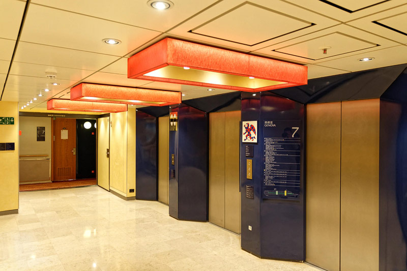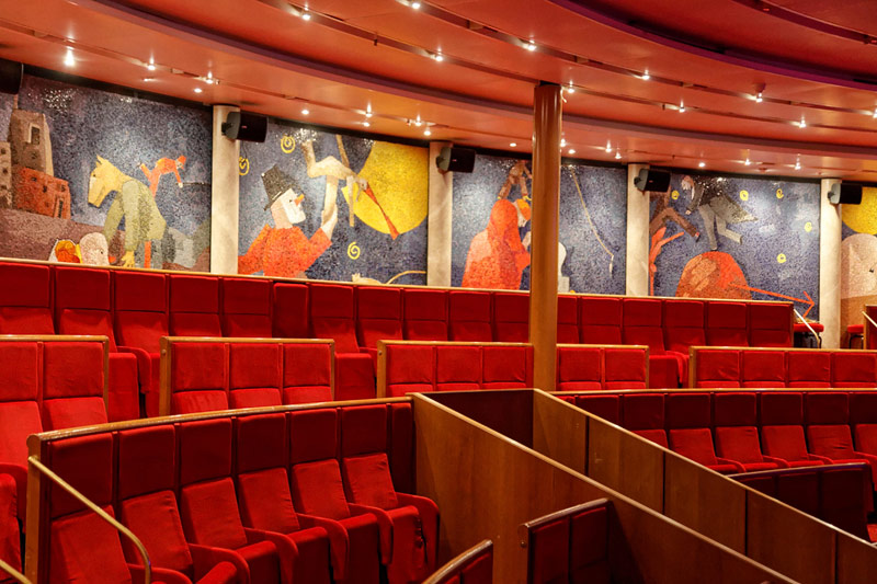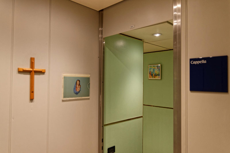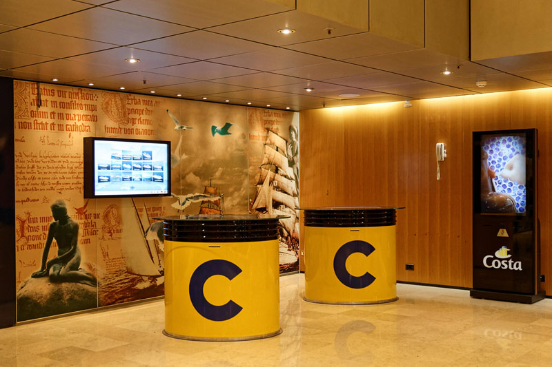 Bilder weiterer Bereiche der Costa neoClassica: Atrium und Rezeption, Casino, Kapelle, Theater, Treppenhaus und Aufzüge, Bibliothek