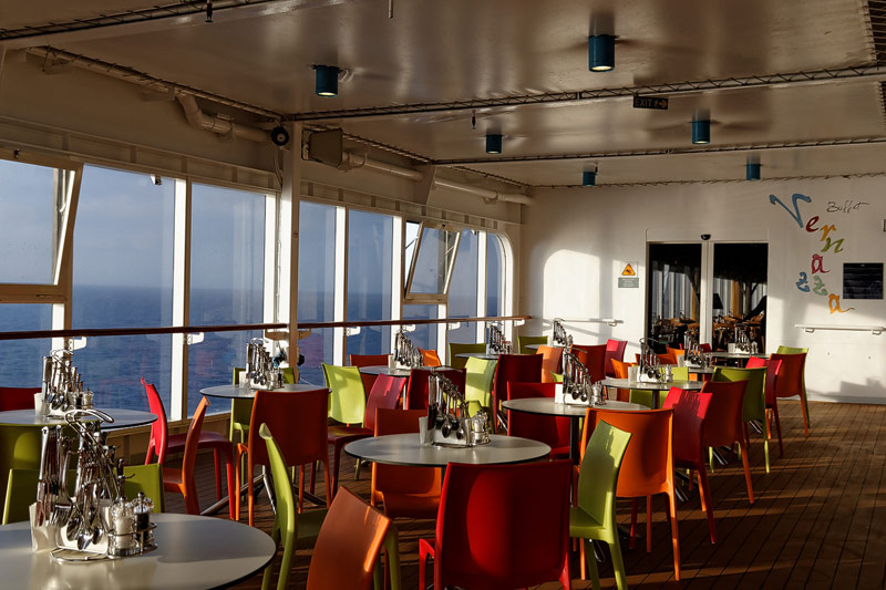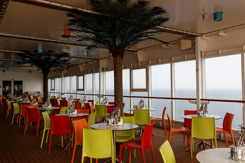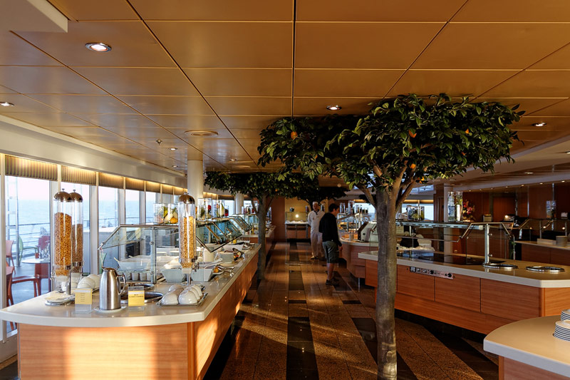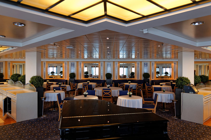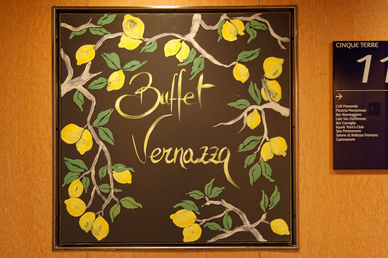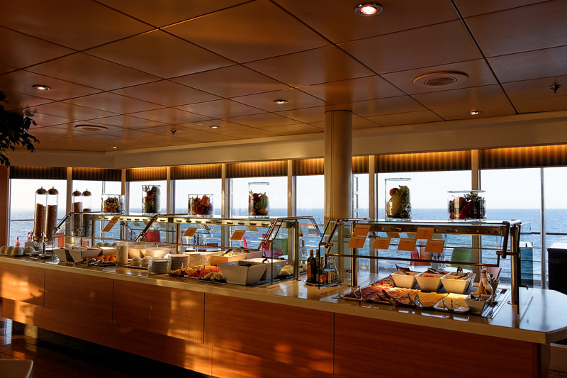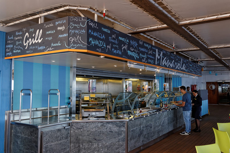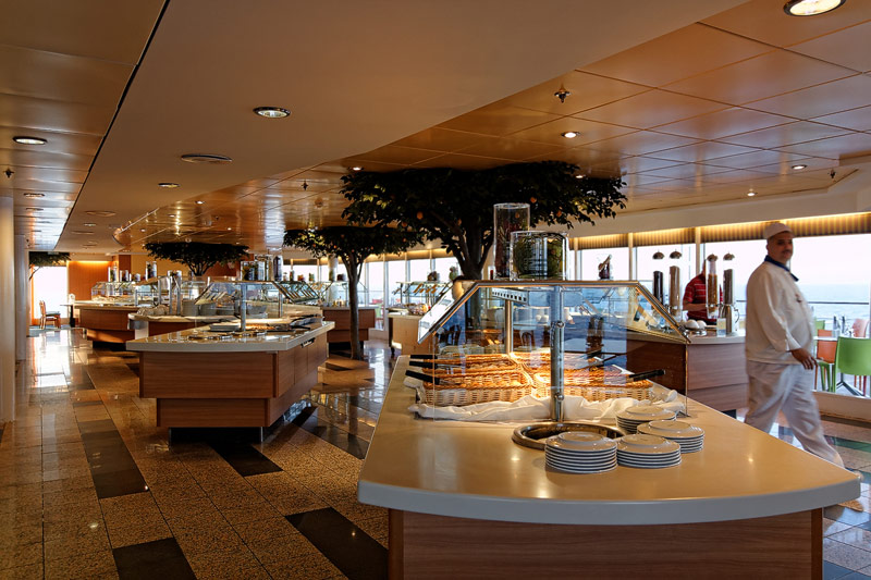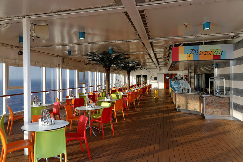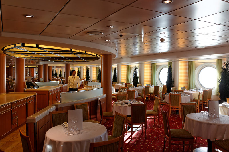 Restaurants der Costa neoRiviera: Hauptrestaurants Cetara und St. Tropez, Buffet-Restaurant Vernazza, Pool-Grill, Pizzeria -- Das Cetara dient als reguläres Hauptrestaurant, das ursprünglich zweite Hauptrestaurant Saint Tropez wird aktuell lediglich für Veranstaltungen und als Ausweich-Restaurant bei Vollbelegung des Schiffs genutzt