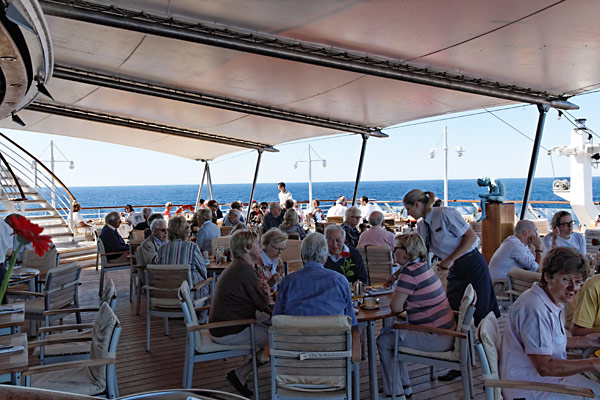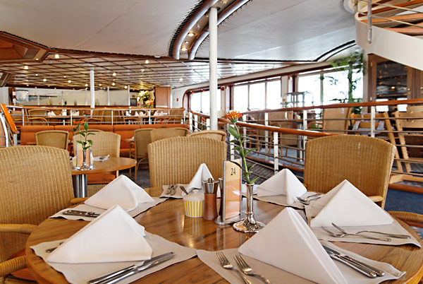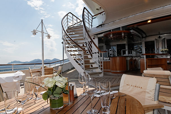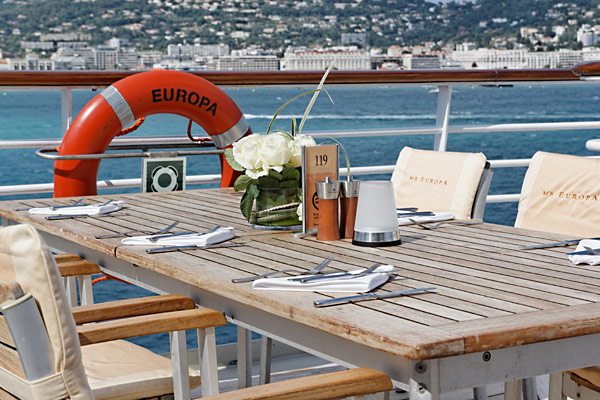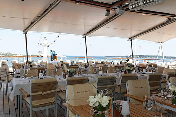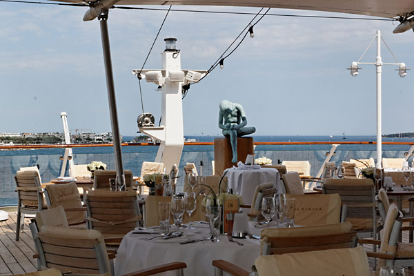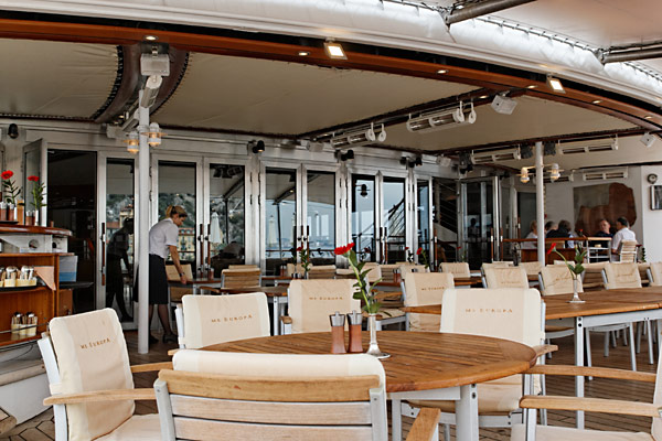 Restaurants der MS Europa: Restaurant Dieter Müller, Venezia, Europa Restaurant, Lido Café, Nachmittagskaffee im Club Belvedere