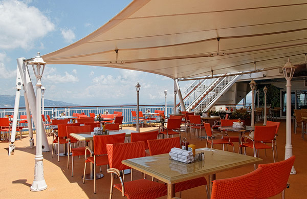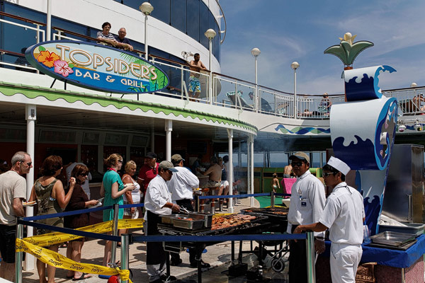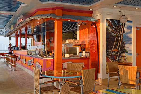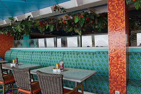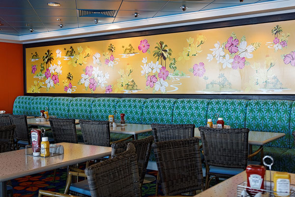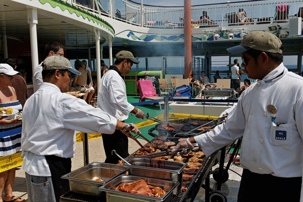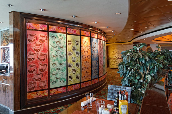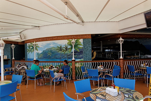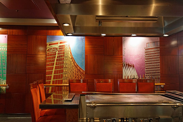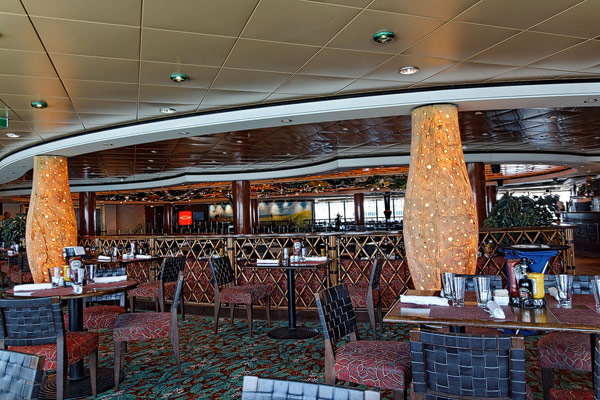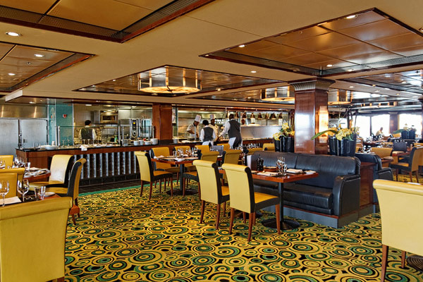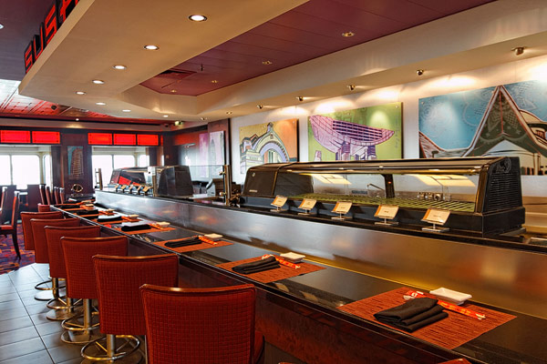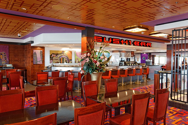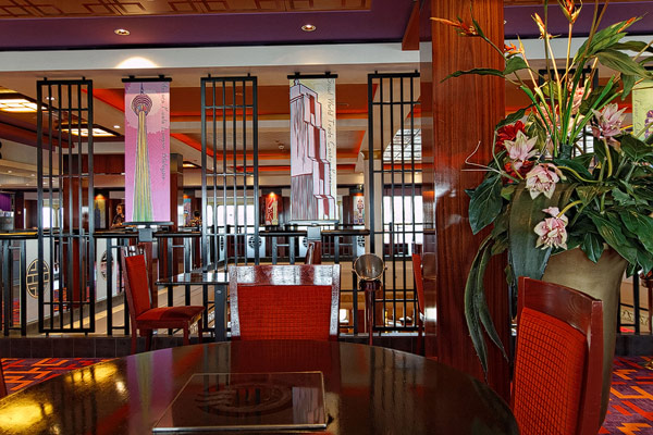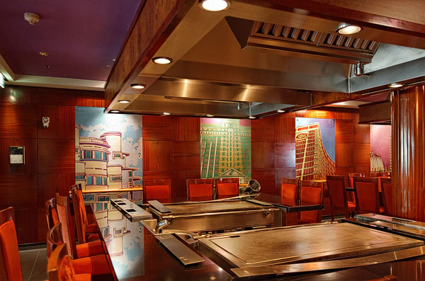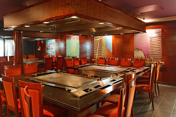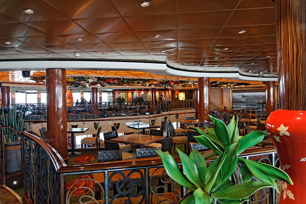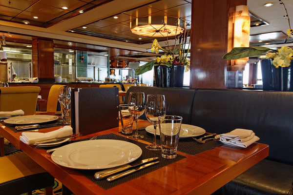Restaurants der Norwegian Jade: Alizar, Grand Pacific, Garden Cafe, Great Outdoors, Cagney's Steakhouse, Blue Lagoon, Pool Grill, Bali Hai Grill, Jasmin Garden, Le Bistro, Moderno Churrascaria, Papa's Italien Kitchen, Teppanyaki, Sushi