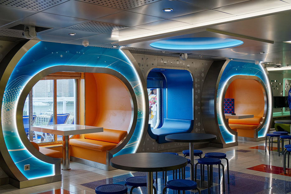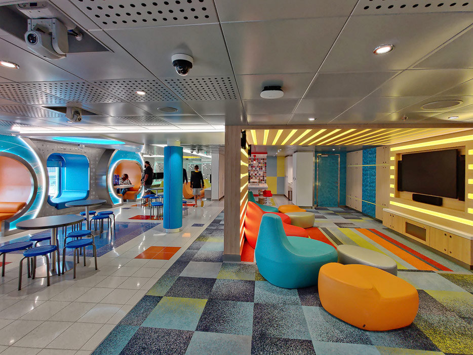 Bilder einiger Bereiche für Kinder und Teenager auf der Carnival Celebration (nicht enthalten, weil zum Fotografieren nicht zugänglich: Dr. Seuss Bookville, Camp Ocean, Family Harbor Lounge)