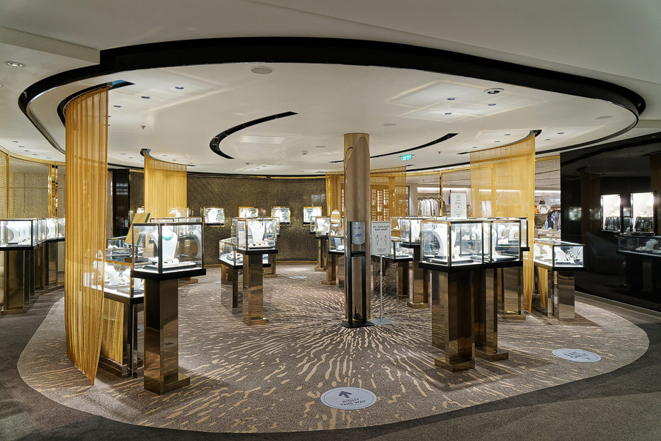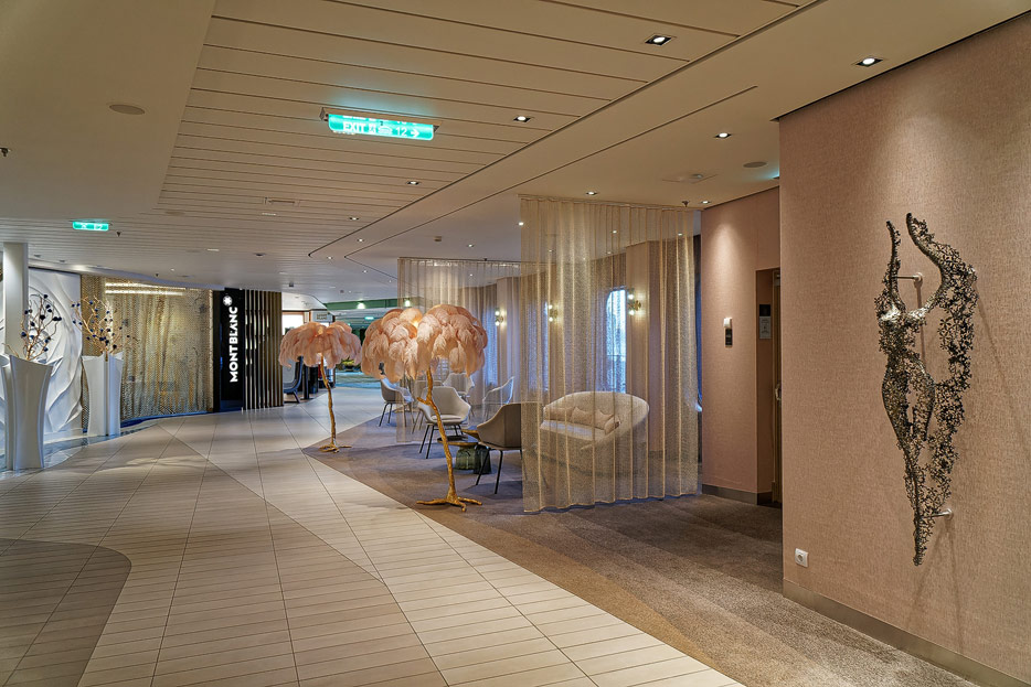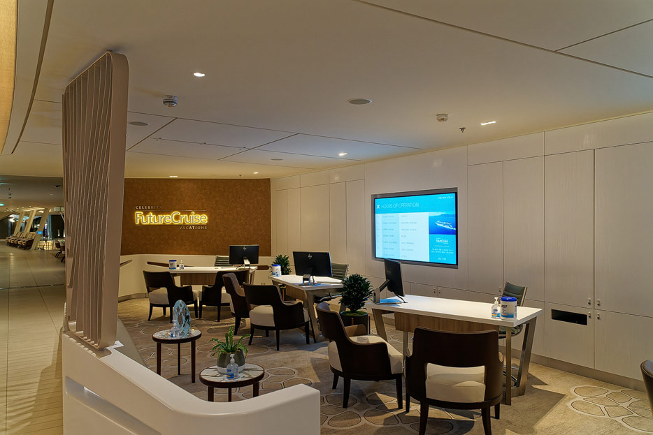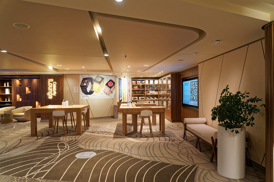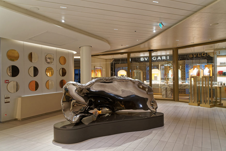 Bilder weiterer Bereiche der Celebrity Apex: Kunst, Treppenhaus, Aufzüge, Rezeption, Destination Gateway, Shops