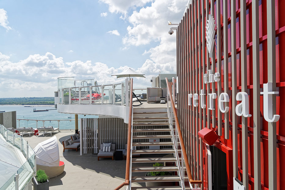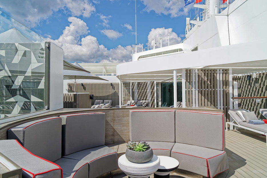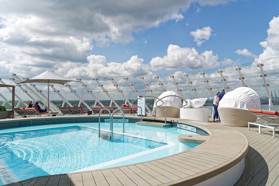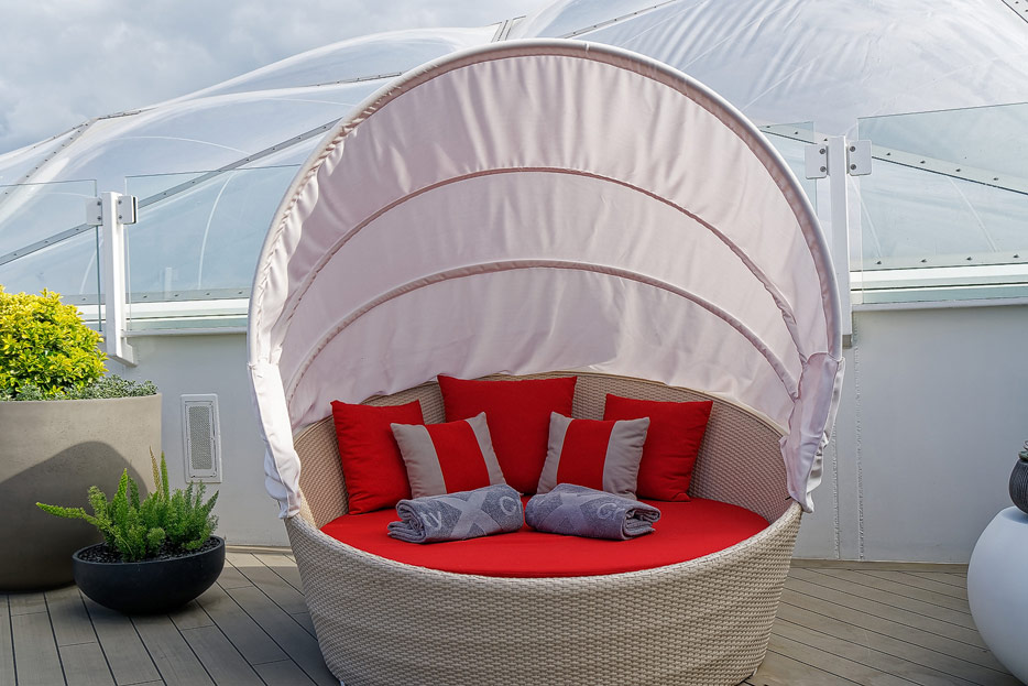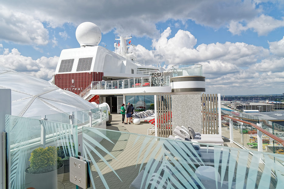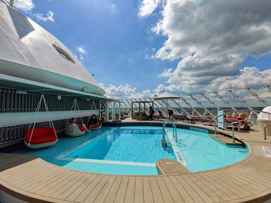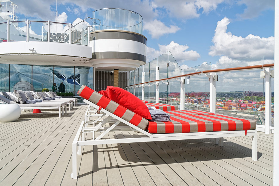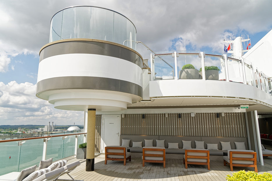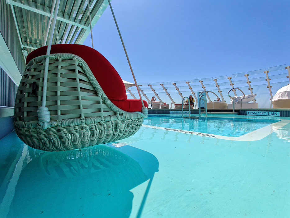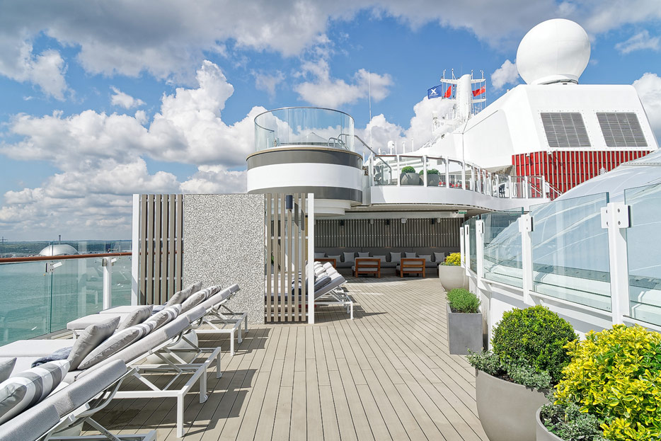 Bilder aus dem Suiten-Bereich "The Retreat" der Celebrity Beyond: Suite Lounge, Suite Sundeck; siehe auch "Restaurants" für der Suiten-Restaurant Luminae