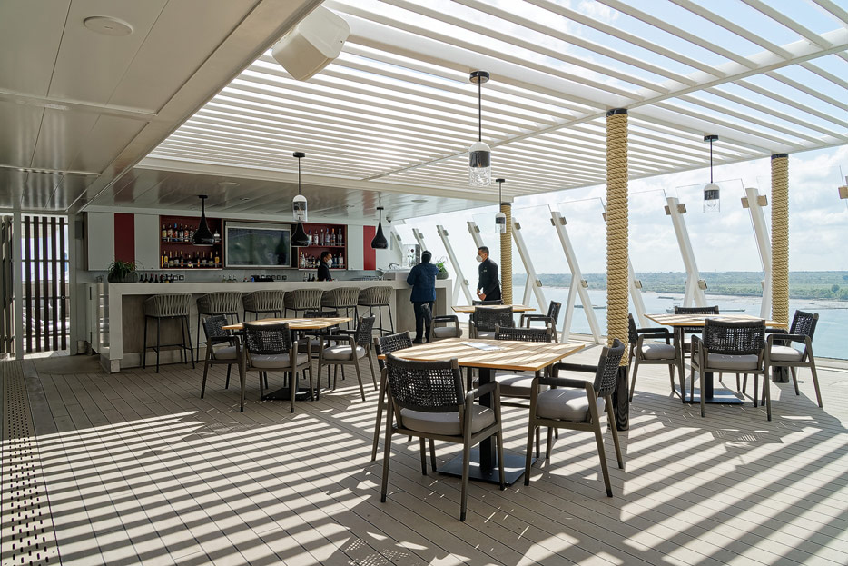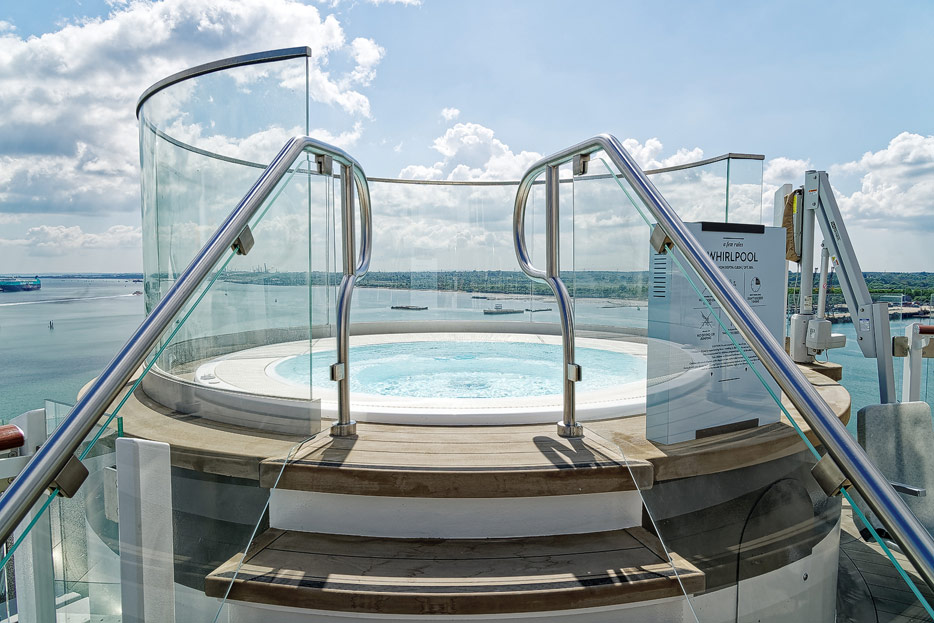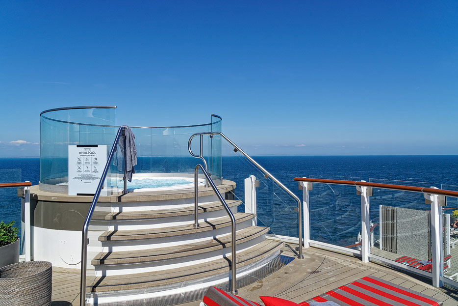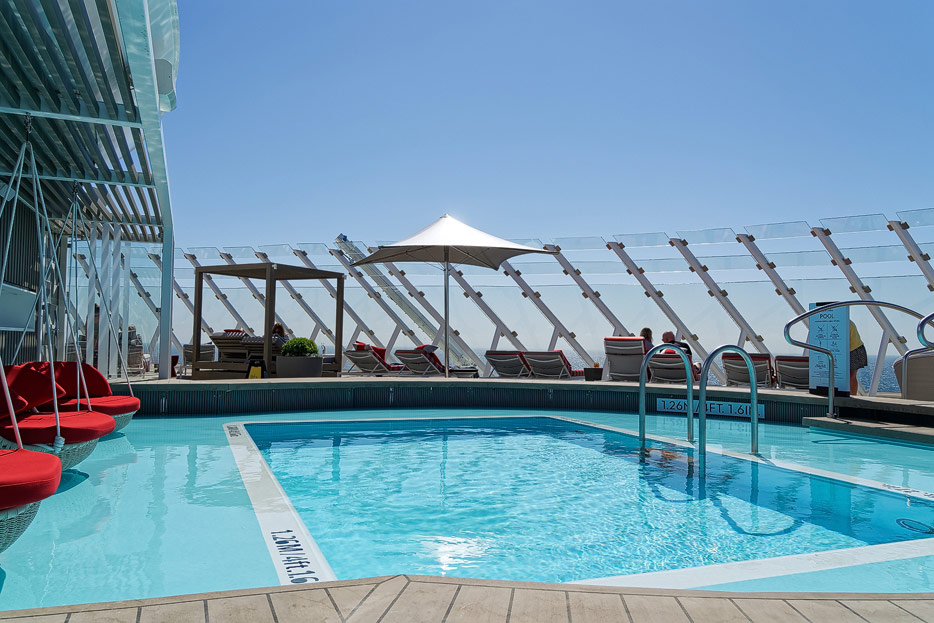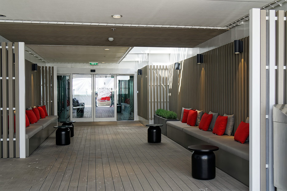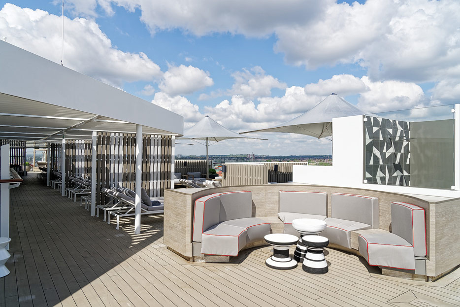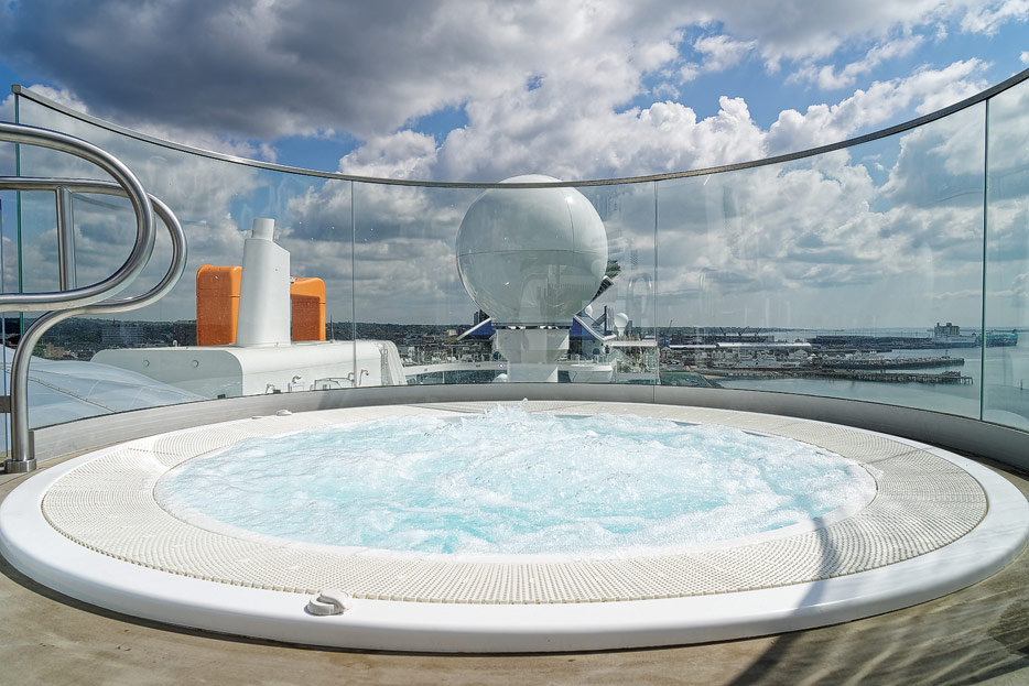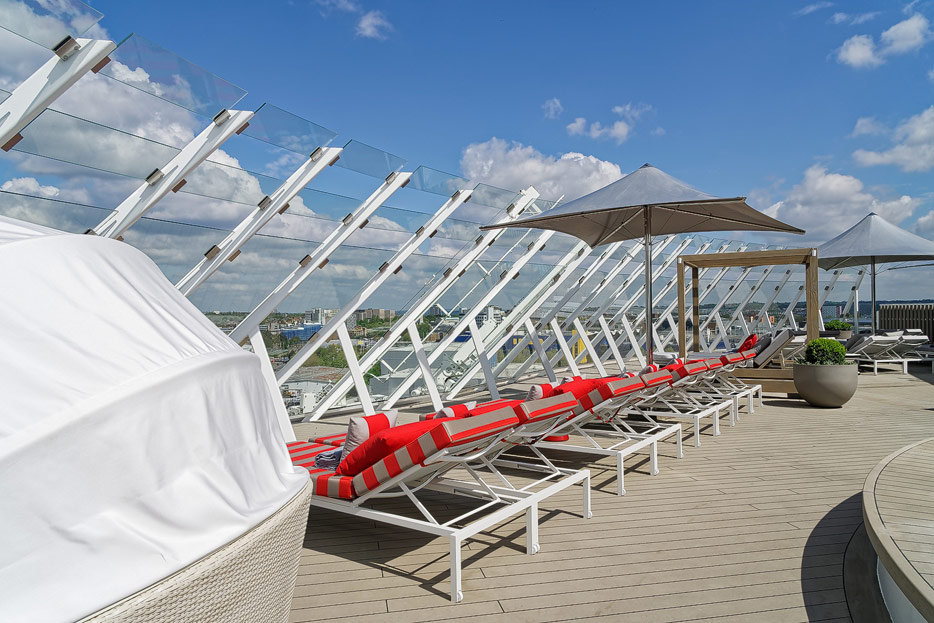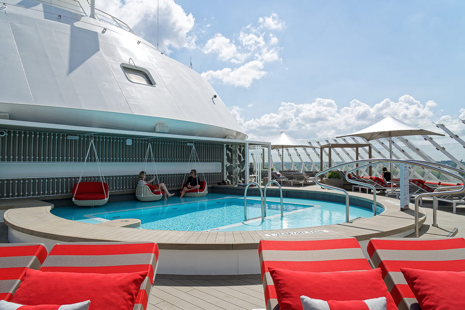 Bilder aus dem Suiten-Bereich "The Retreat" der Celebrity Beyond: Suite Lounge, Suite Sundeck; siehe auch "Restaurants" für der Suiten-Restaurant Luminae