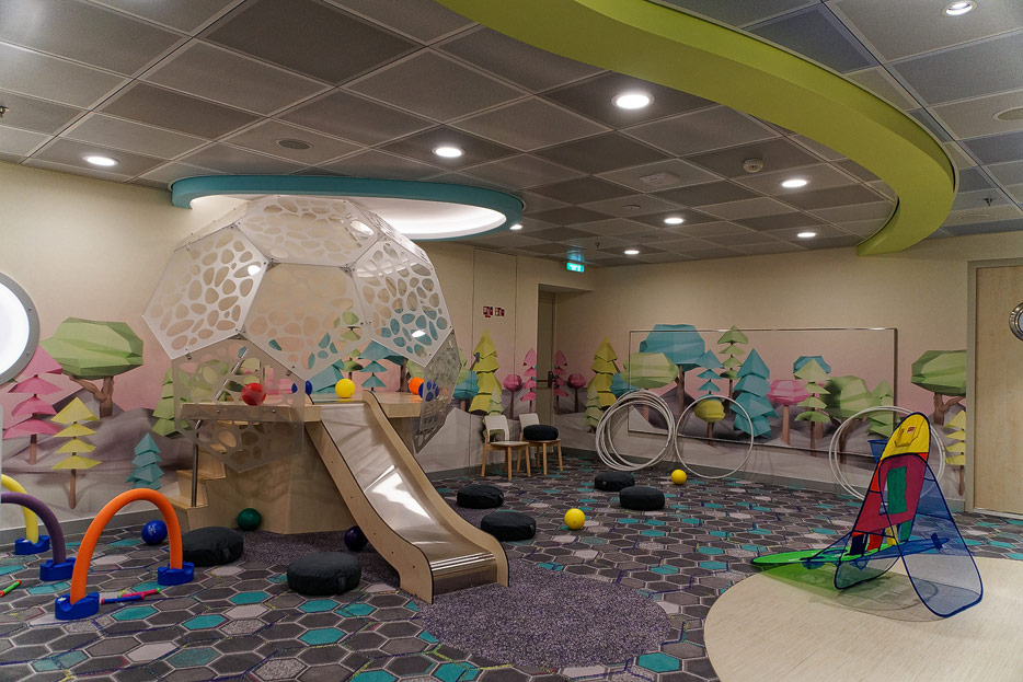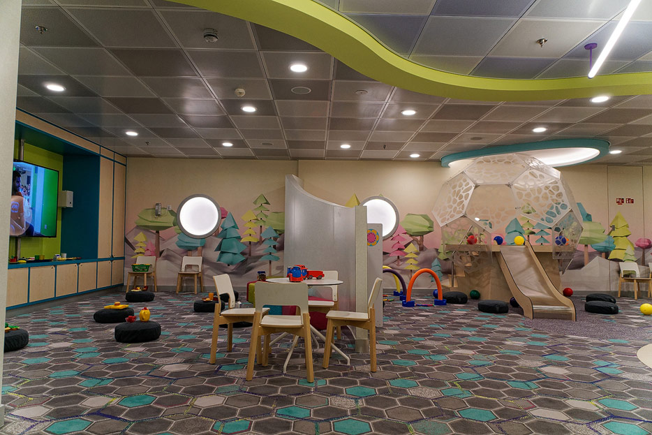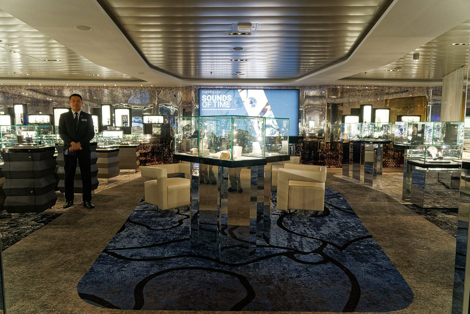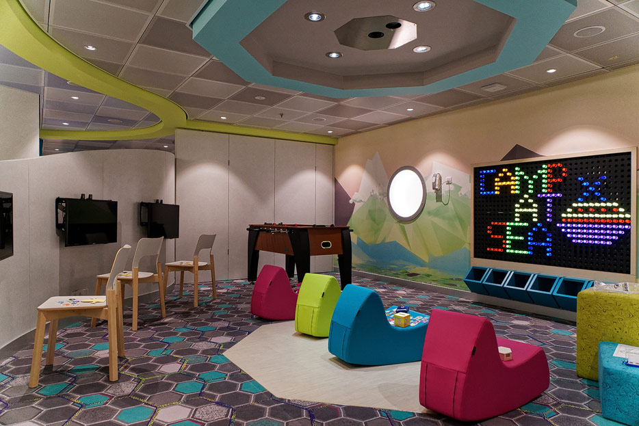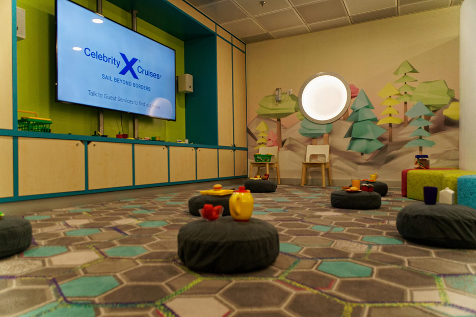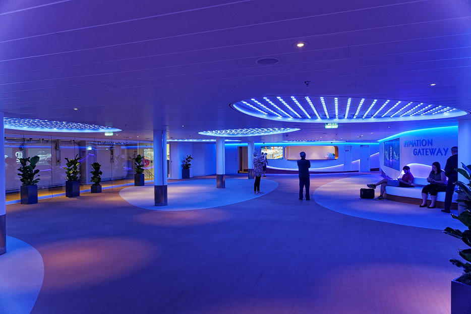 Bilder sonstiger Bereiche der Celebrity Edge: Kinderbereich, Rezeption, Casino, Shops etc.
