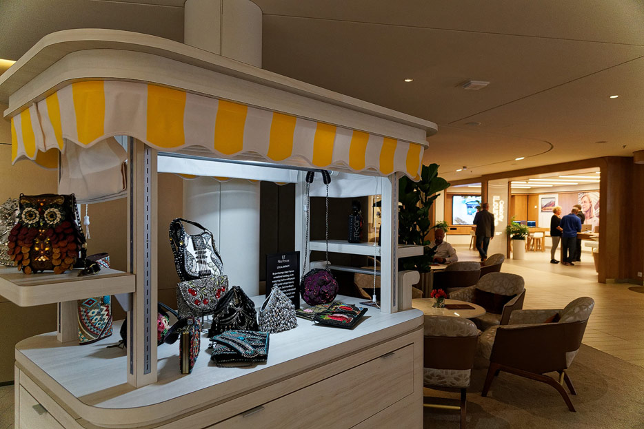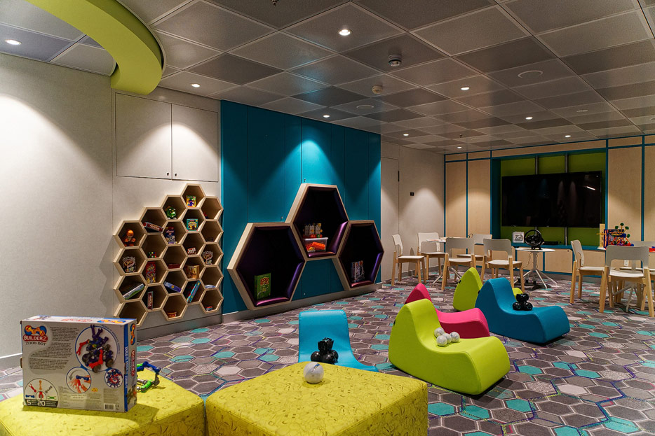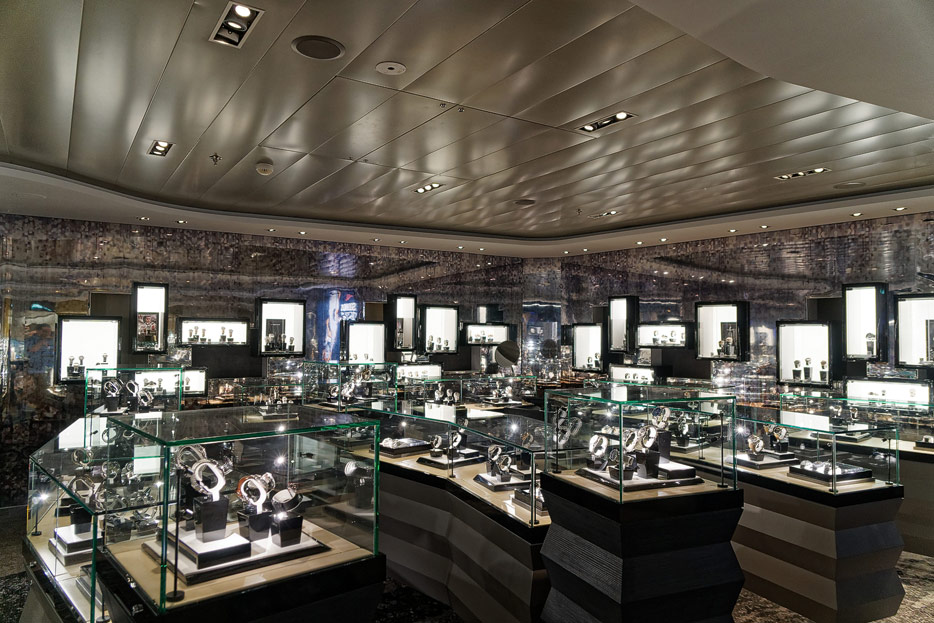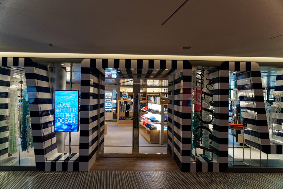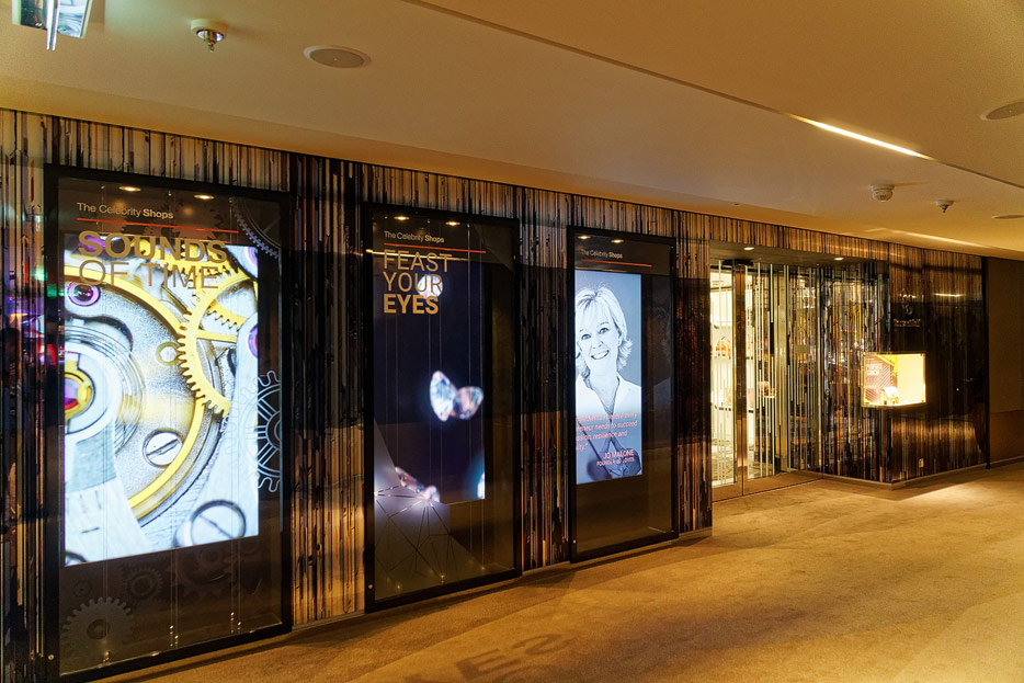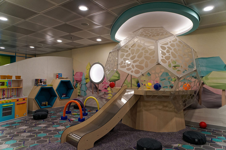 Bilder sonstiger Bereiche der Celebrity Edge: Kinderbereich, Rezeption, Casino, Shops etc.
