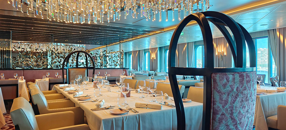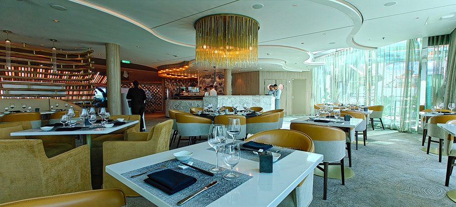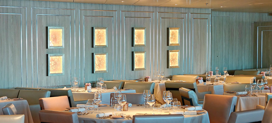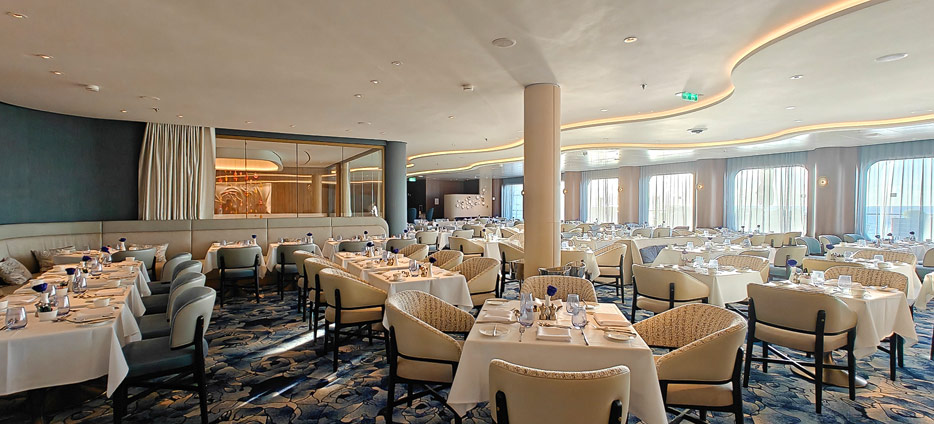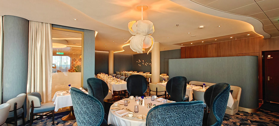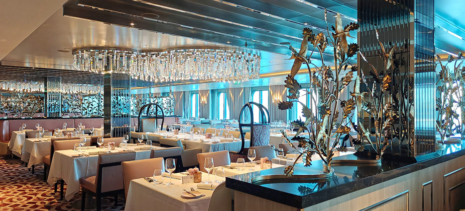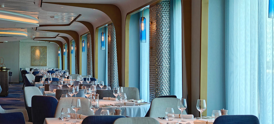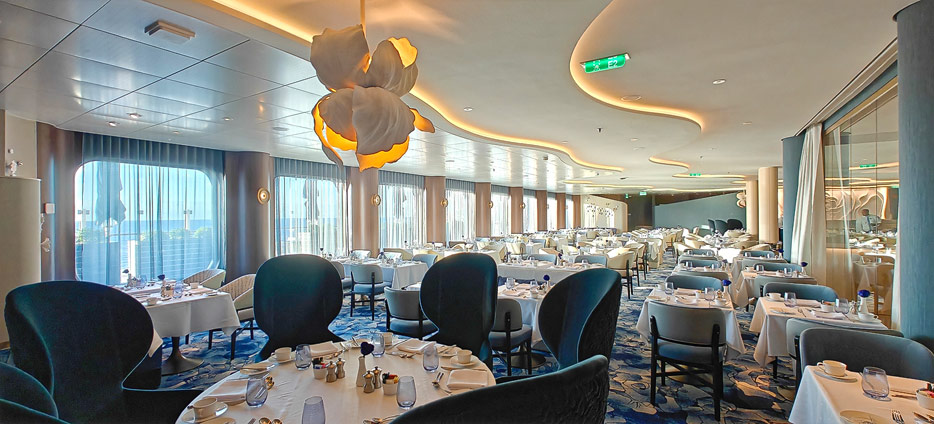 Bilder der Restaurants auf der Celebrity Xcel - für das Mosaic-Restaurant in The Bazaar, siehe "Bars, Lounges", für das Retreat-Restaurant für Suiten-Passagiere, siehe "The Retreat"