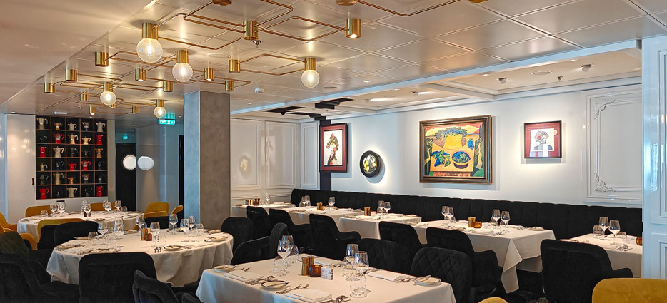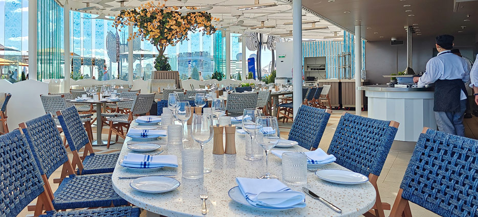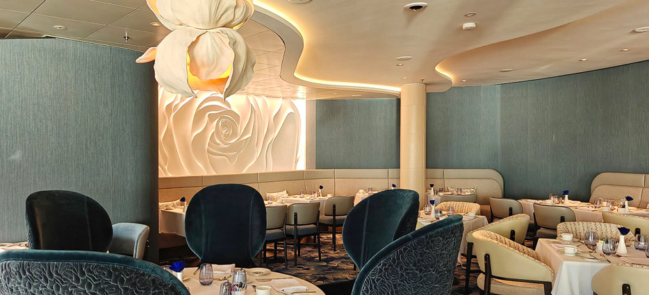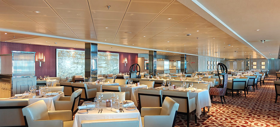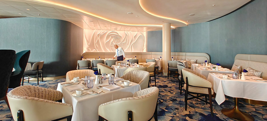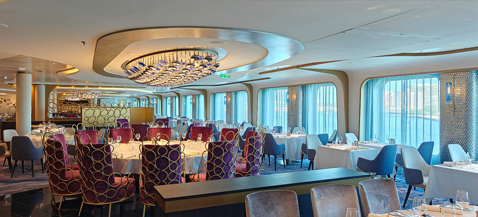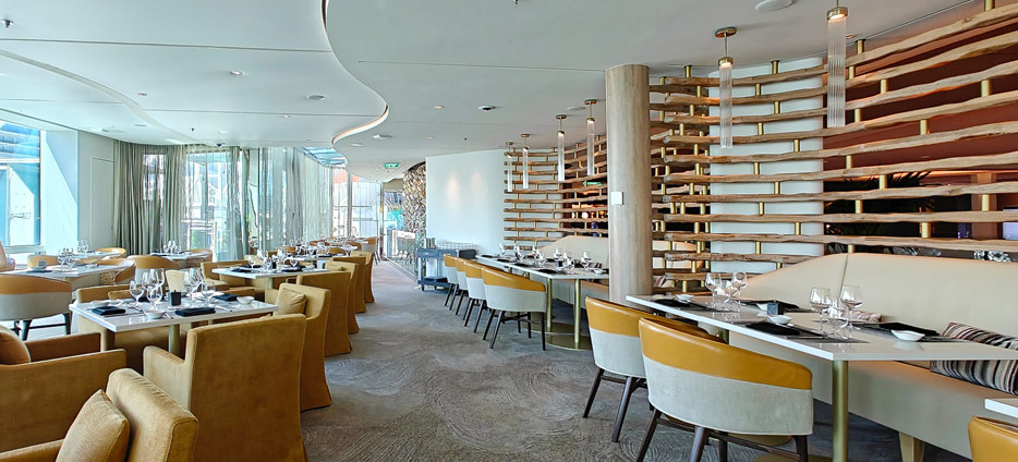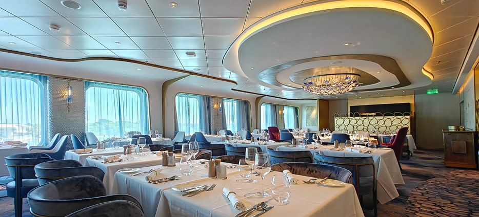 Bilder der Restaurants auf der Celebrity Xcel - für das Mosaic-Restaurant in The Bazaar, siehe "Bars, Lounges", für das Retreat-Restaurant für Suiten-Passagiere, siehe "The Retreat"