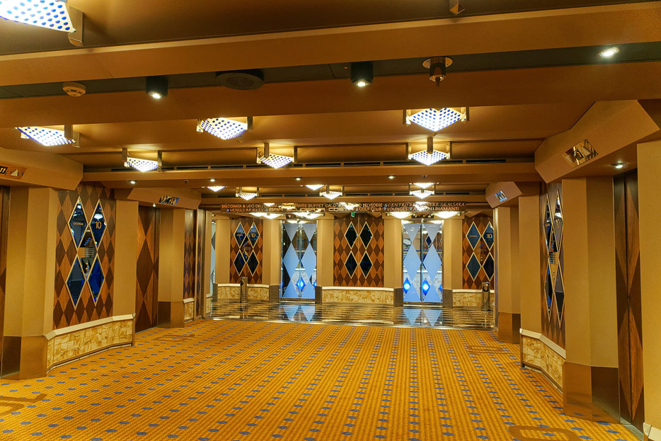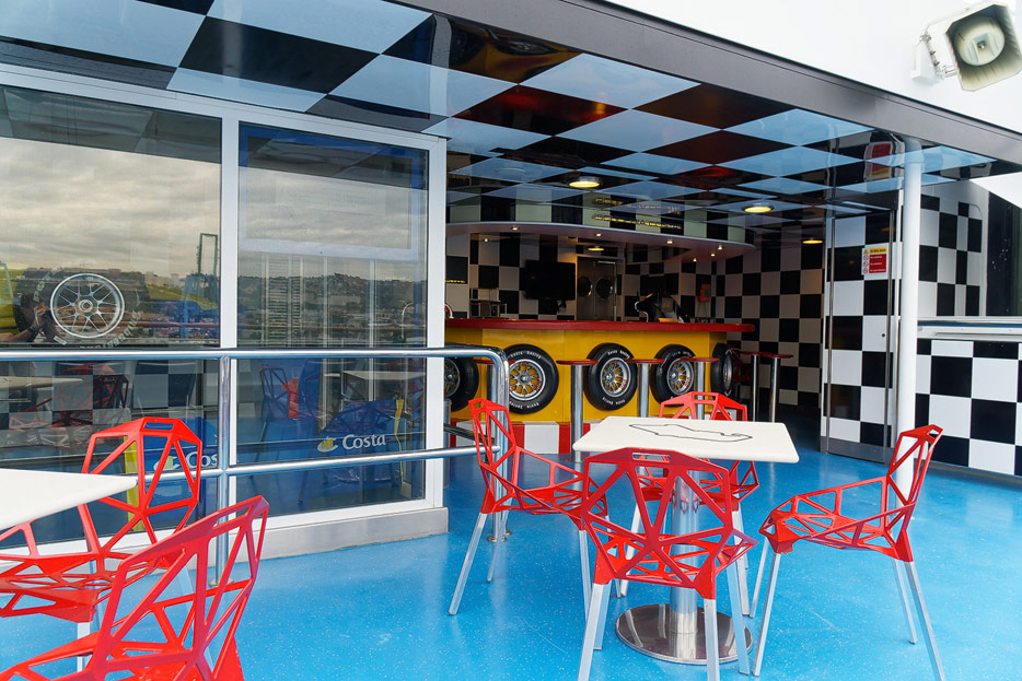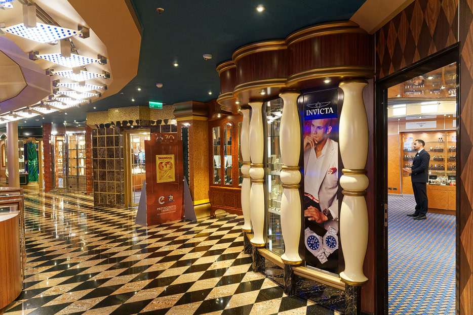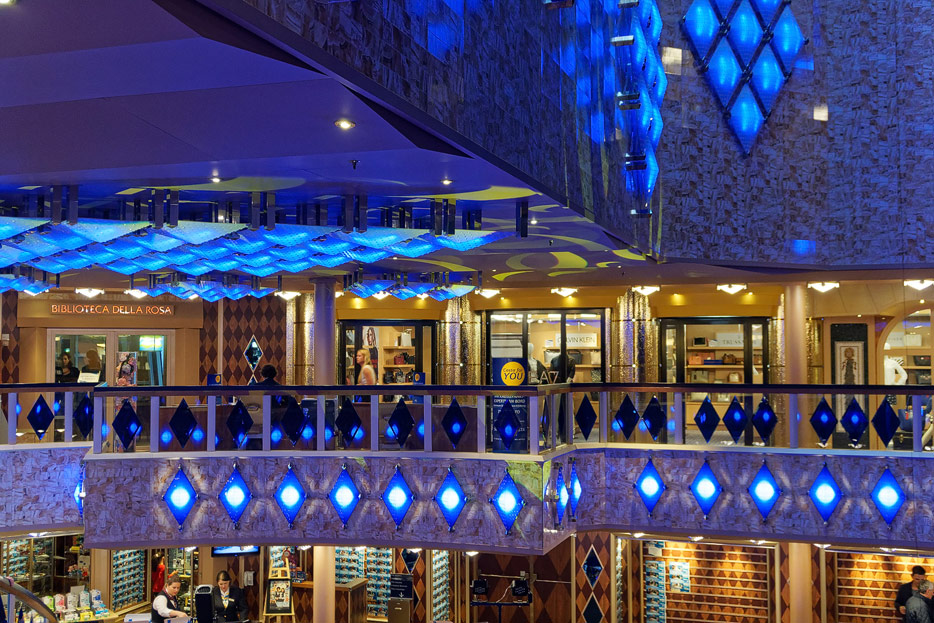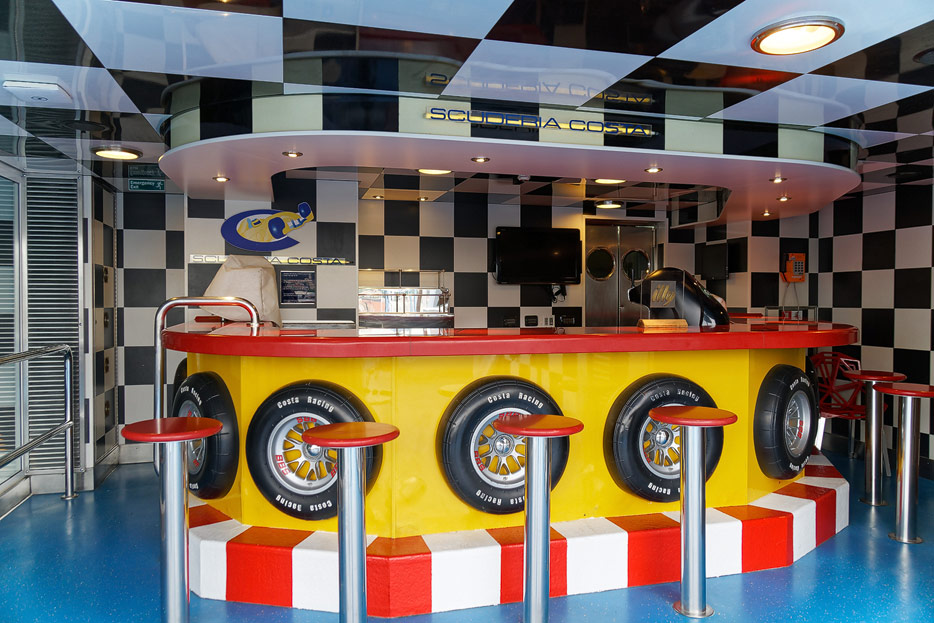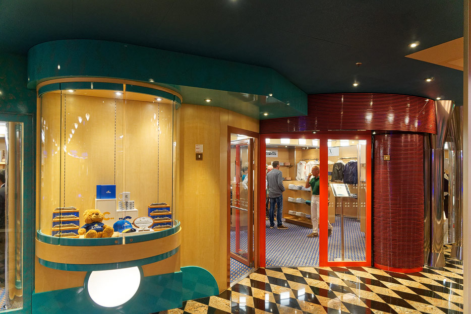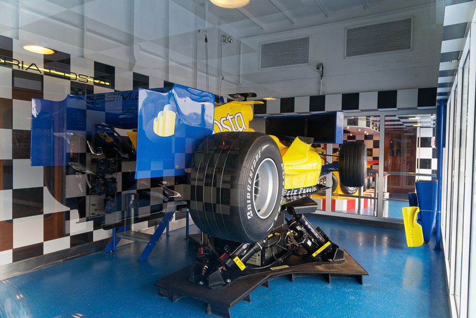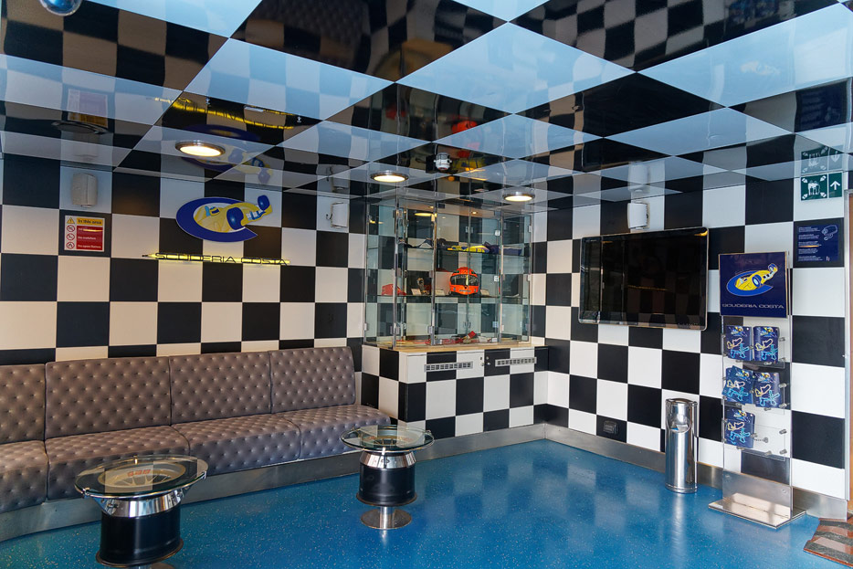 Sonstige Bereiche der Costa Favolosa: Bibliothek, Kapelle, Casino, Video-Arcade, Shops, Formel-1-Simulator