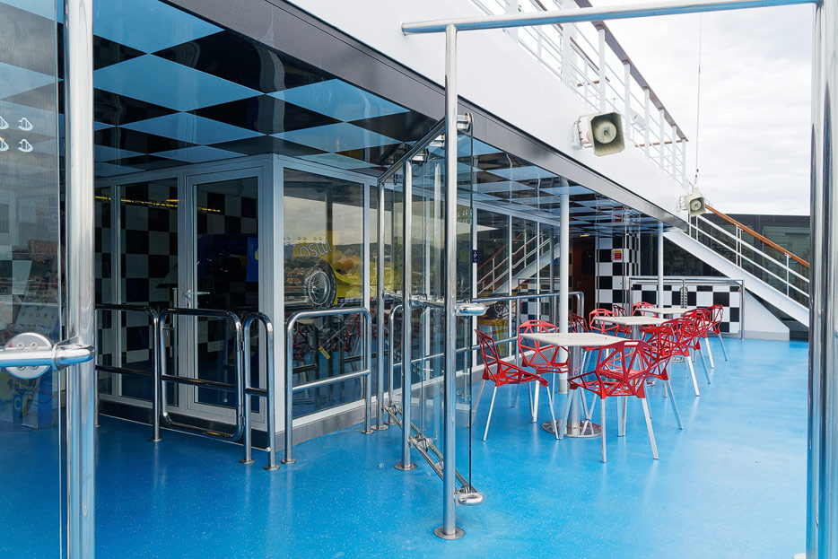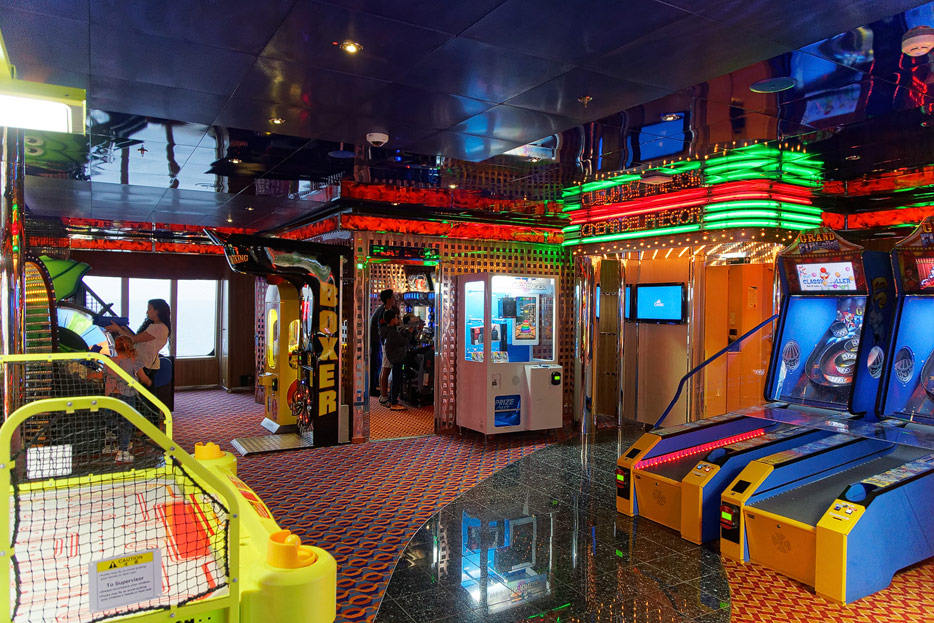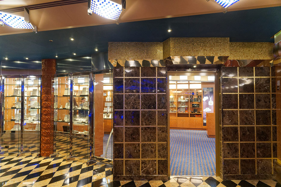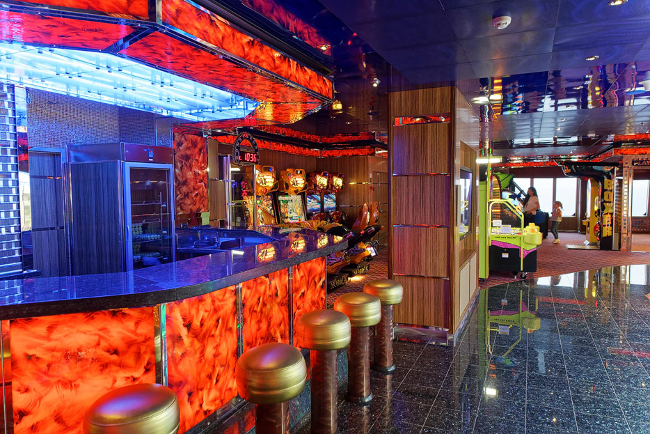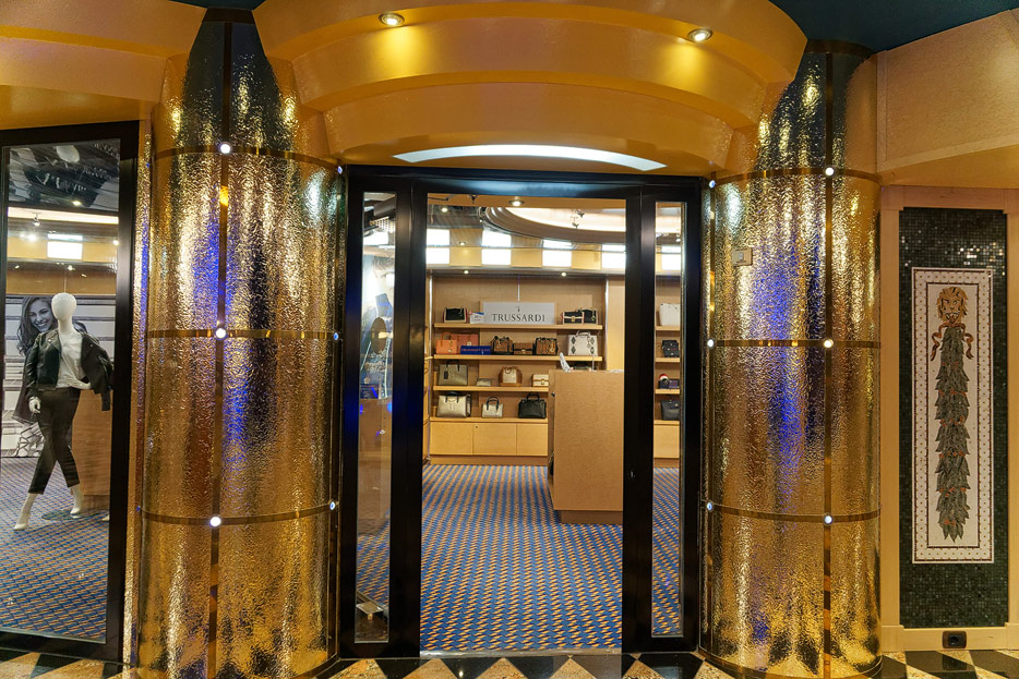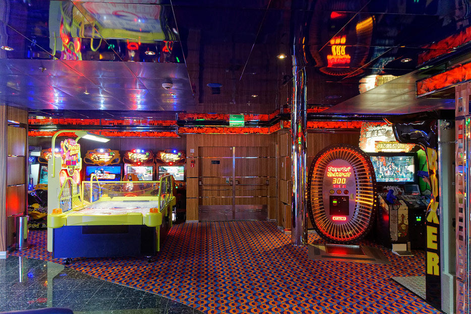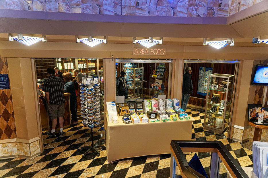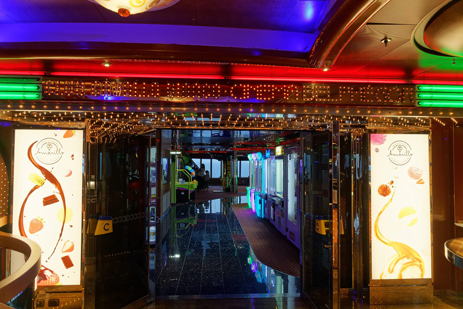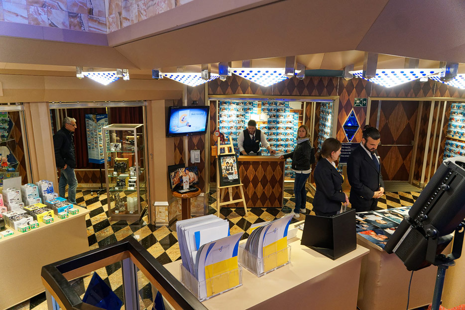 Sonstige Bereiche der Costa Favolosa: Bibliothek, Kapelle, Casino, Video-Arcade, Shops, Formel-1-Simulator