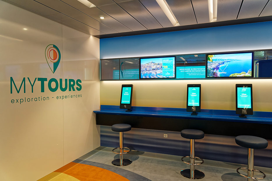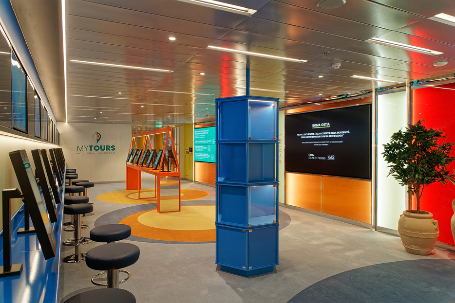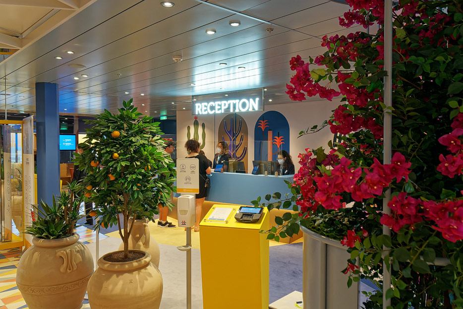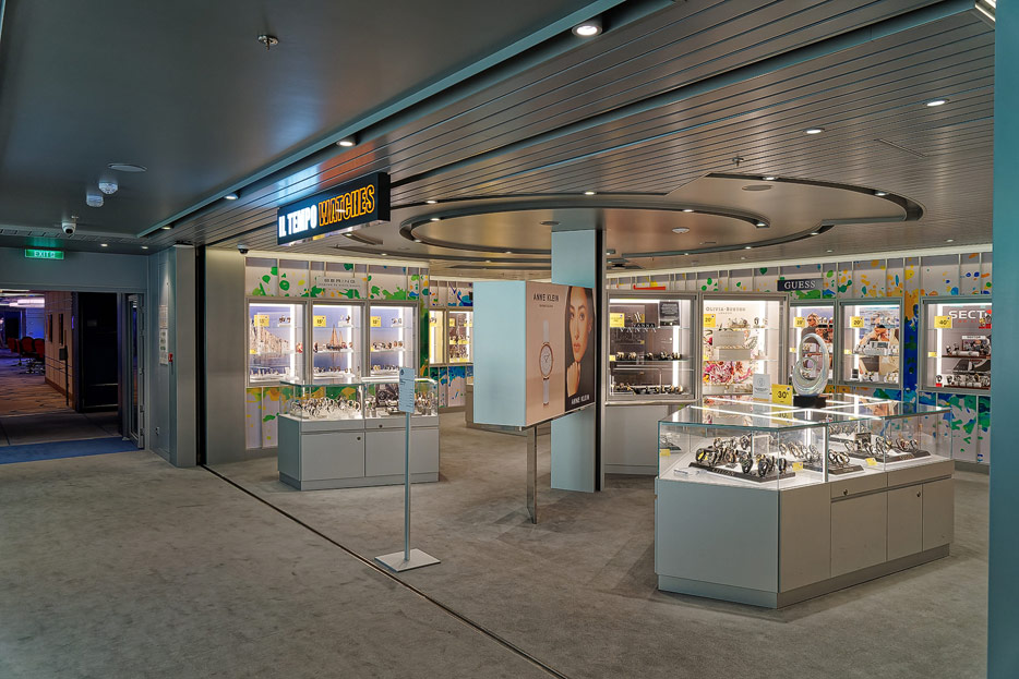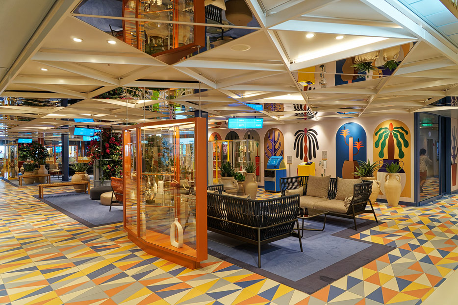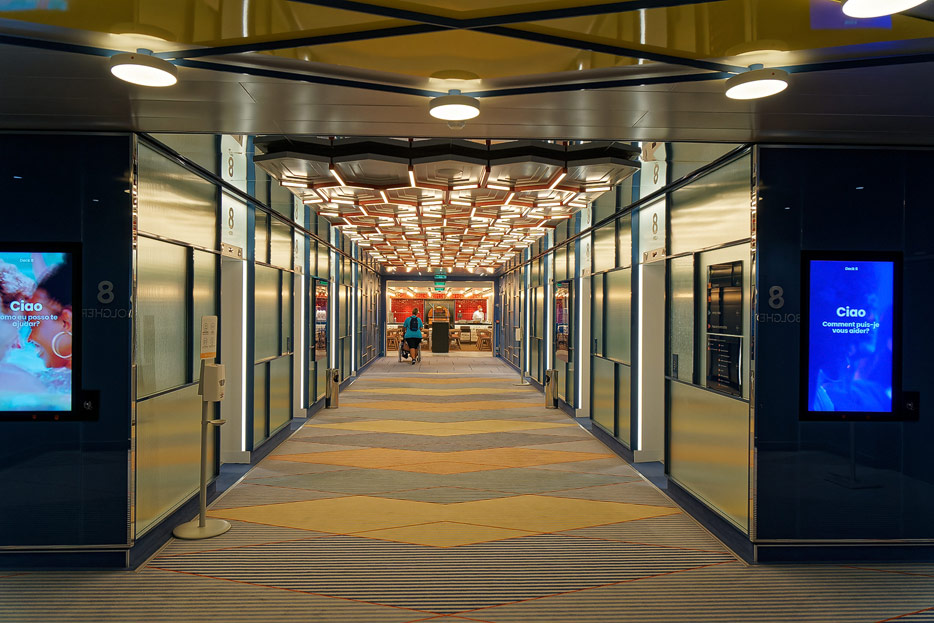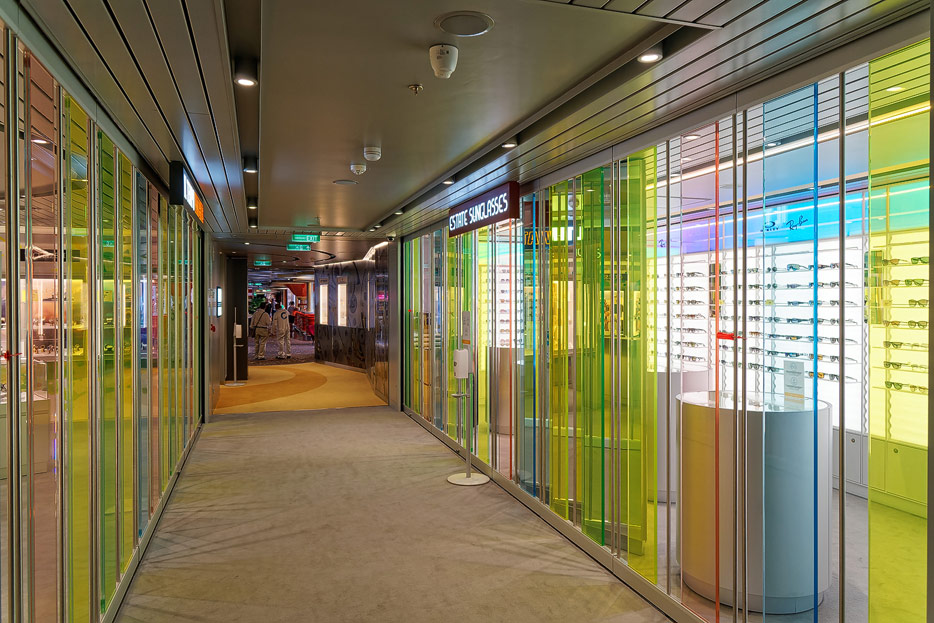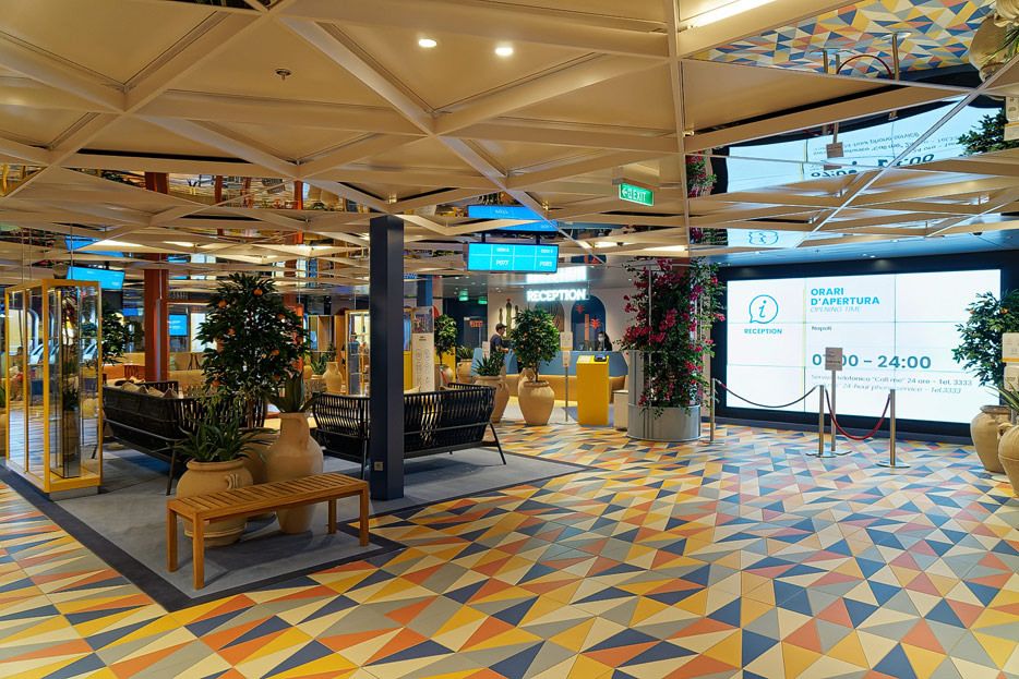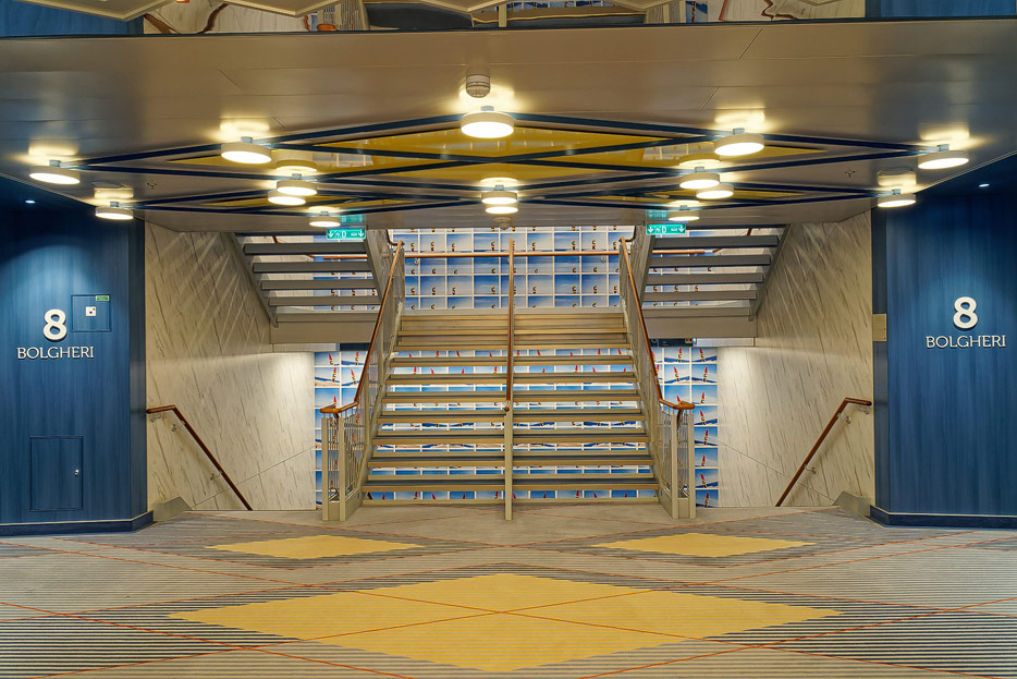Bilder weiterer Bereiche der Costa Toscana: Shops, Casino, Rezeption, Treppenhaus, Aufzüge