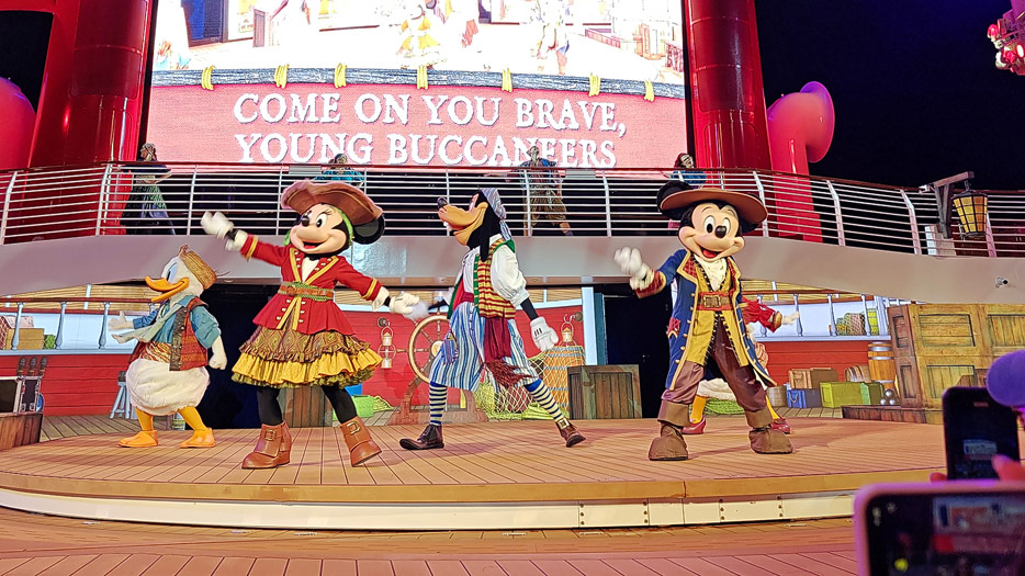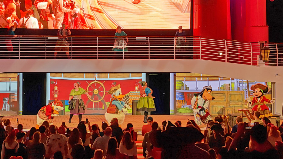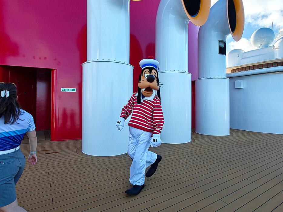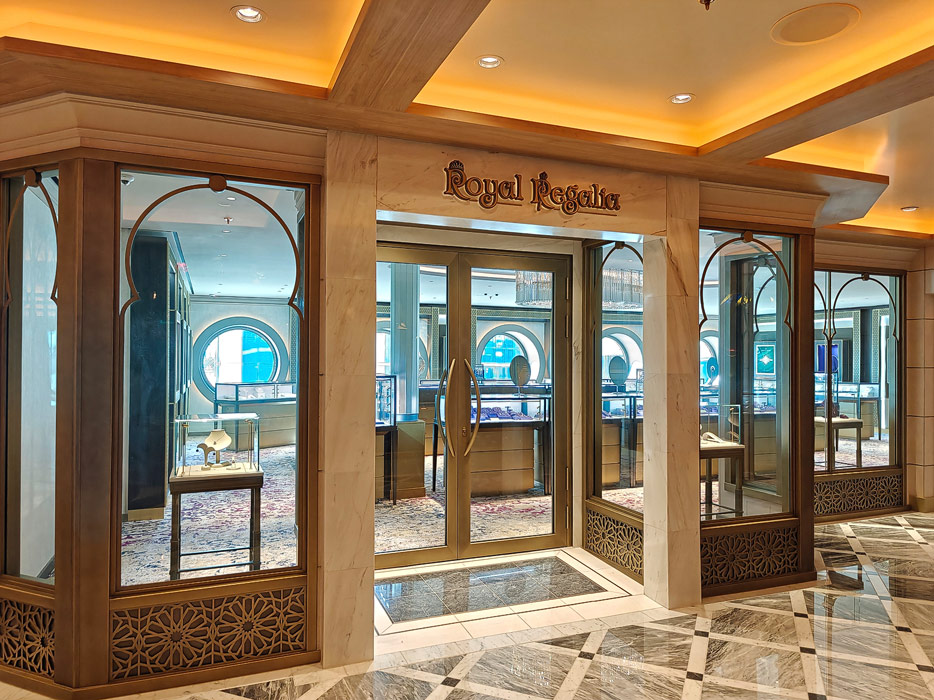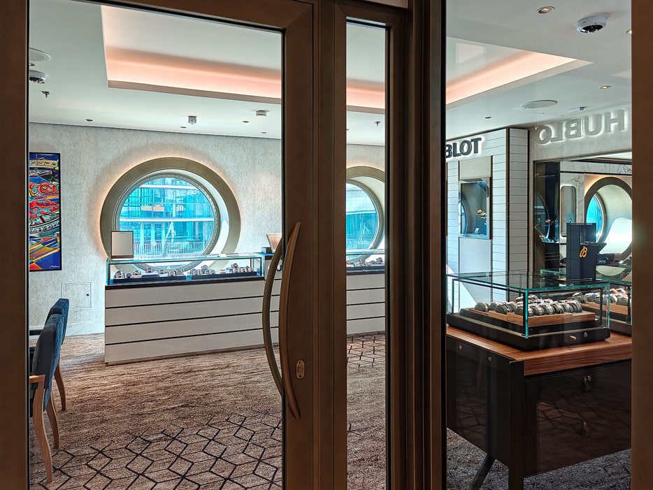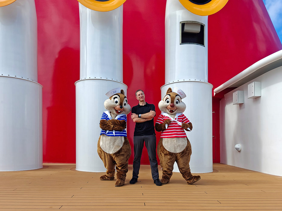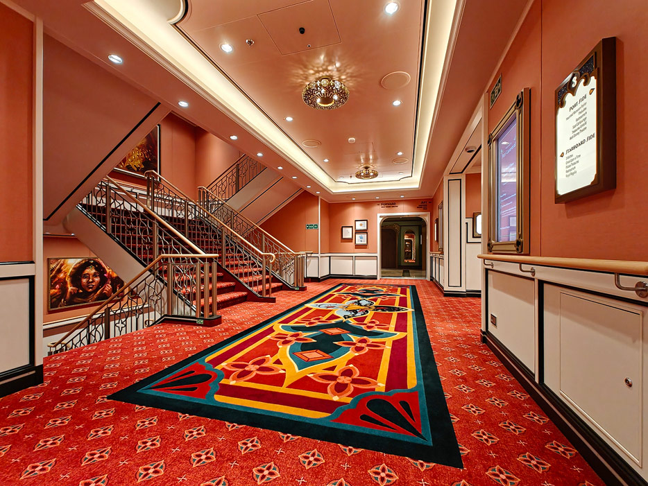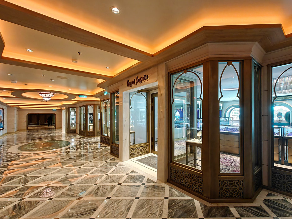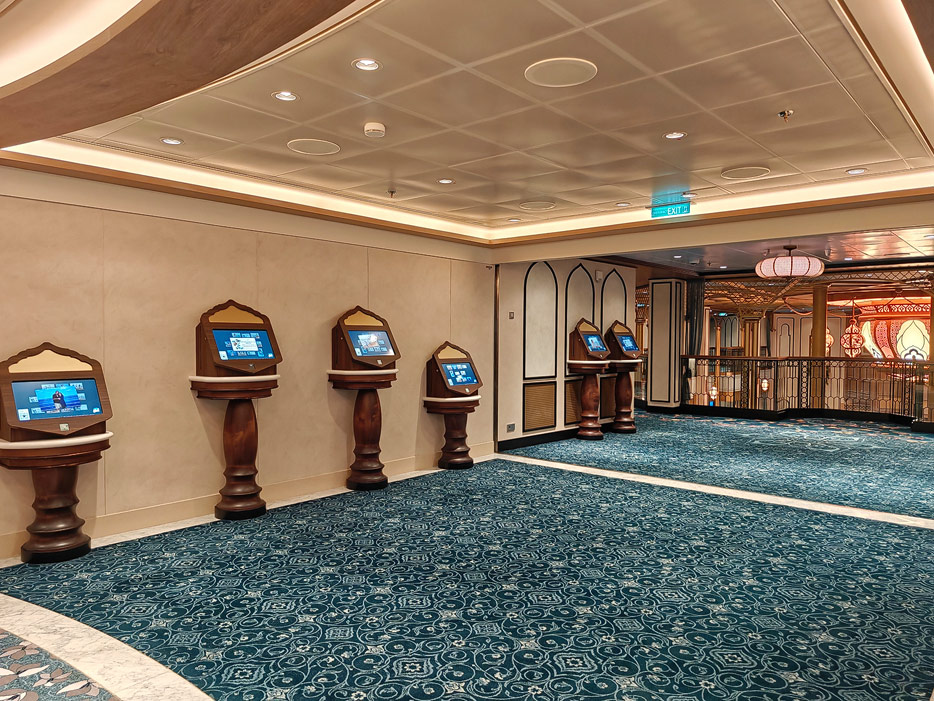 Bilder weiterer Bereiche der Disney Treasure: Treppenhaus, Aufzüge, Orientierung, Kunstwerke, Shops, Guest Services, Disney-Charaktere