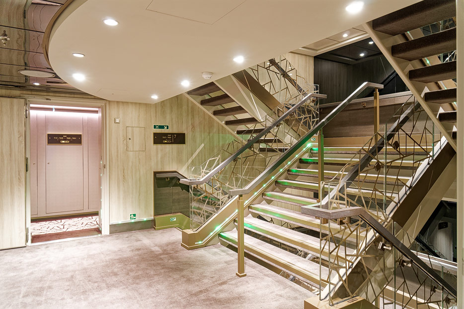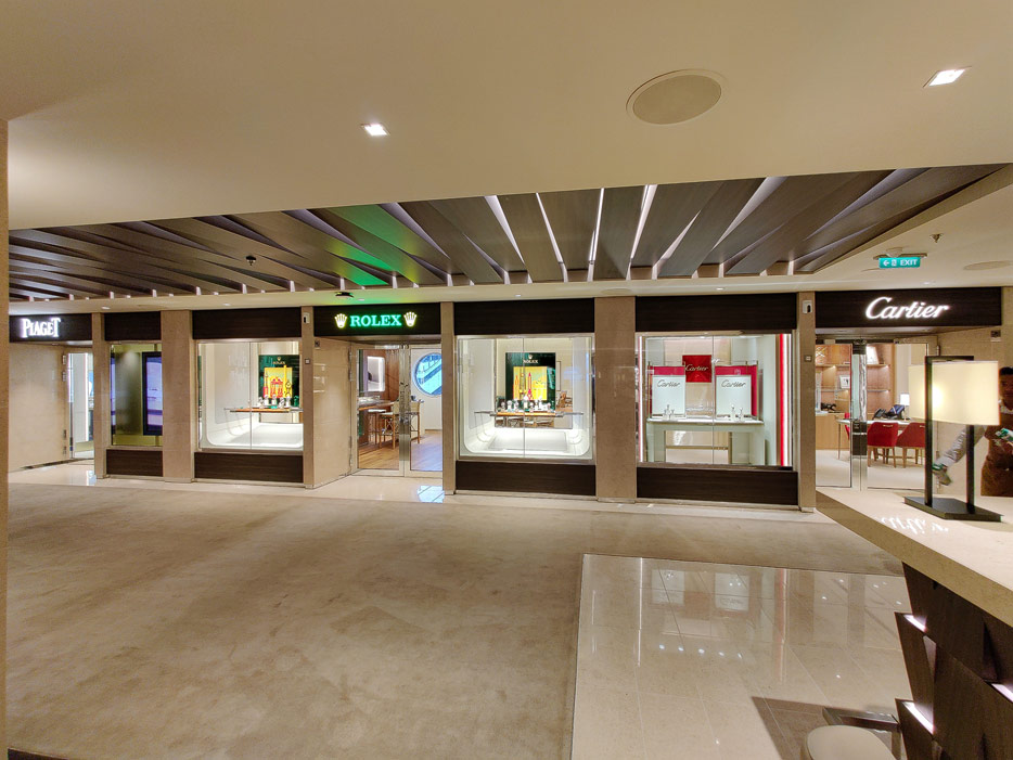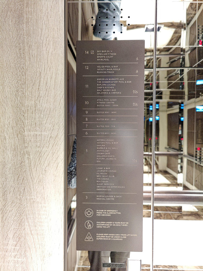 Bilder sonstiger Bereiche auf der Explora I: Casino, Galleria D'Arte, Laundrette, Nautilus Kids Club, Rezeption, Shore Excursions, Shops, Treppen, Aufzüge, Orientierung