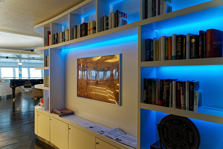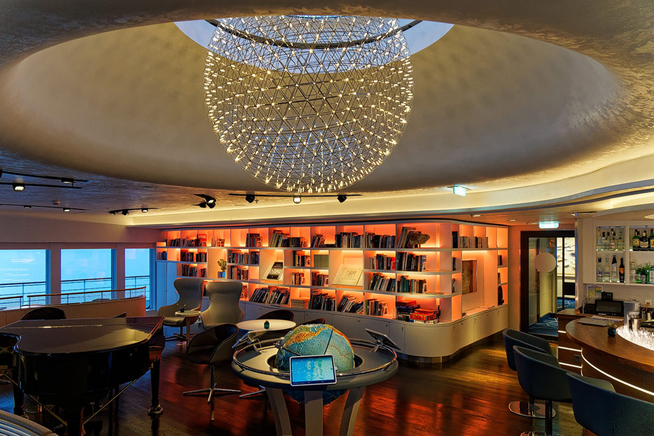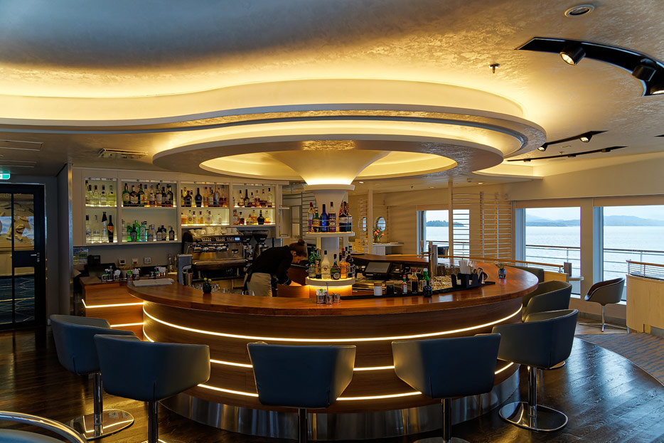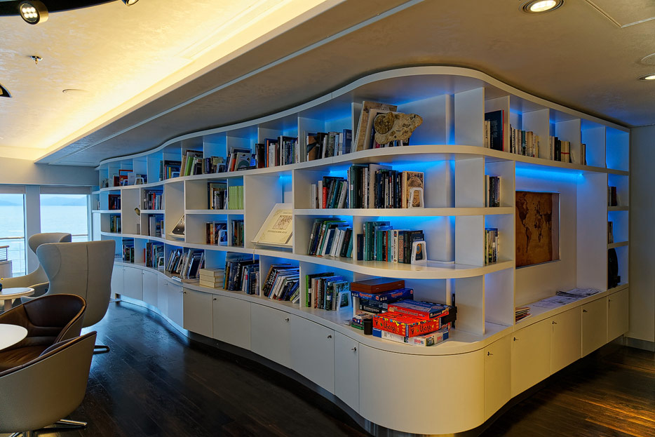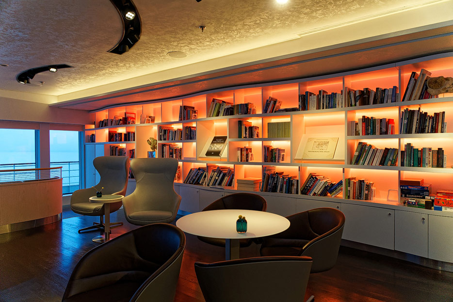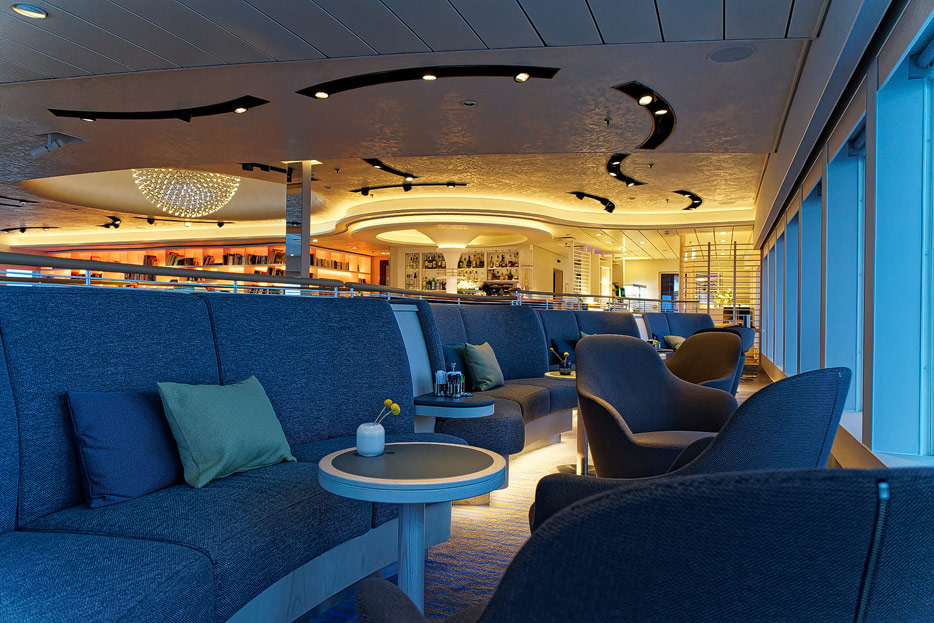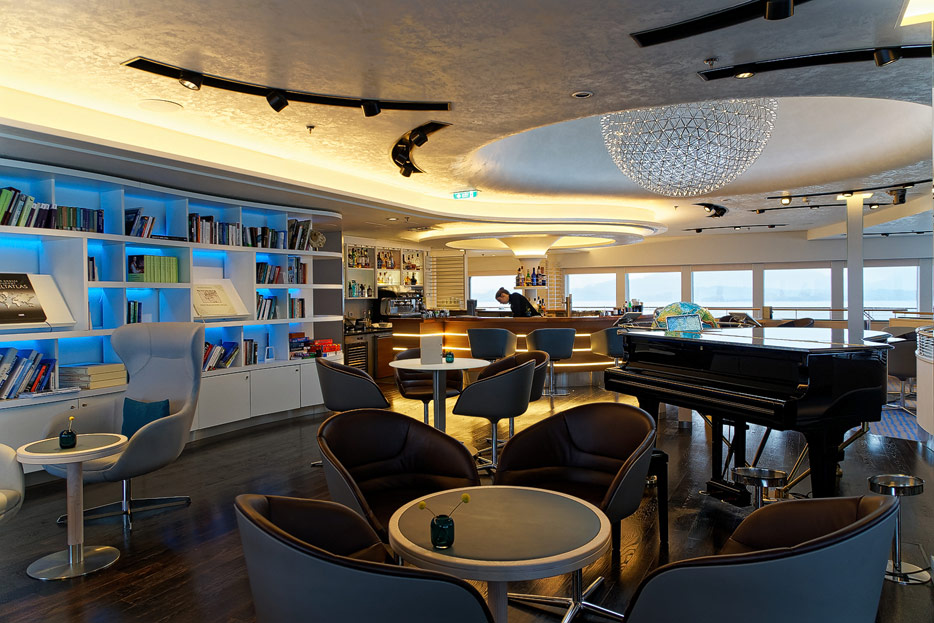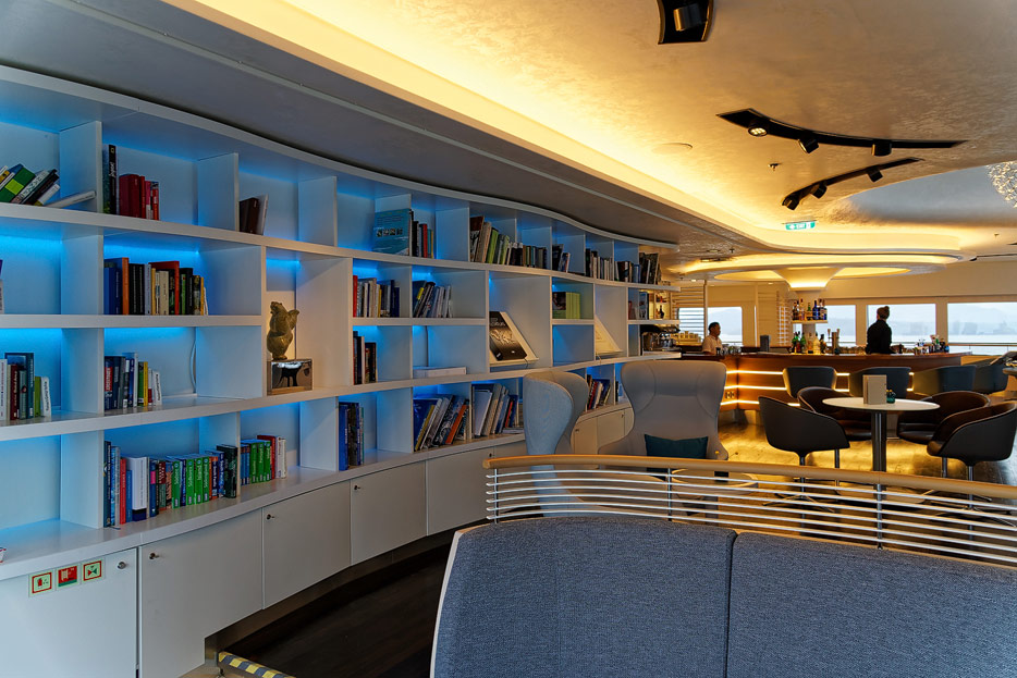 Bilder der Observation Lounge der Hanseatic Nature mit Bar und Bibliothek