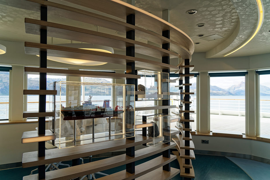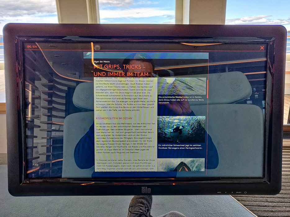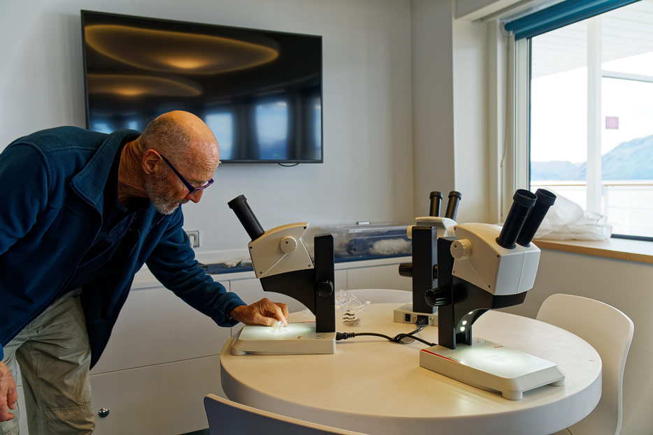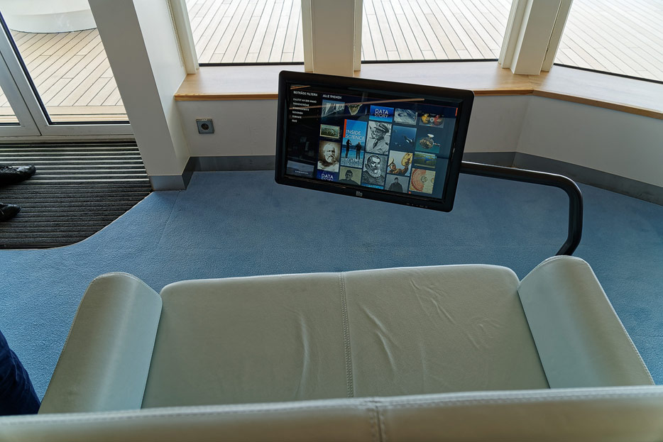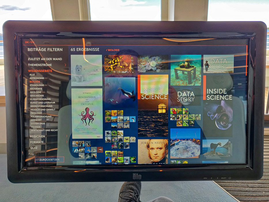 Bilder der Ocean Academy der Hanseatic Nature: interaktiver Fortbildungsraum, Mikroskope, kleines Museum