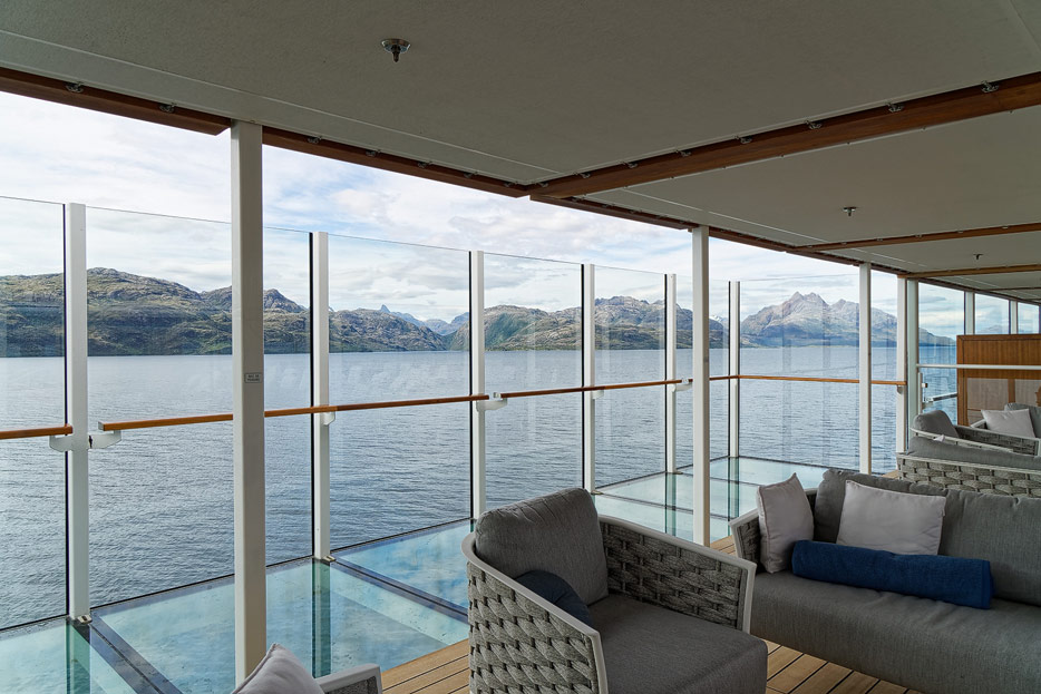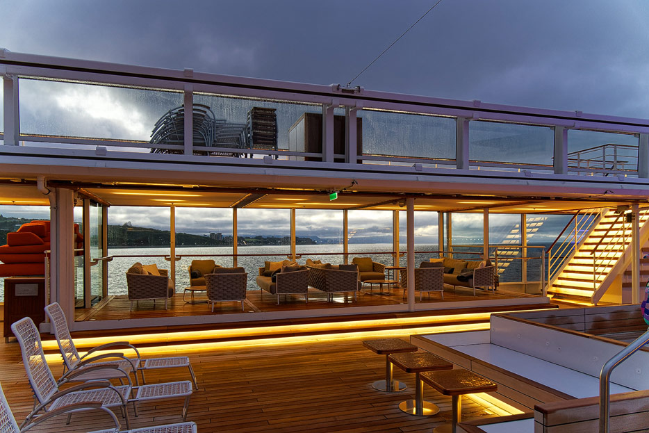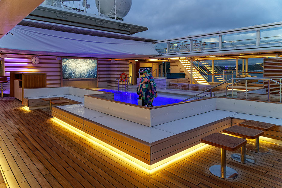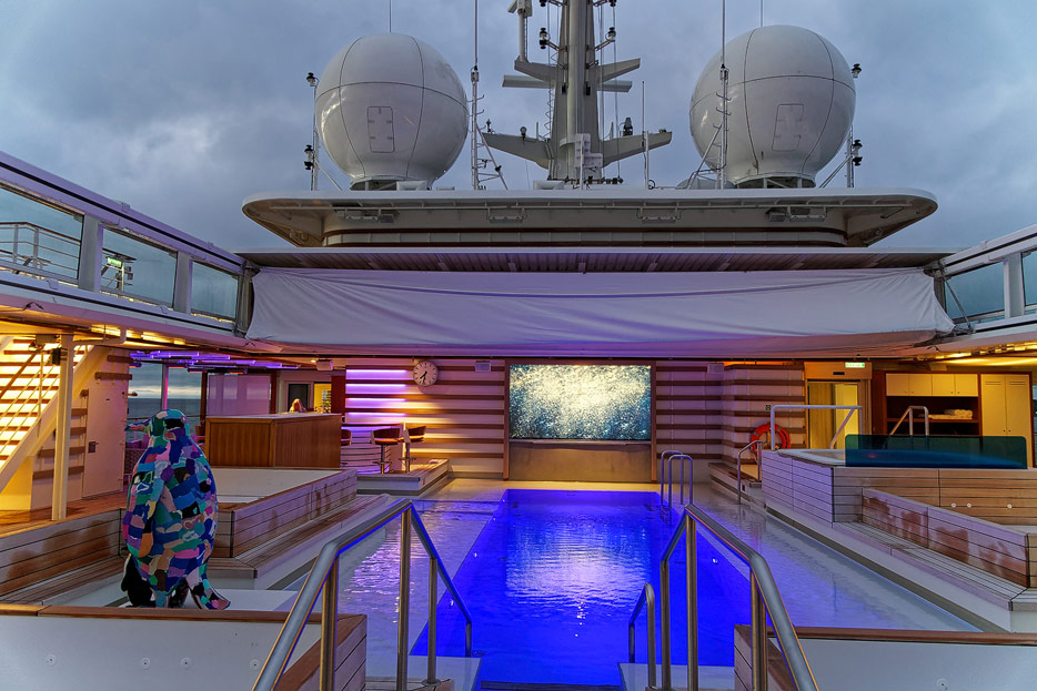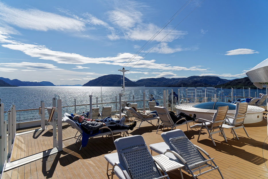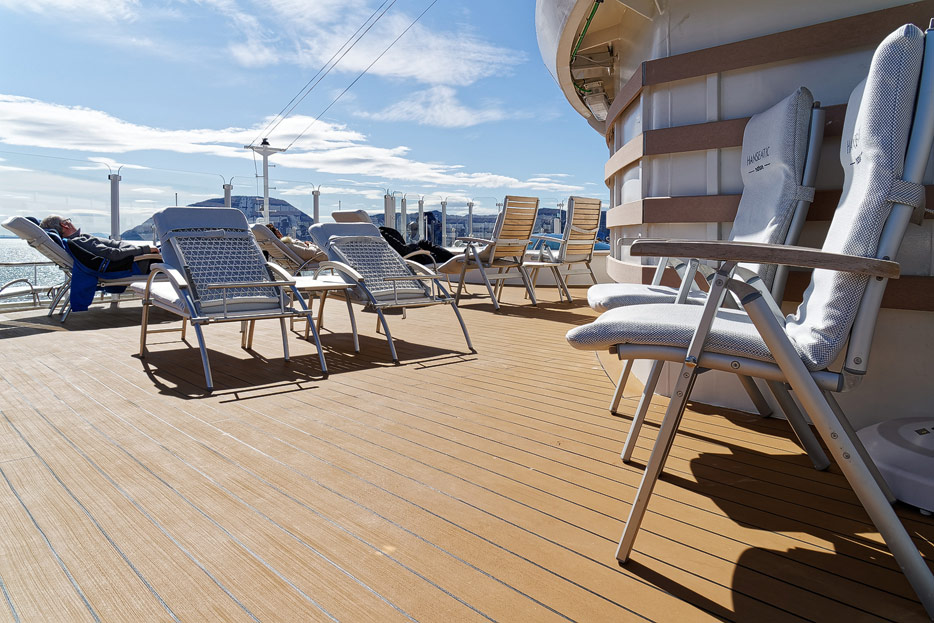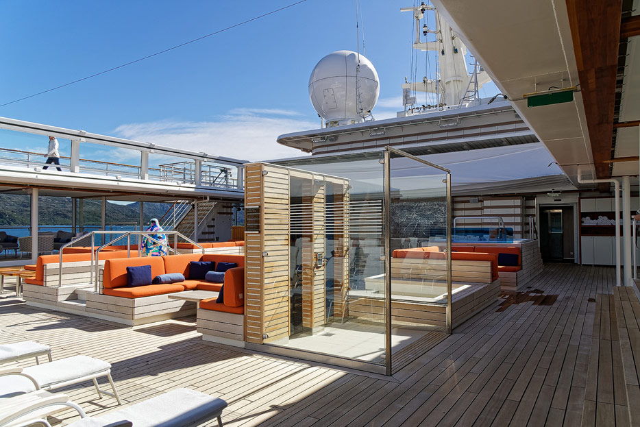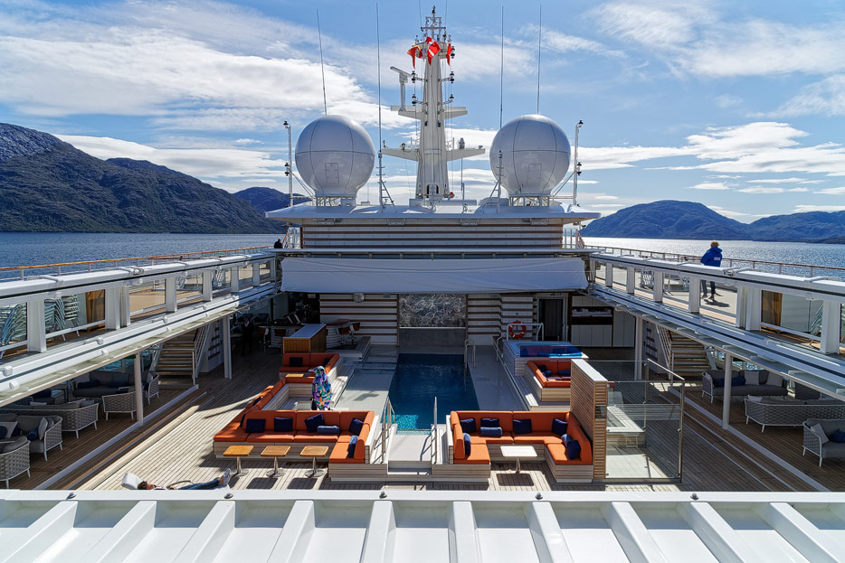 Bilder des Pooldecks, der Sonnendecks und der ausfahrbaren Glasbalkone der Hanseatic Nature