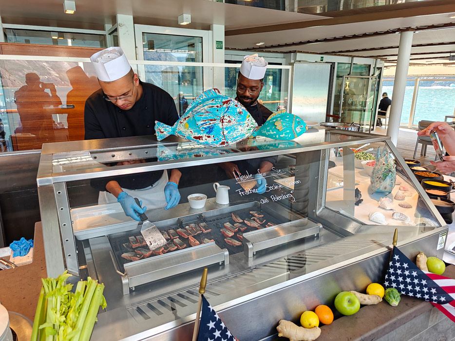 Bilder der Restaurants und des Essens auf der Hanseatic Spirit