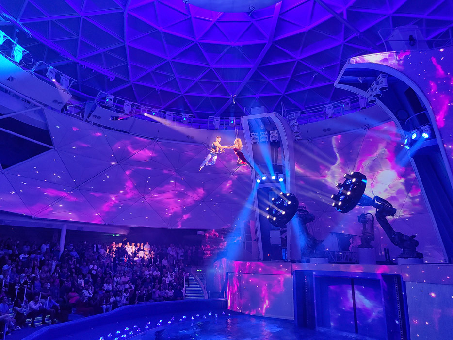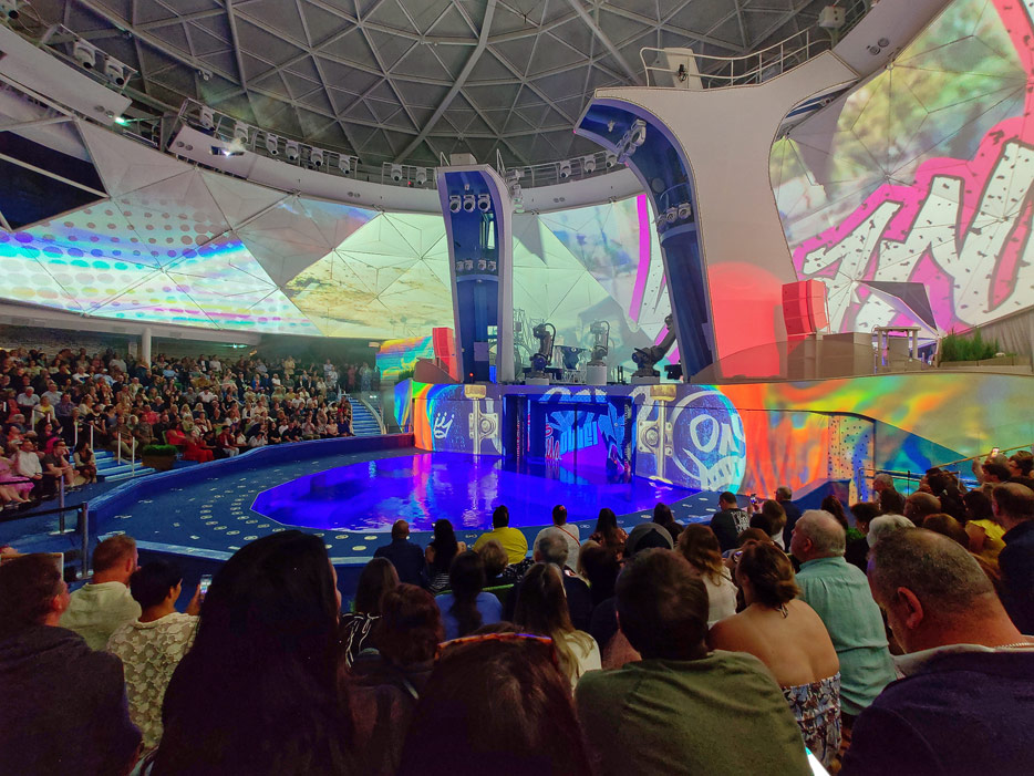 Bildes des Aquadome und des Aquatheaters der Icon of the Seas