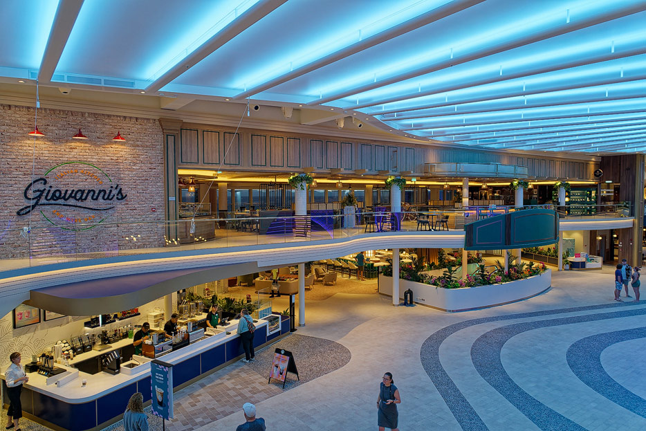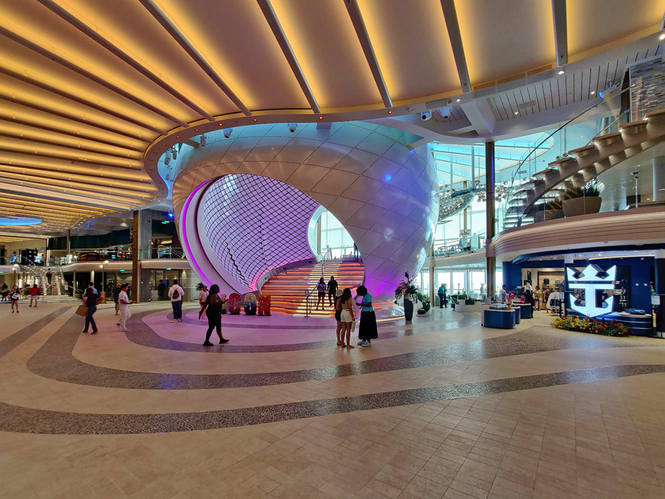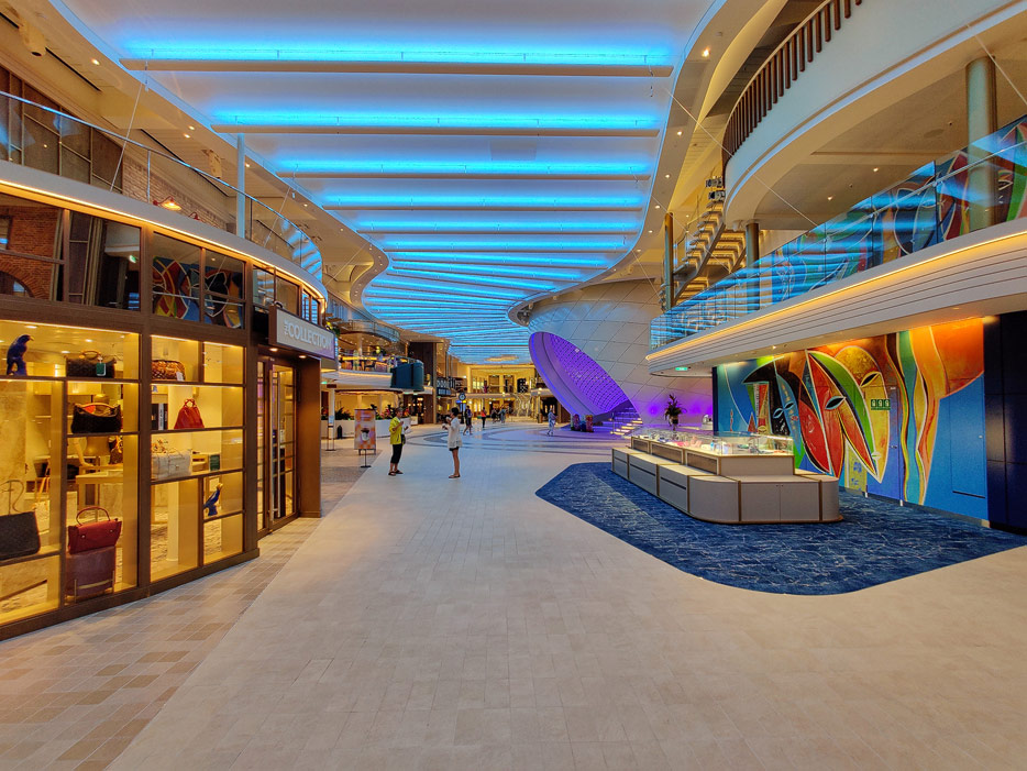 Bilder der Royal Promenade der Icon of the Seas inklusive "The Pearl"