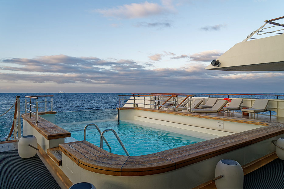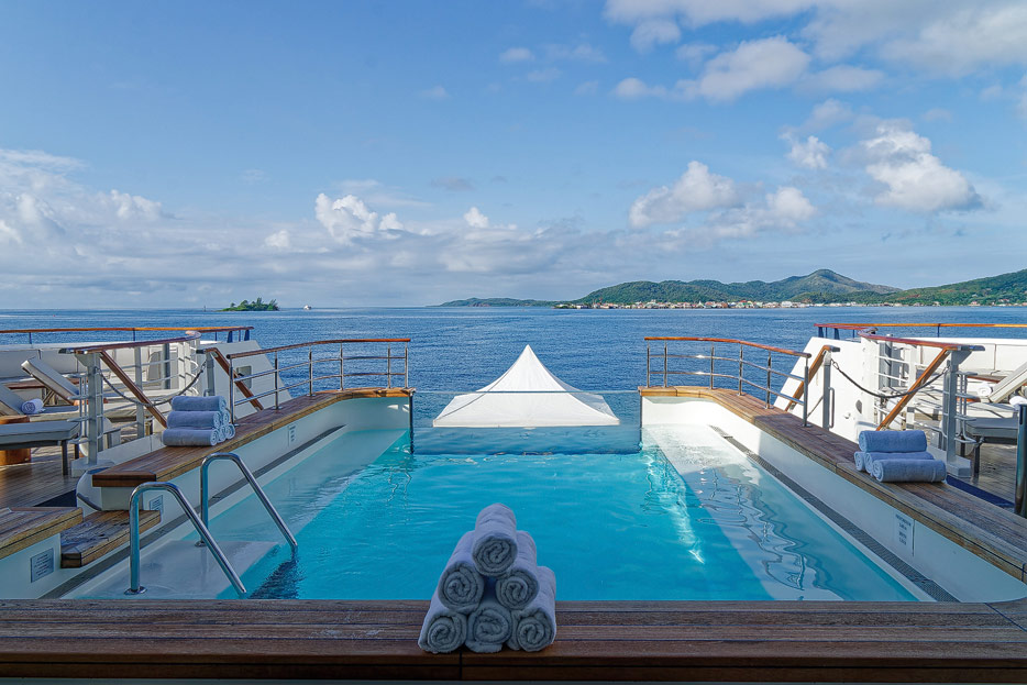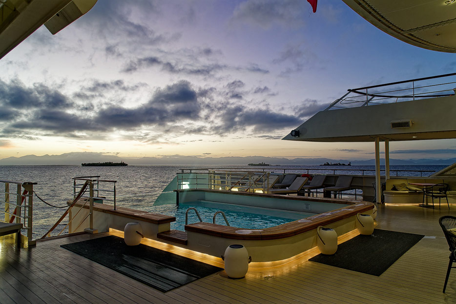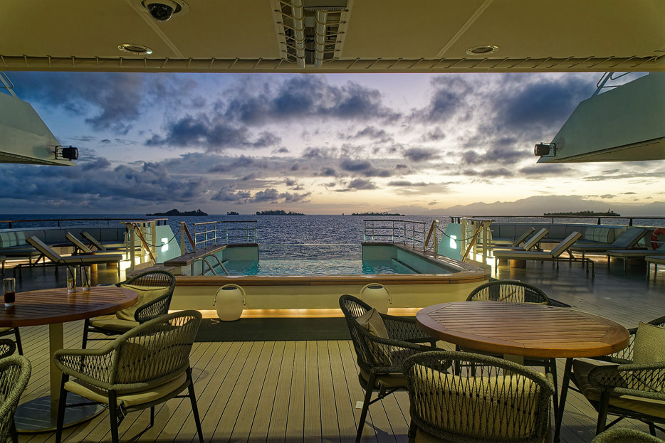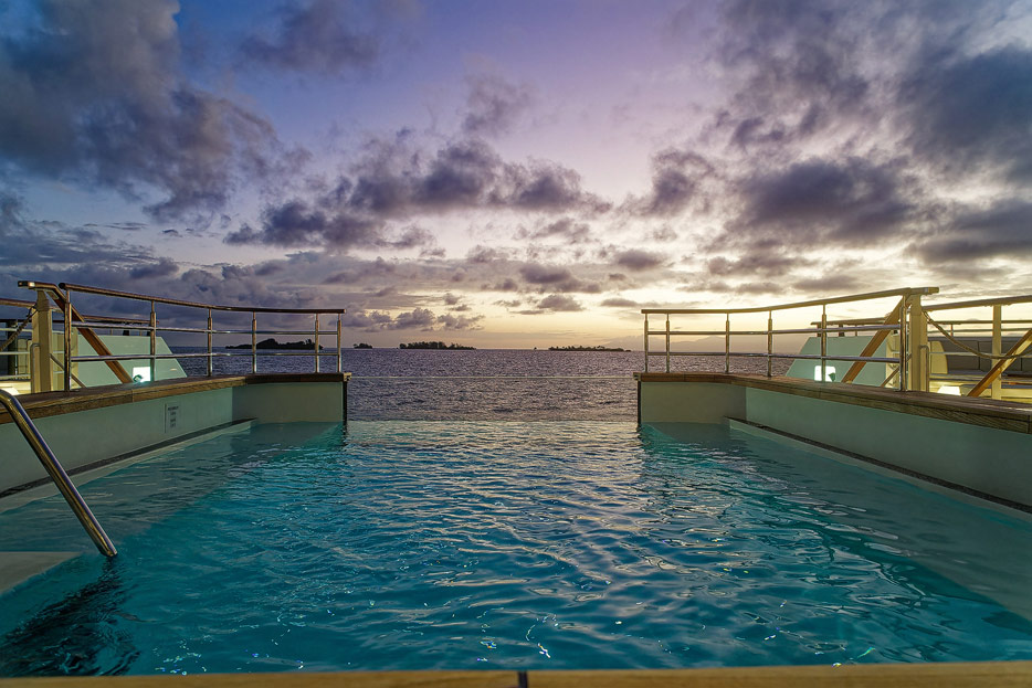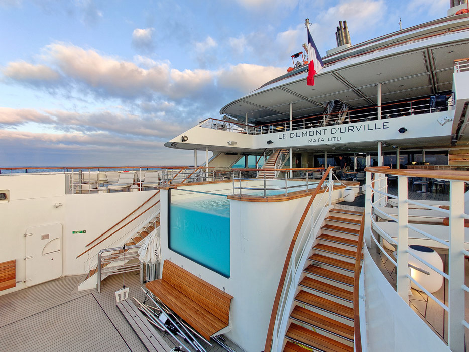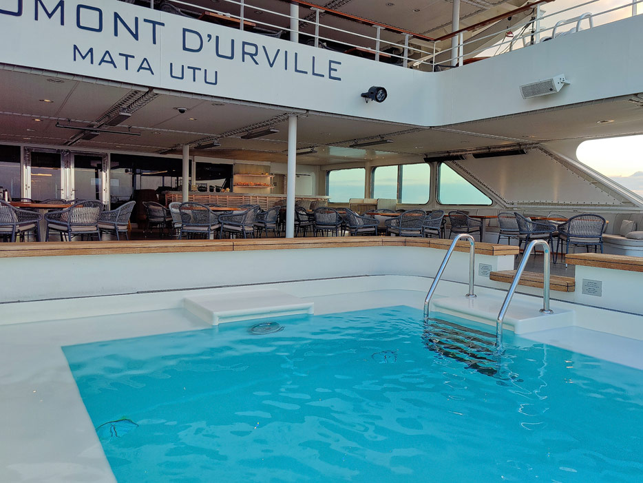 Bilder der Infinity-Pools, Pool Grill und Marina der Le Dumont D'Urville