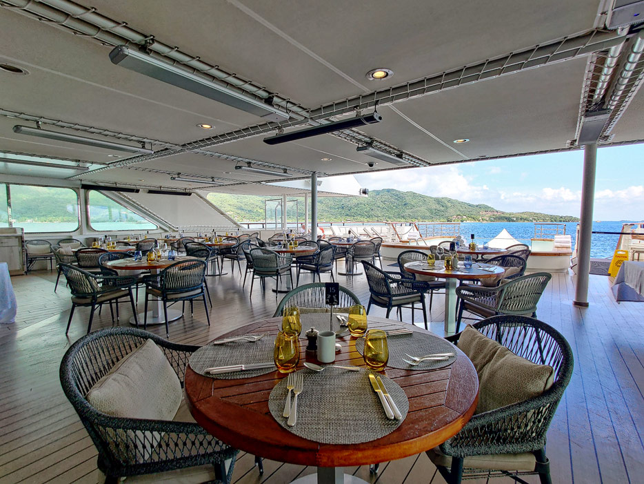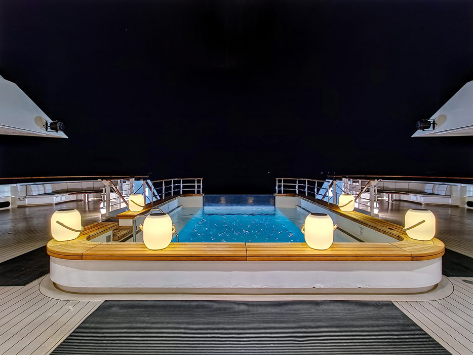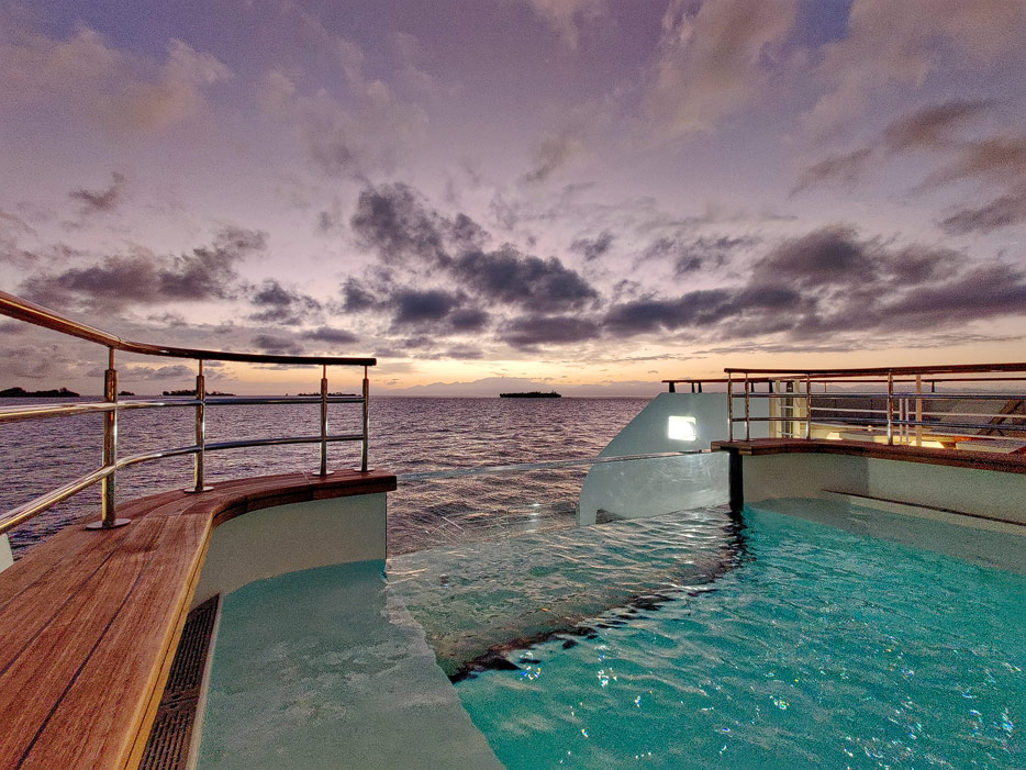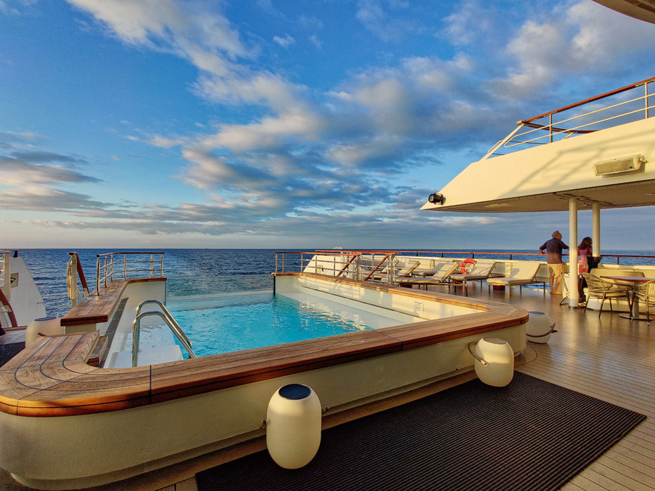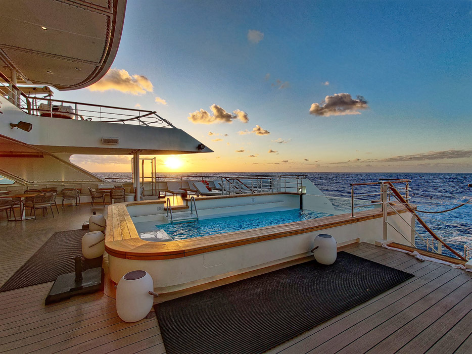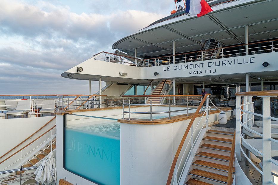 Bilder der Infinity-Pools, Pool Grill und Marina der Le Dumont D'Urville