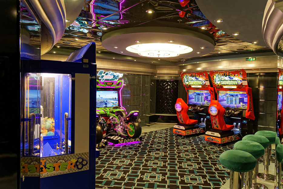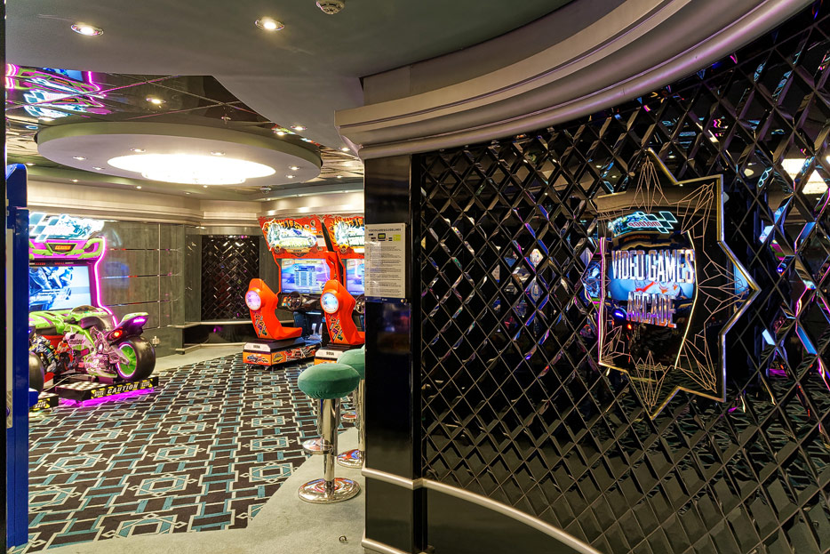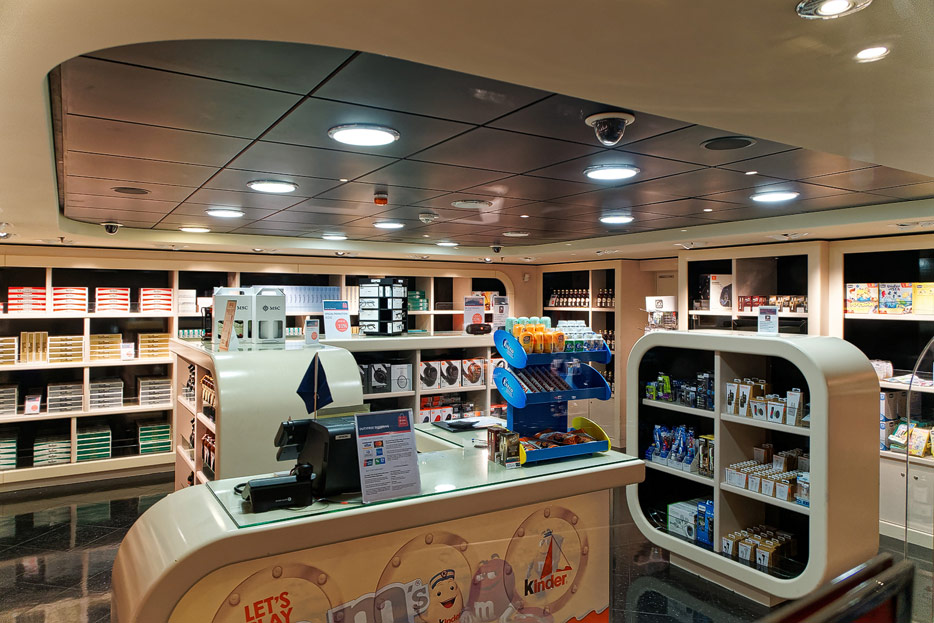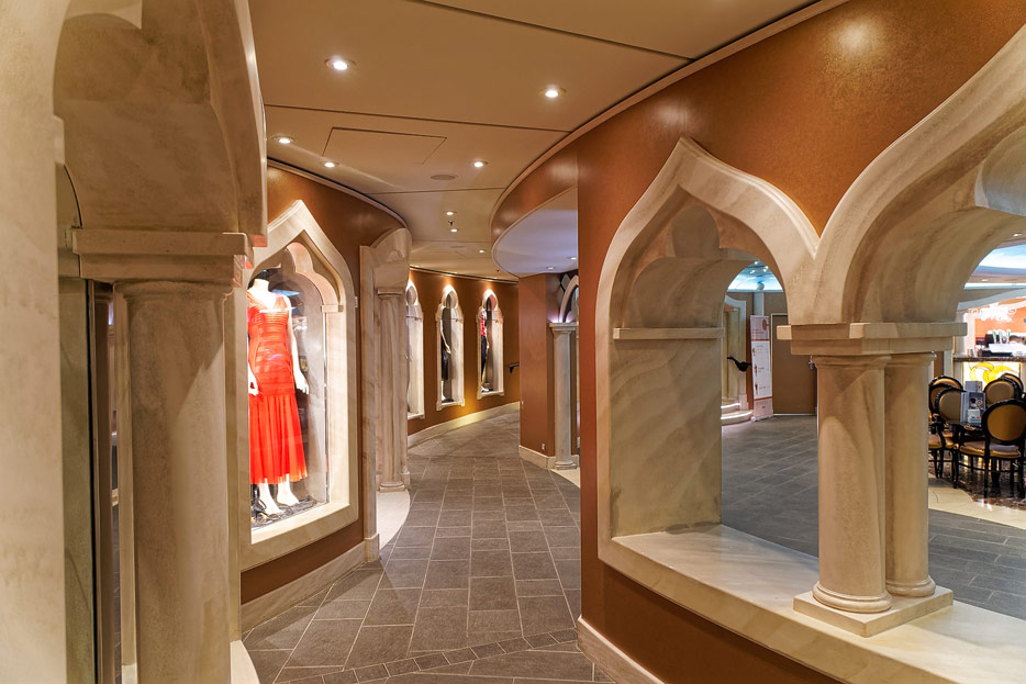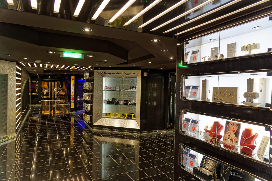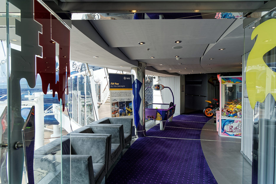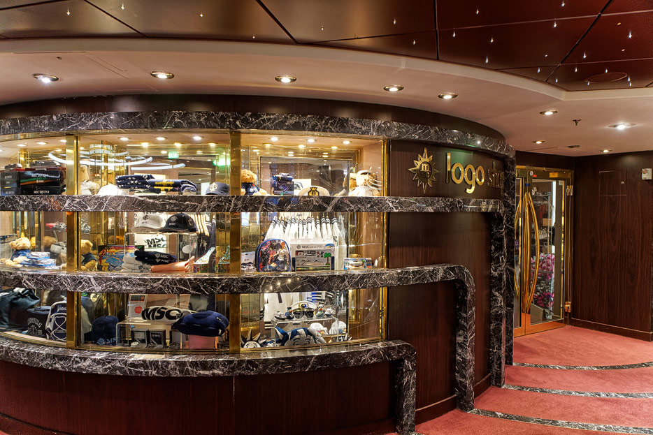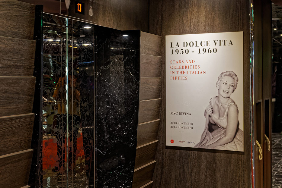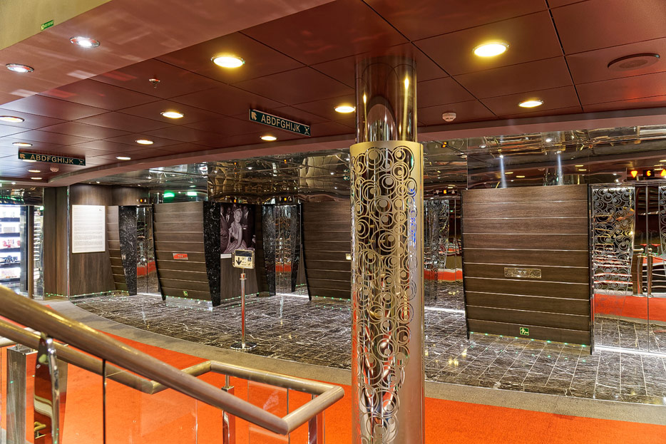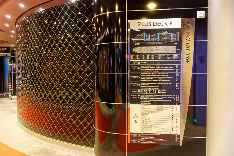 Sonstige Bereiche auf der MSC Divina: Casino, Shops, Konferenzraum, Theater, Spielcasino, Virtual World, Treppen und Aufzüge, Kunstgalerie