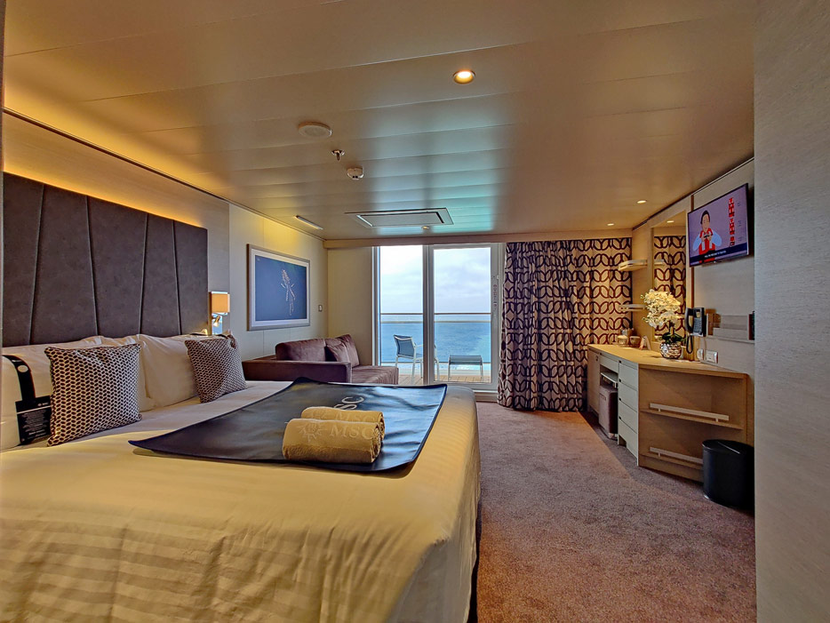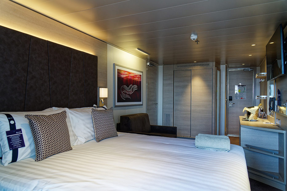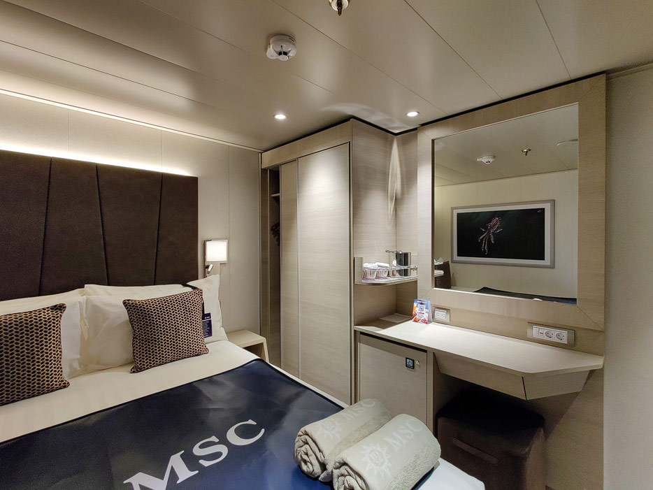 Bilder zahlreicher Kabinen- und Suiten-Typen auf der MSC Euribia inklusive MSC Yacht Club