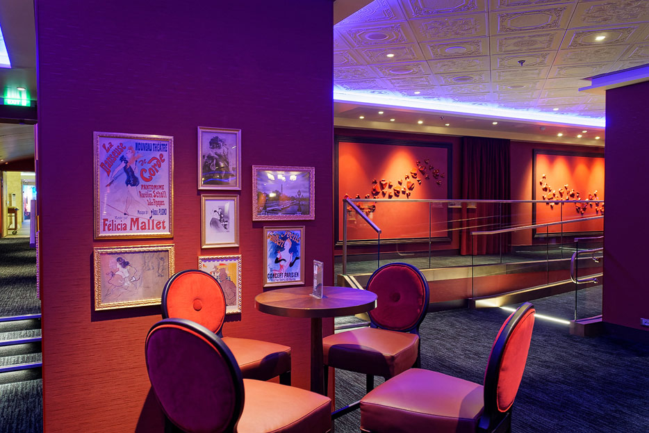 Bilder von Entertainment-Bereichen der MSC Seashore: Theater, Le Cabaret Rouge, Hall of Games, Casino