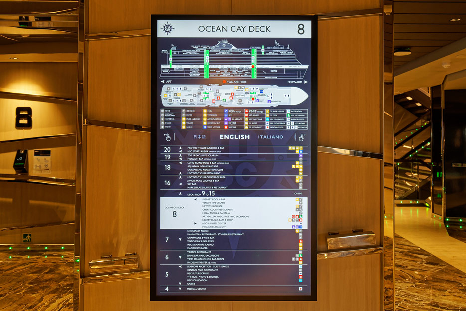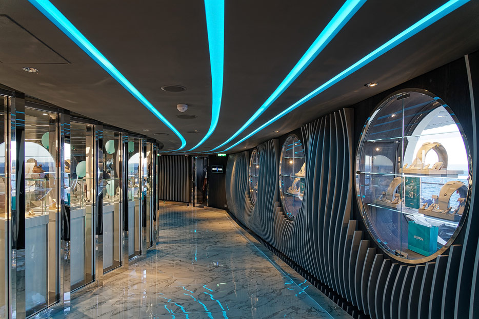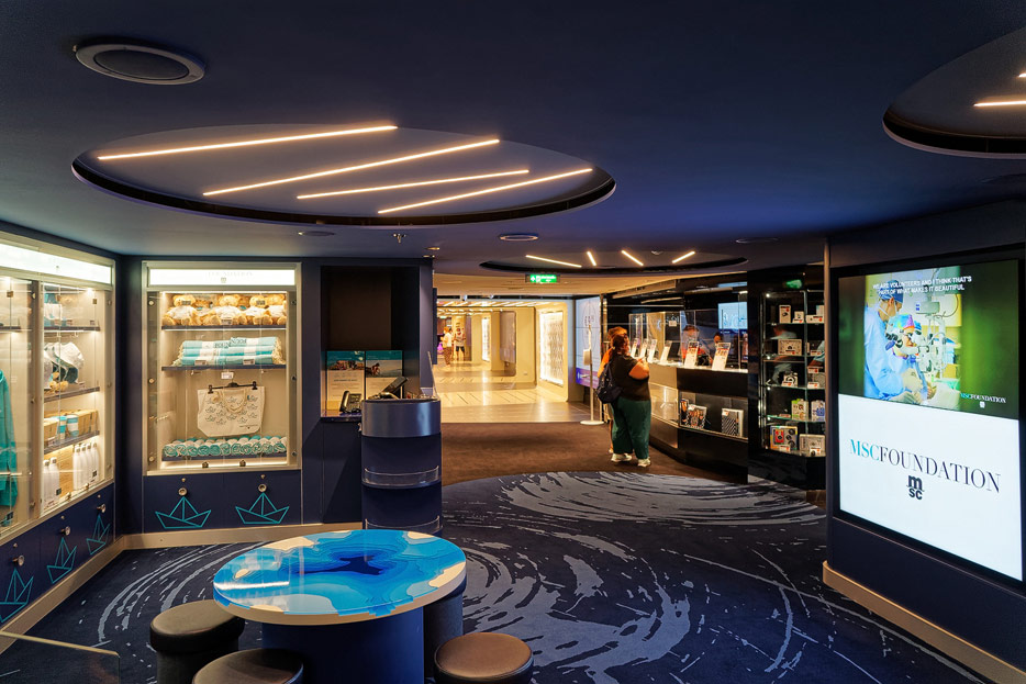 Sonstige Bereiche der MSC Seashore: Shopping & Liberty Plaza, Treppen, Aufzüge, MSC Foundation