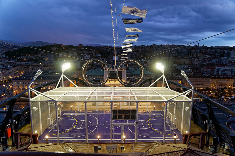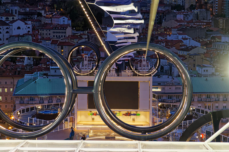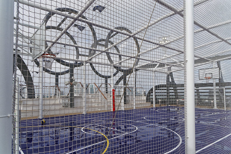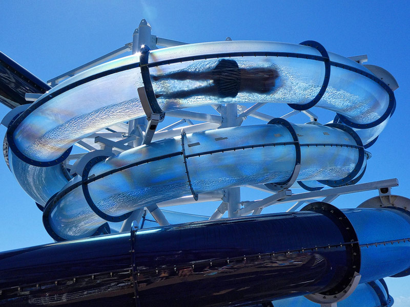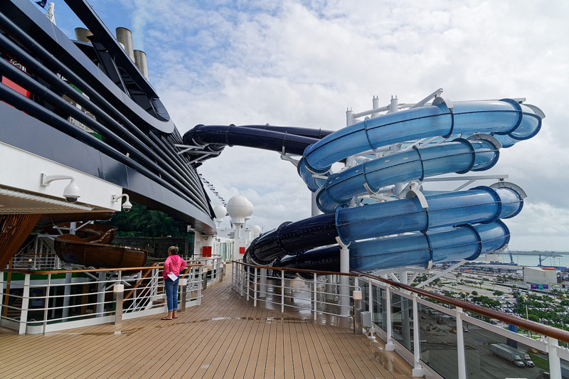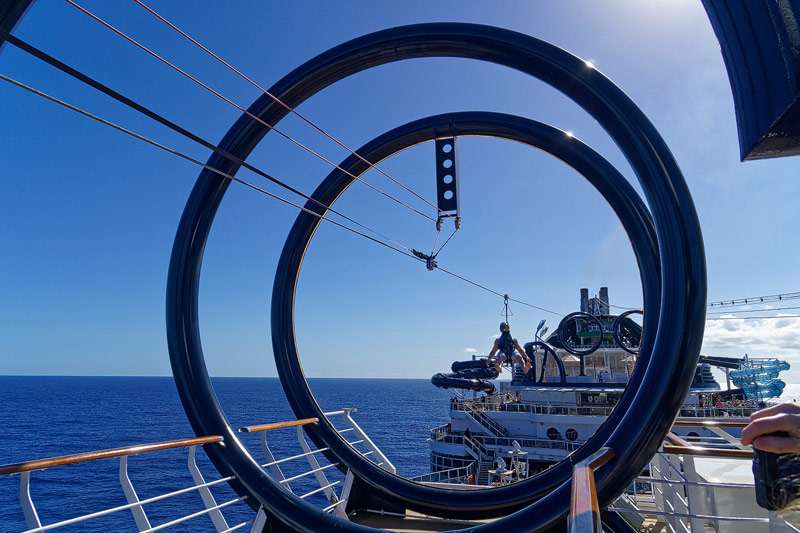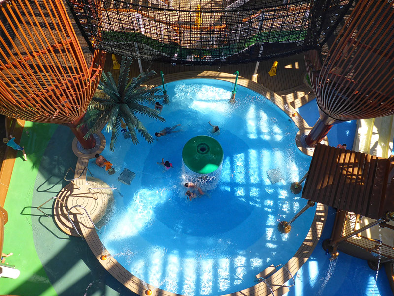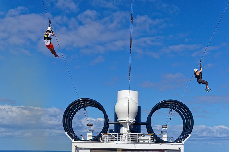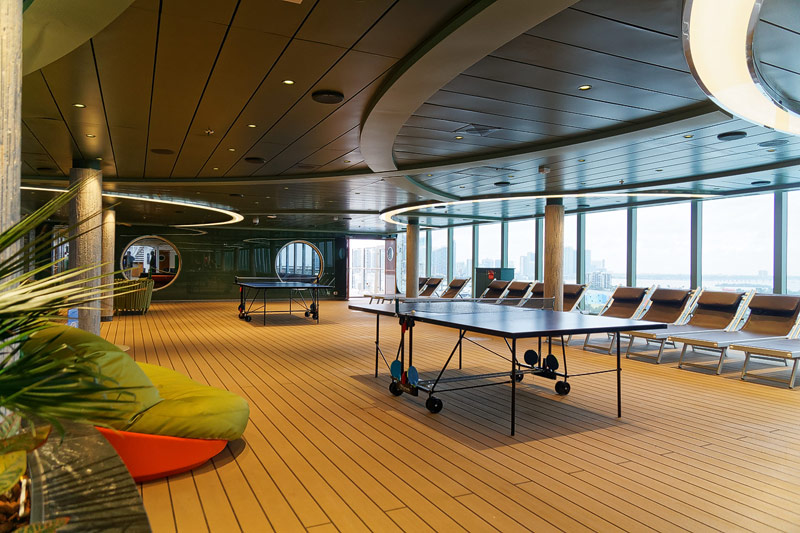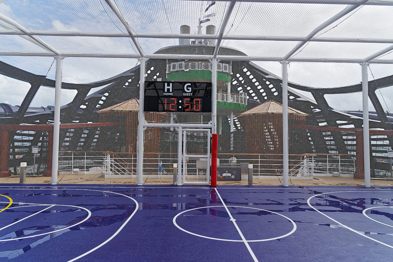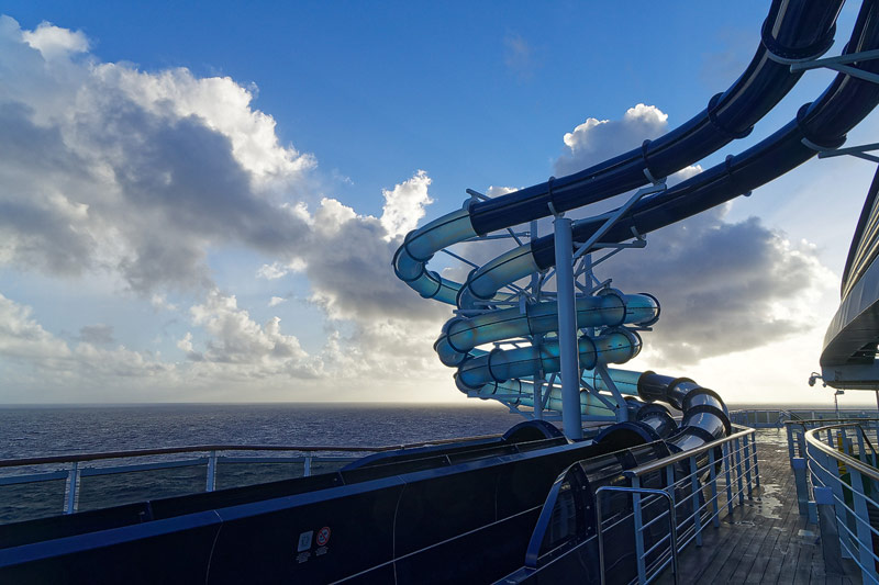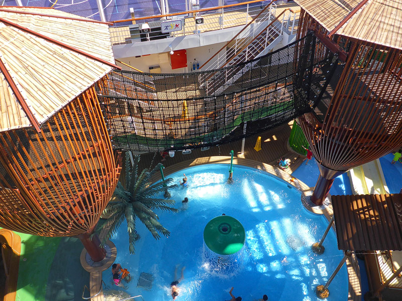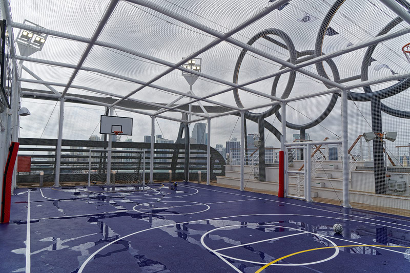 Aussendecks der MSC Seaside: Forest Aquaventure Park, Promenade, Pools, Sorts Arena, Zip-Line, Top 19 Sundeck