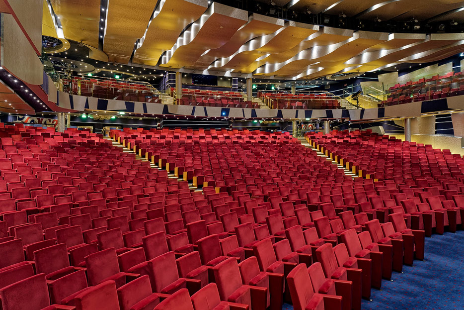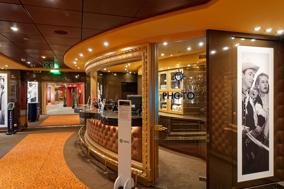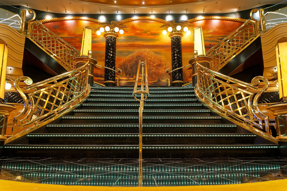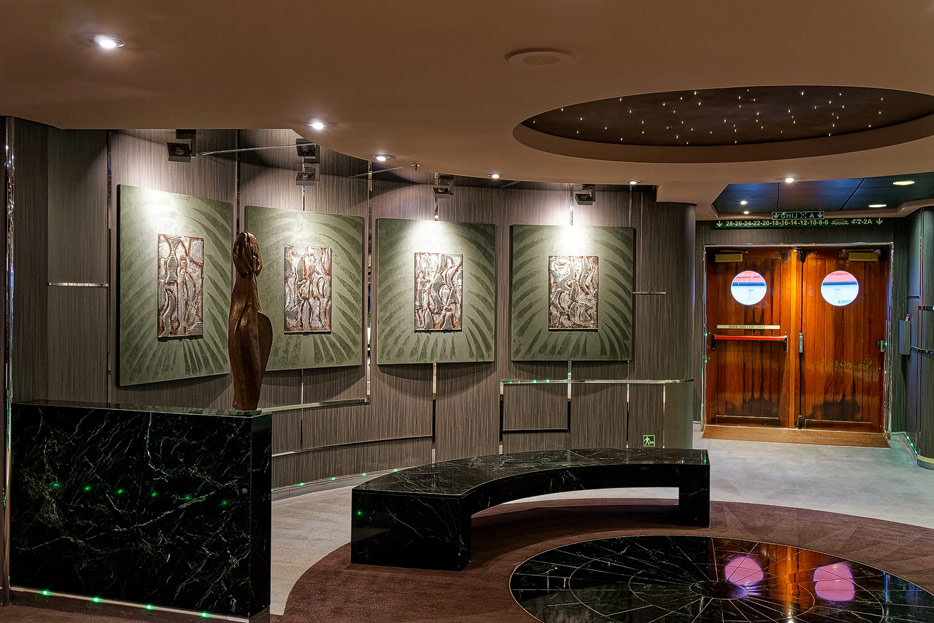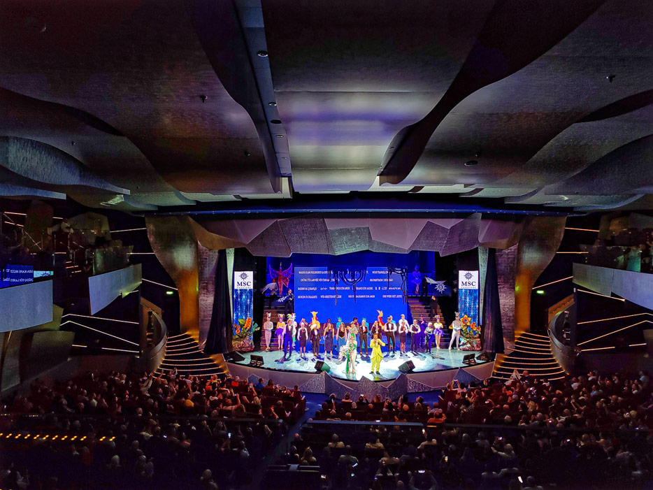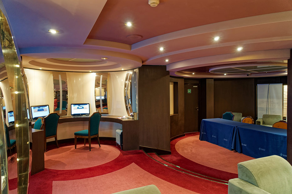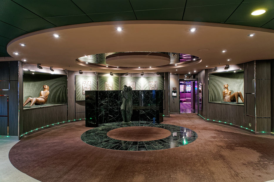 BIlder weiterer Bereiche der MSC Splendida, u.a. Casino, Theater, Bibliothek, Treppenhäuser