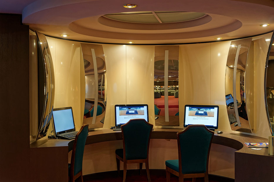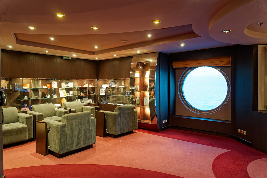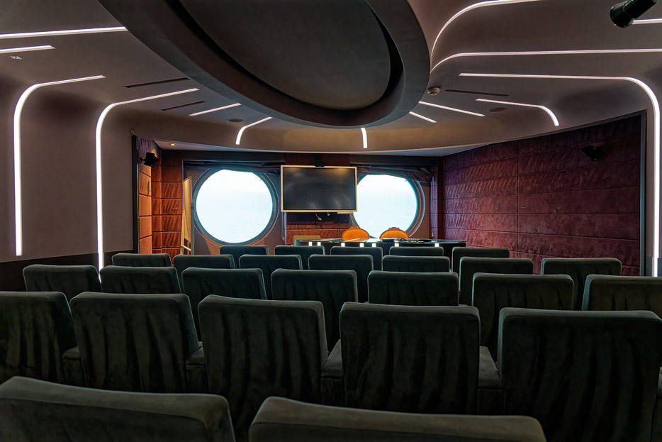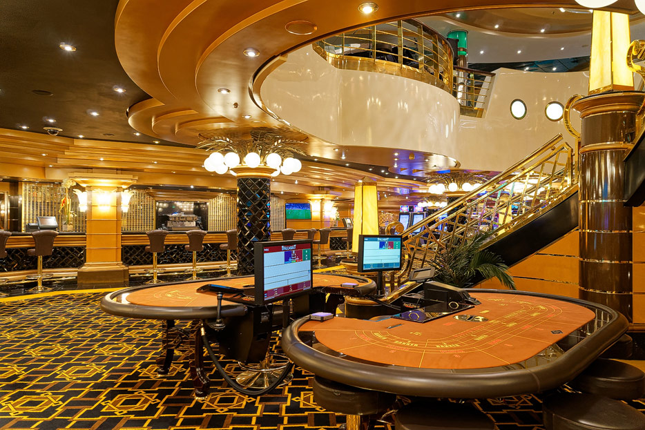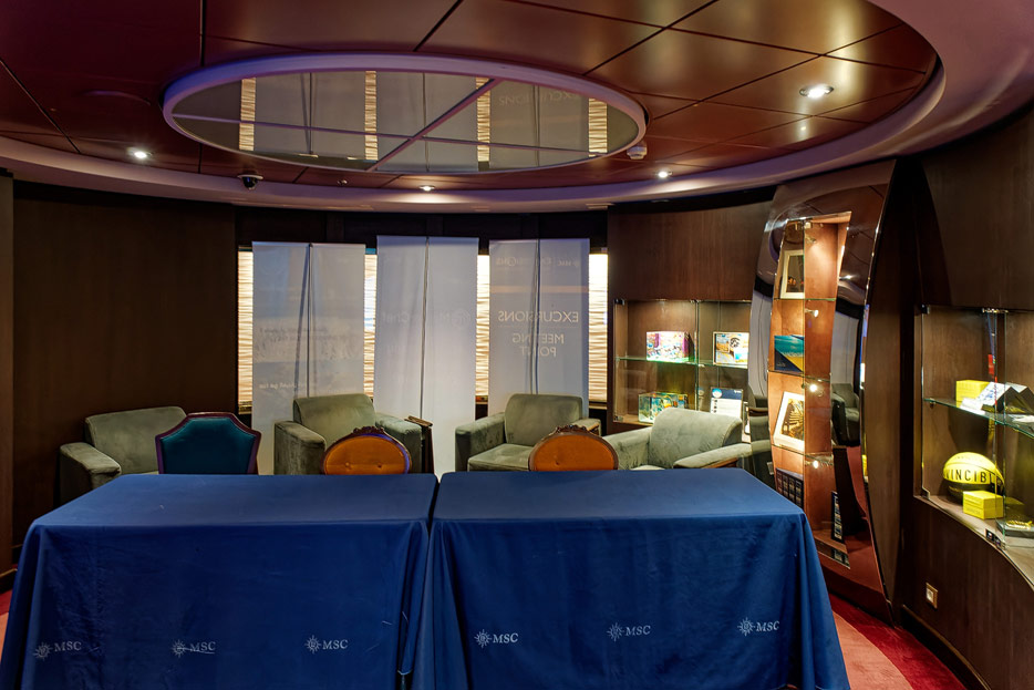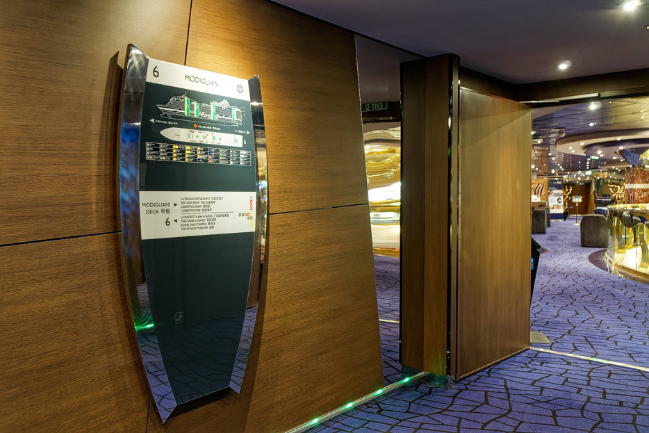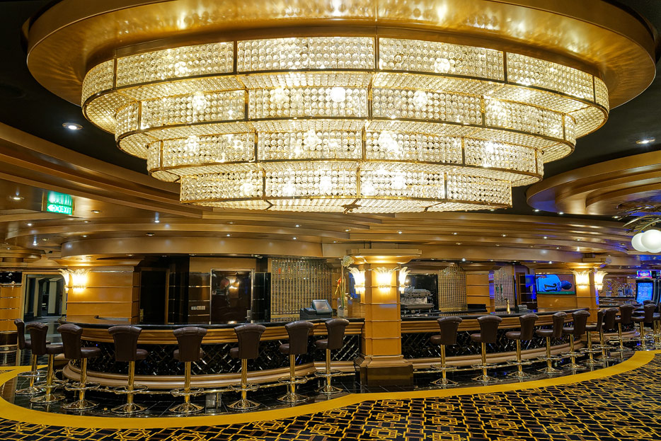 BIlder weiterer Bereiche der MSC Splendida, u.a. Casino, Theater, Bibliothek, Treppenhäuser