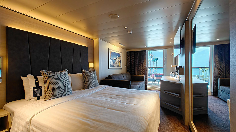 Bilder der Balkonkabine 11204 auf der MSC World America. Weitere Kabinen-Bilder finden Sie im Bereich "Yacht Club".