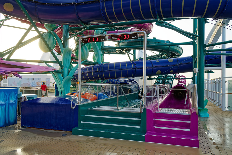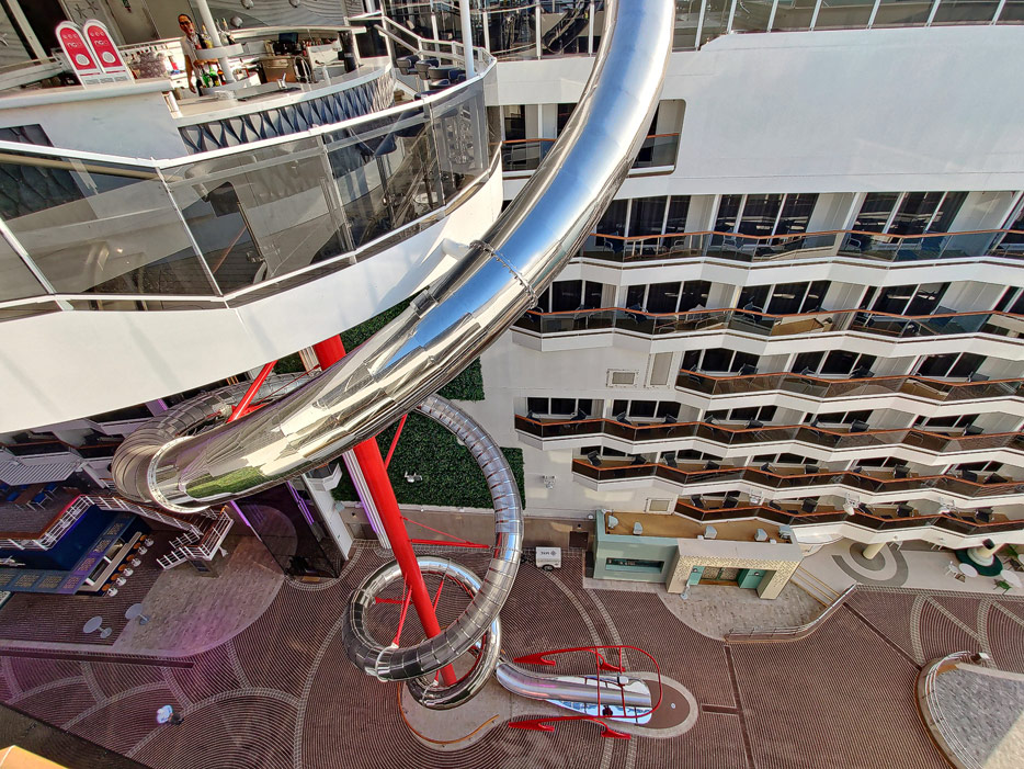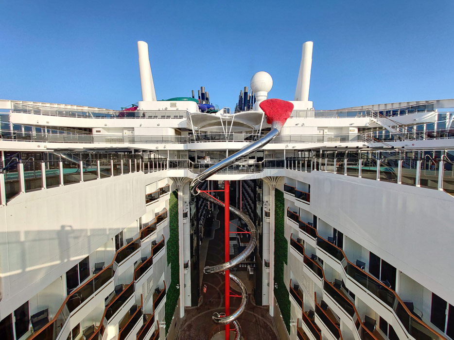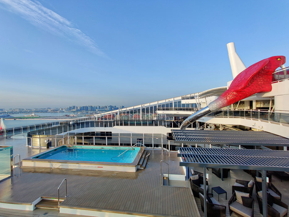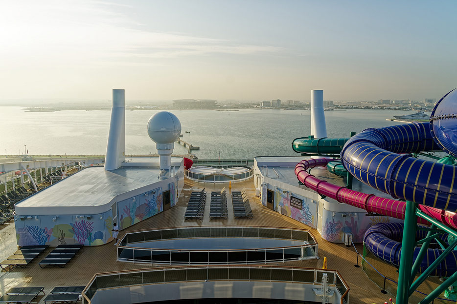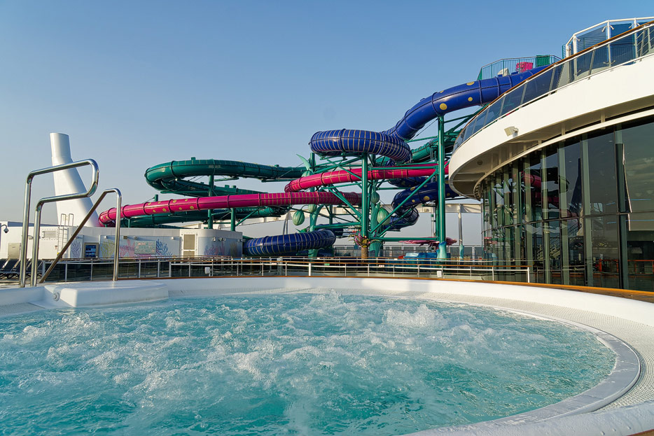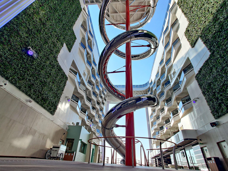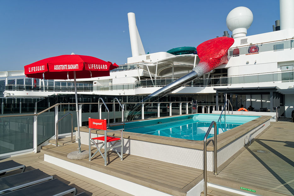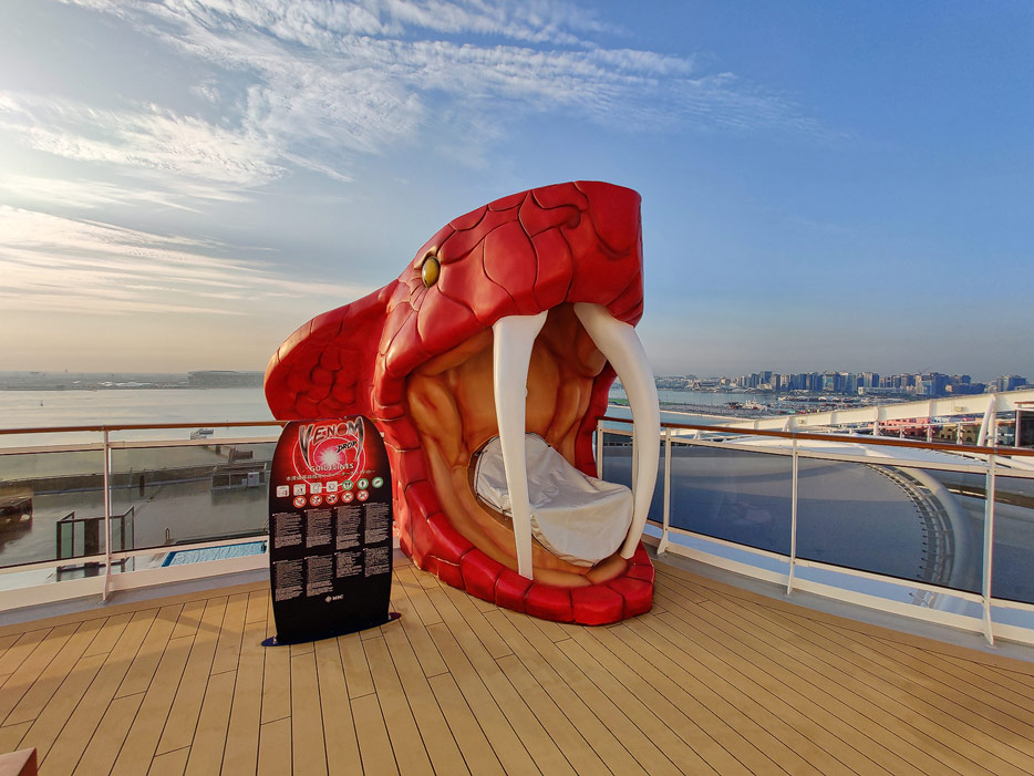 Außenbereiche, Pools und Rutsche "Venom Drop @ the Spiral" der MSC World Europa