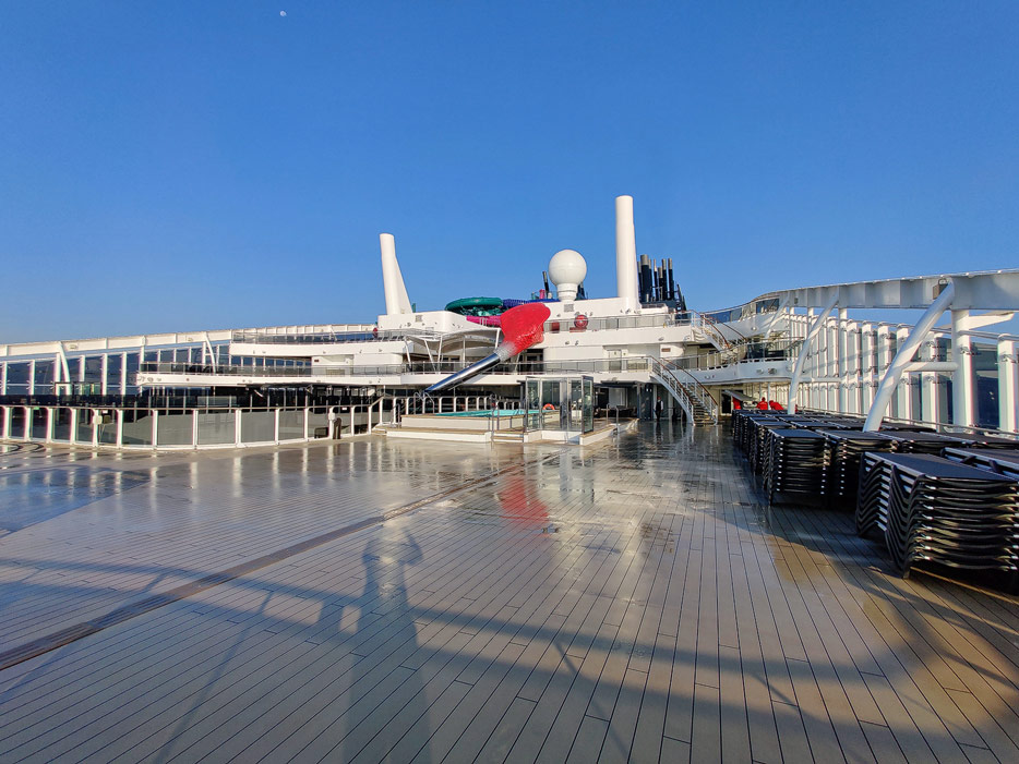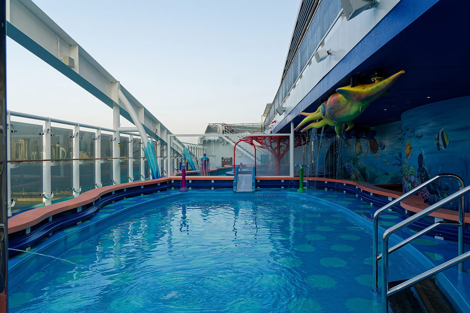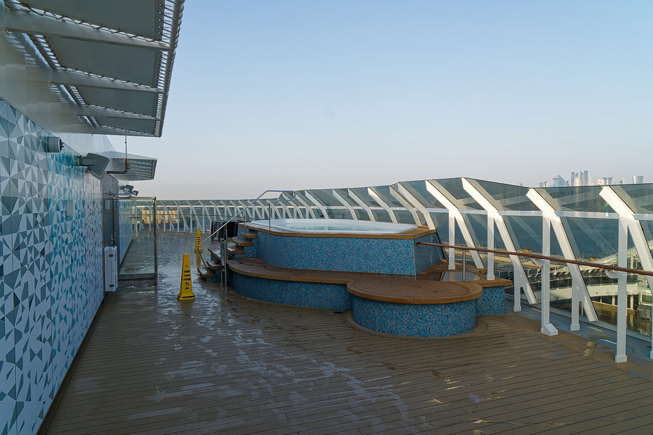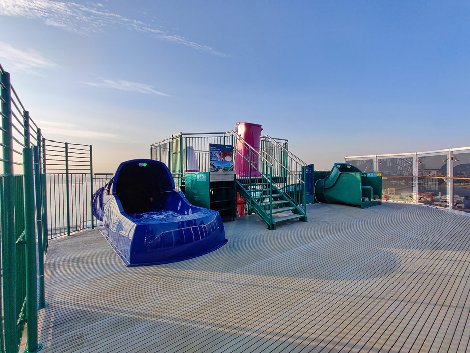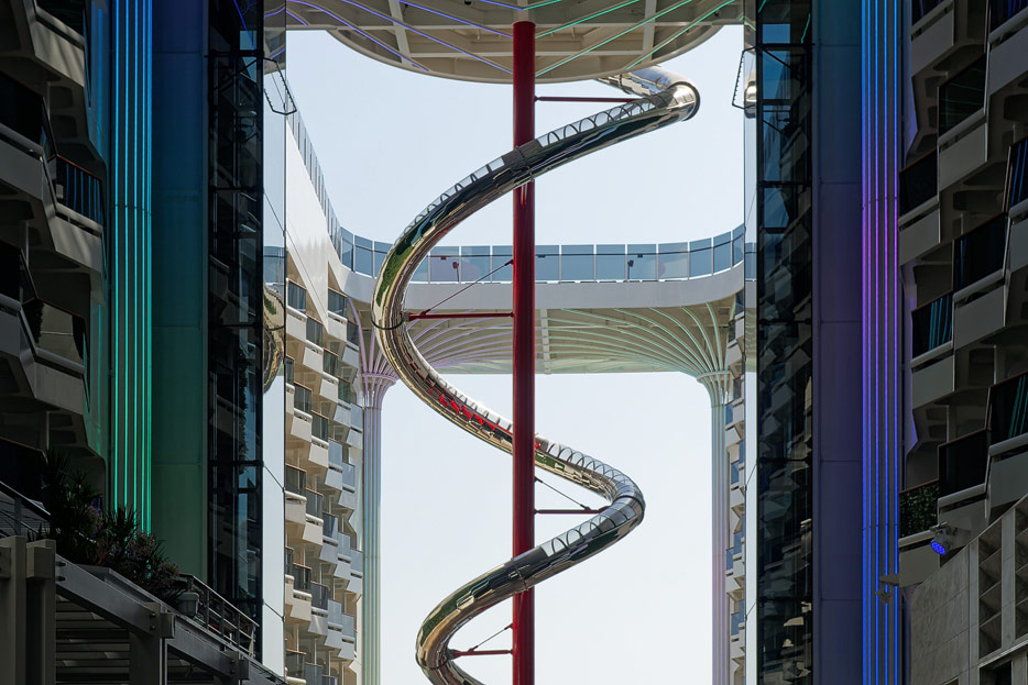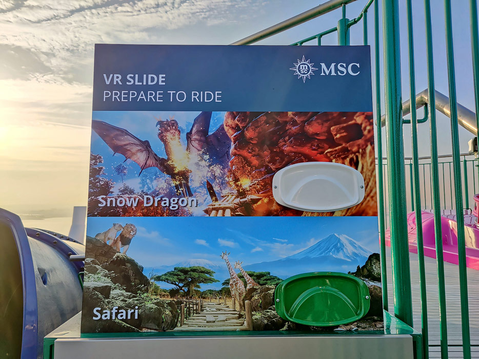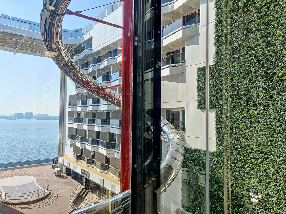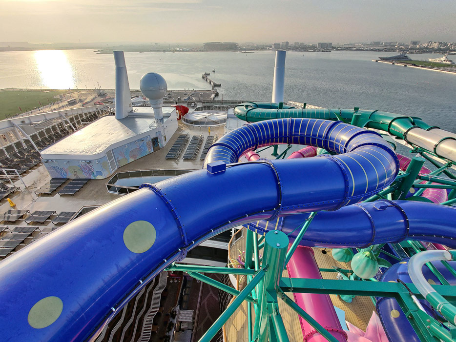 Außenbereiche, Pools und Rutsche "Venom Drop @ the Spiral" der MSC World Europa
