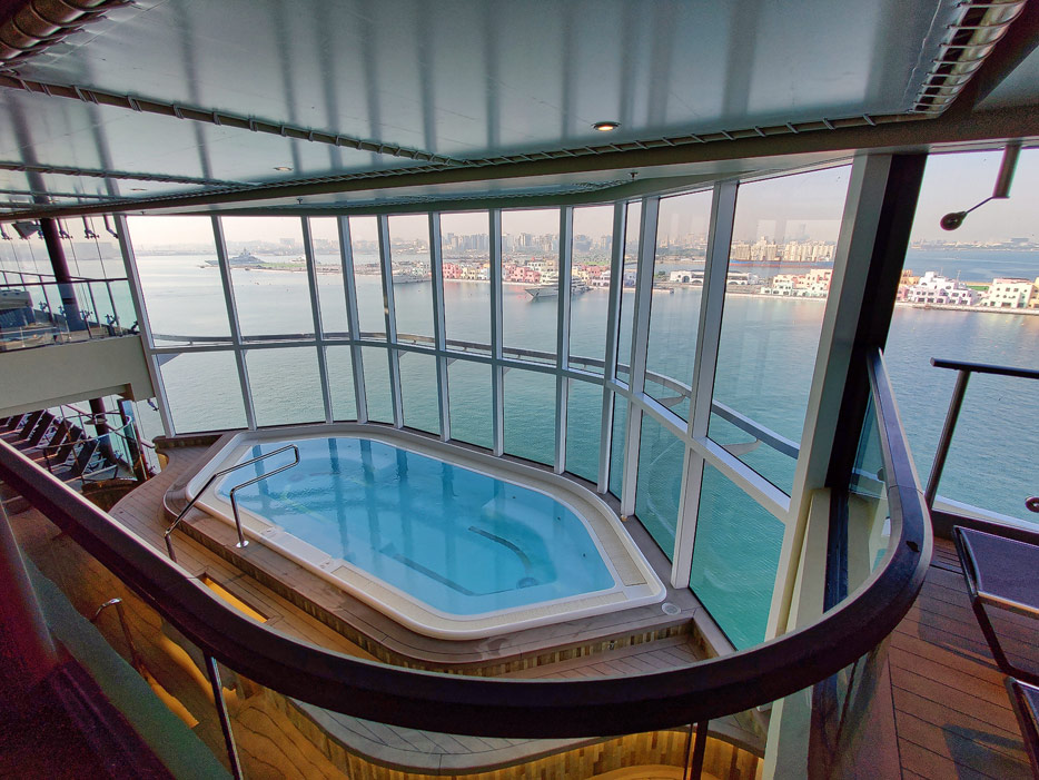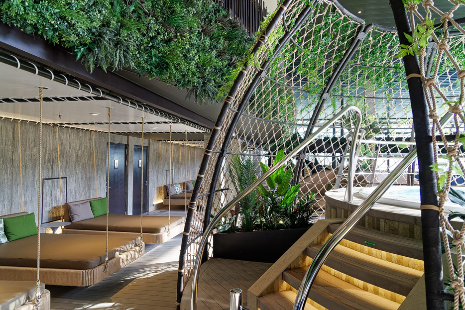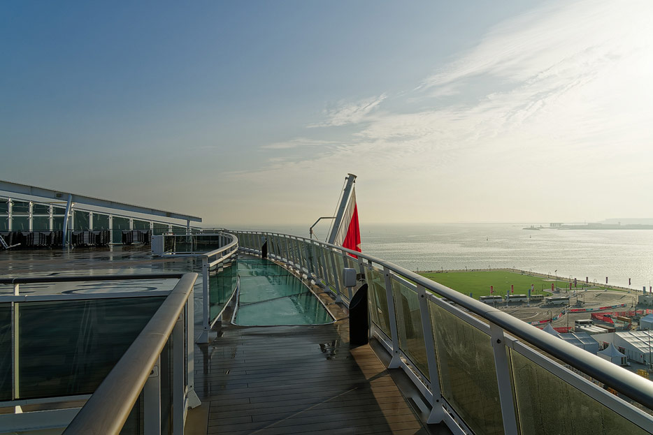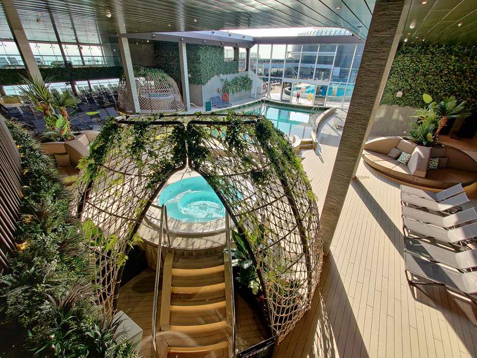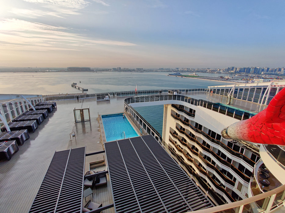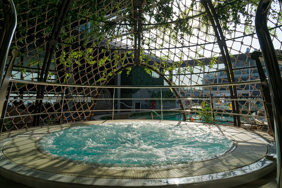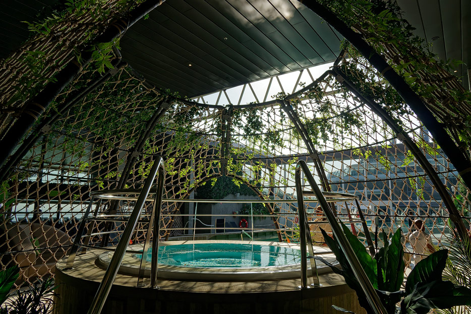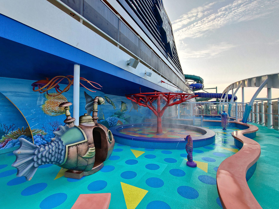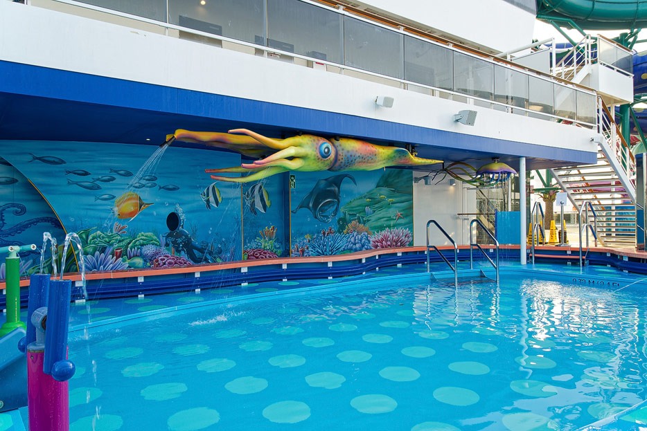 Außenbereiche, Pools und Rutsche "Venom Drop @ the Spiral" der MSC World Europa