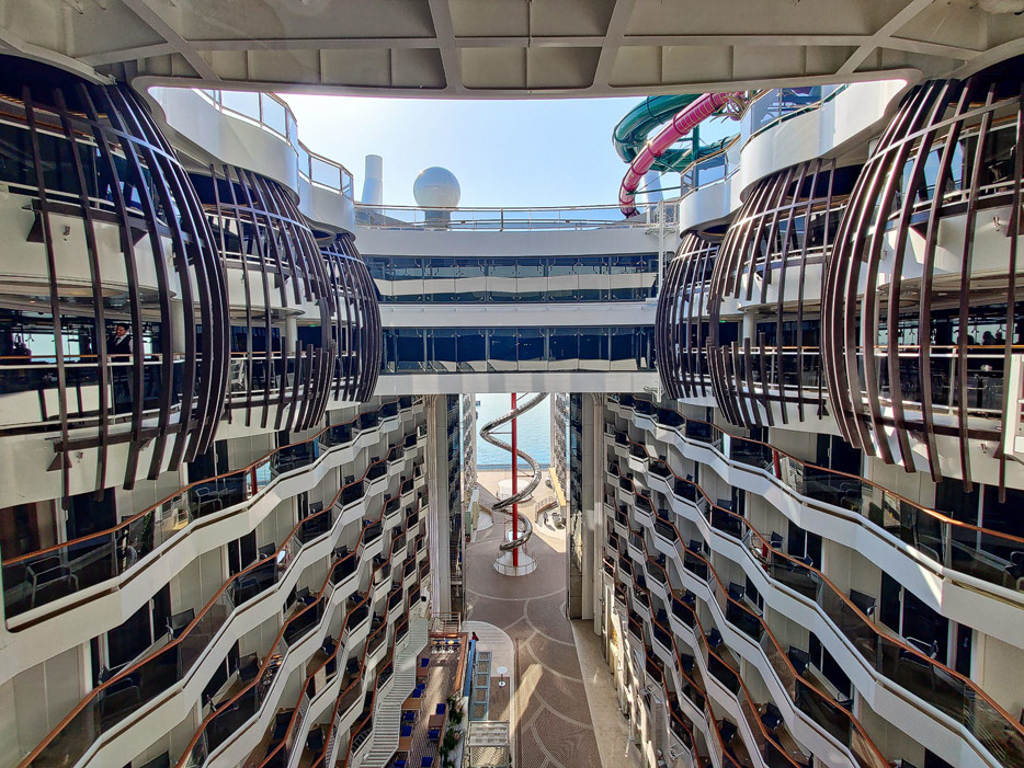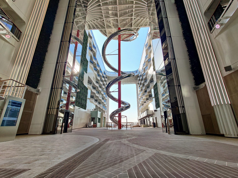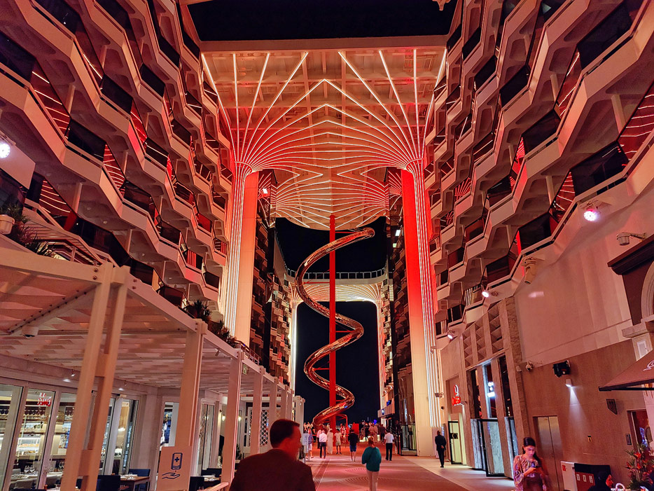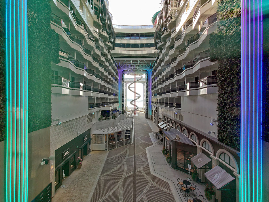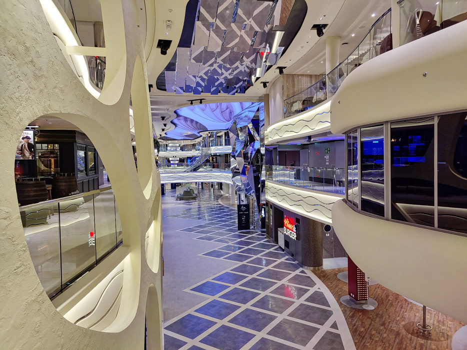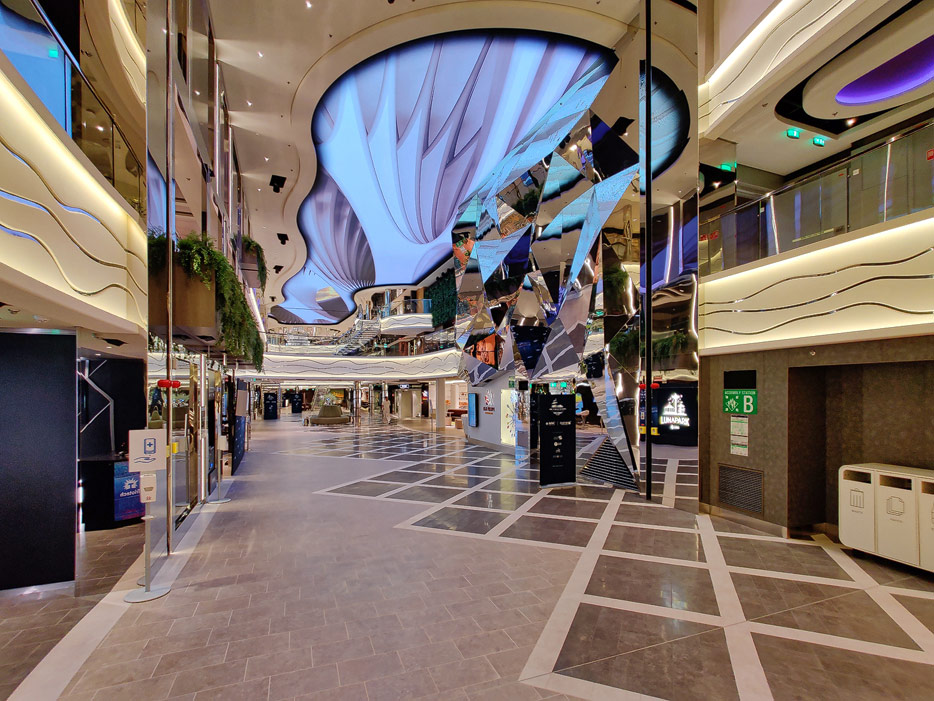 Bilder der World Galleria und World Promenade der MSC World Europa