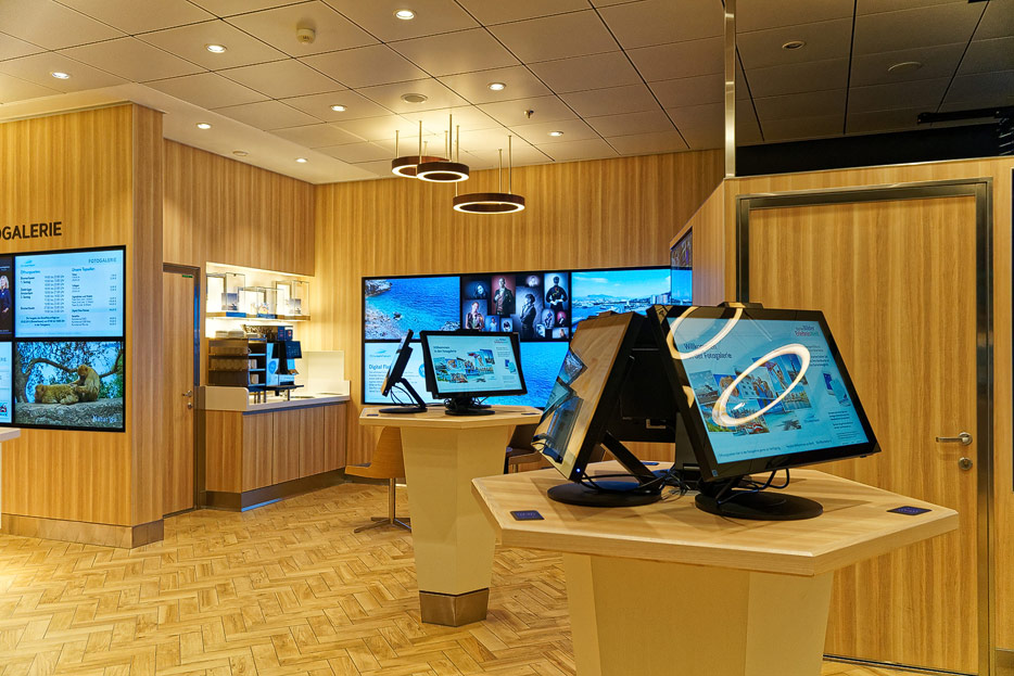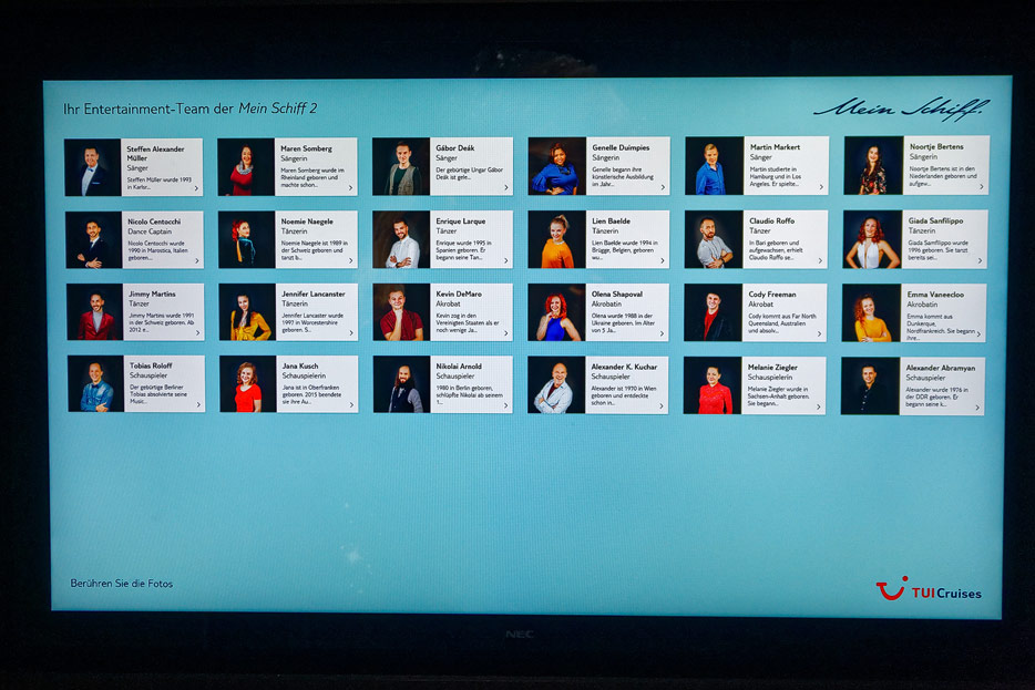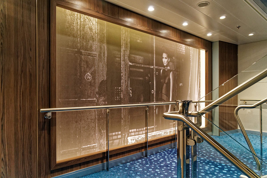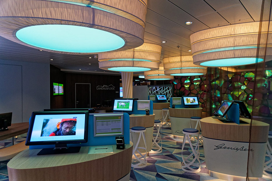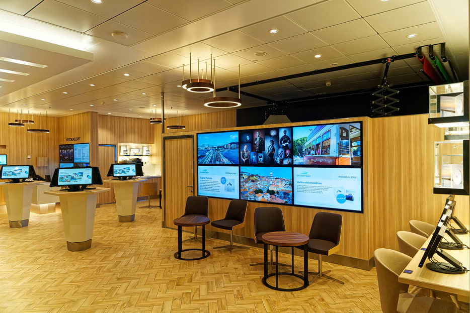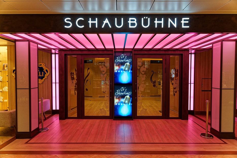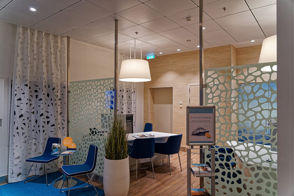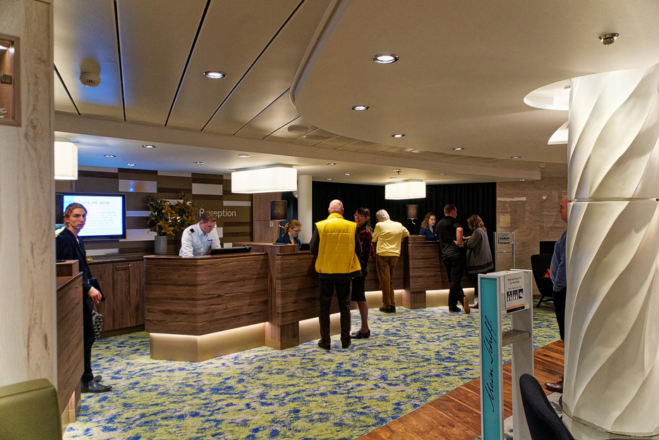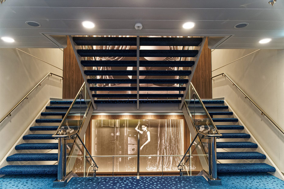 Bilder weiterer Bereiche auf der Mein Schiff 2: Rezeption, Atrium Theater, Schaubühne, Shopping, Konferenzräume, Raucherlounge & Casino, Kunst im Treppenhaus