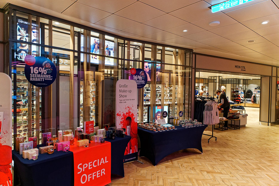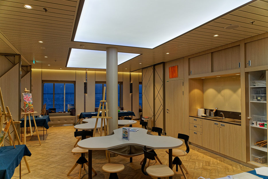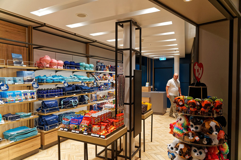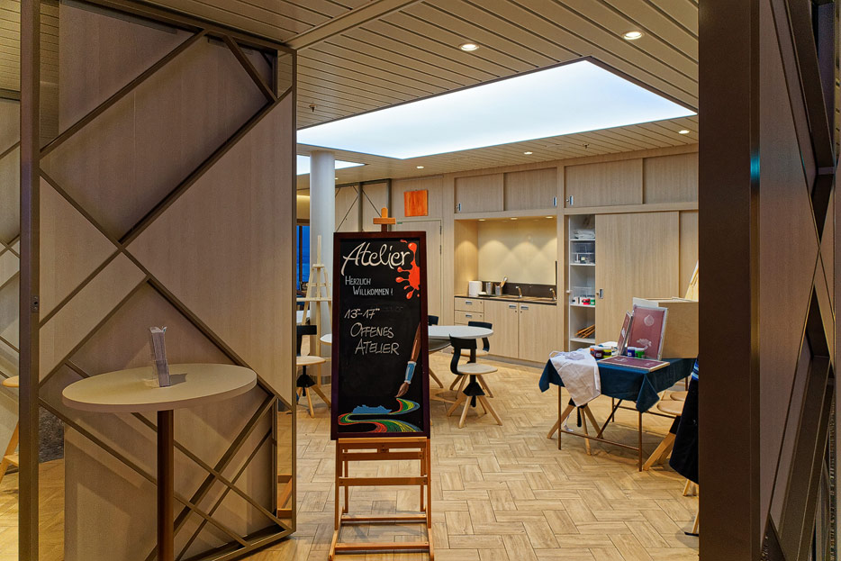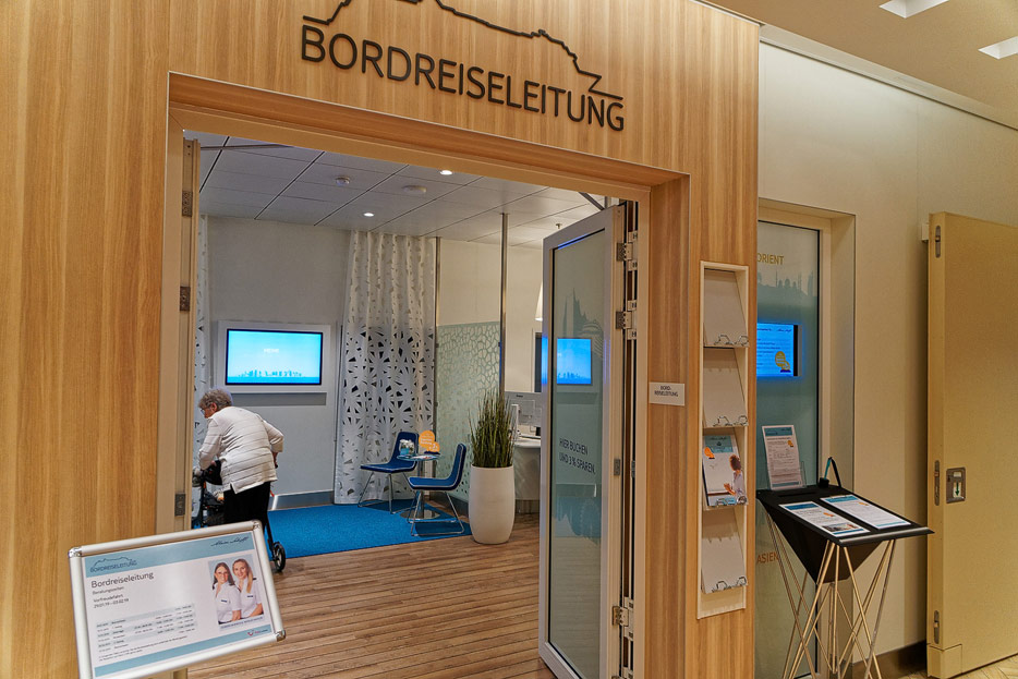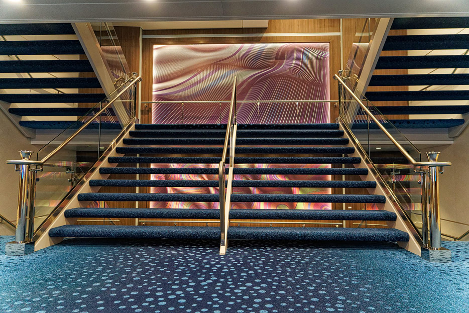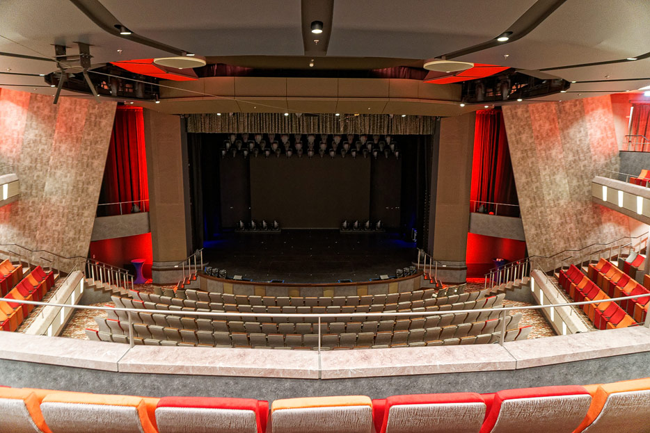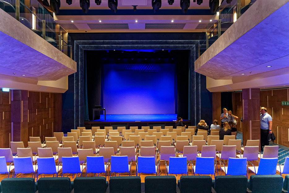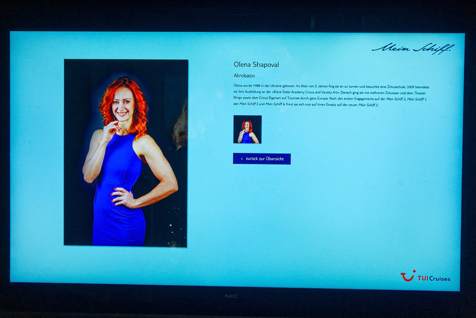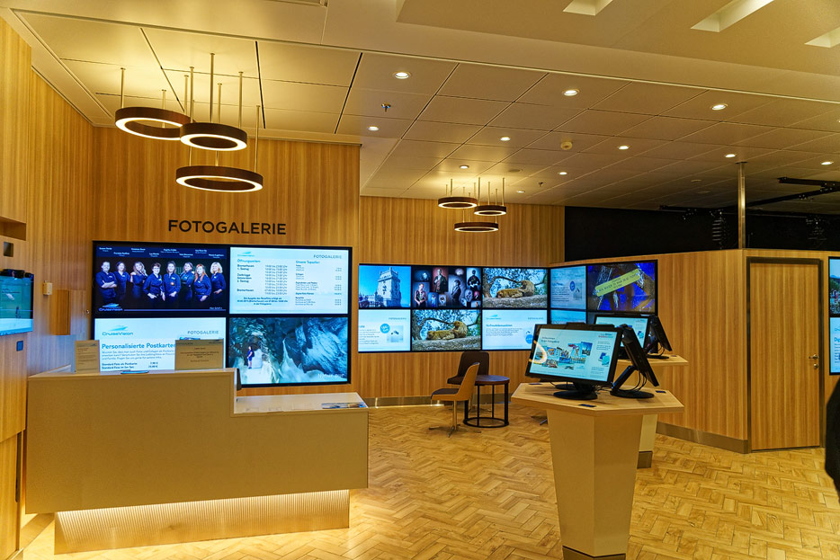 Bilder weiterer Bereiche auf der Mein Schiff 2: Rezeption, Atrium Theater, Schaubühne, Shopping, Konferenzräume, Raucherlounge & Casino, Kunst im Treppenhaus