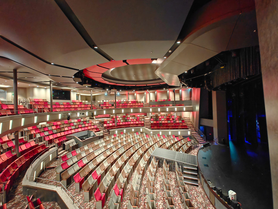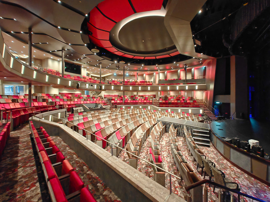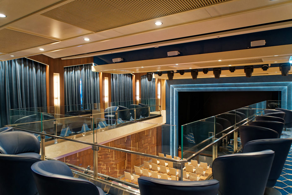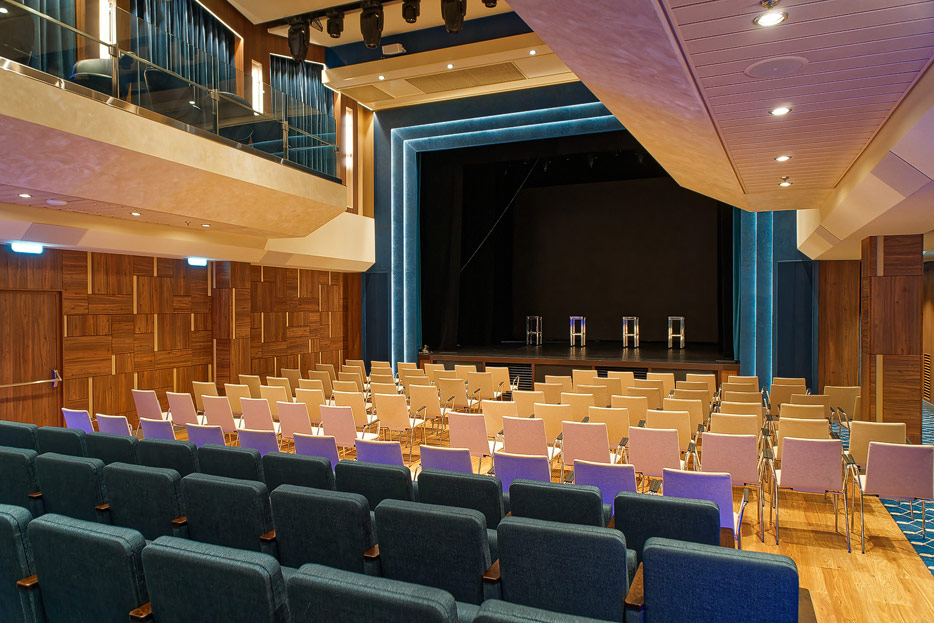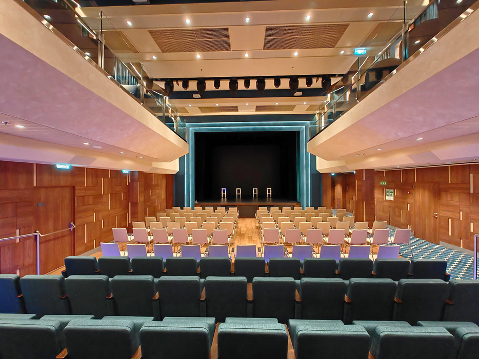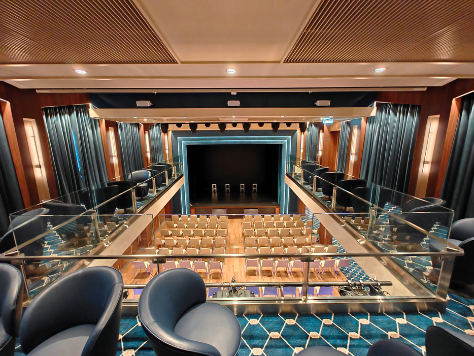 Bilder der wesentlichen Entertainment-Bereiche der Mein Schiff 7: Theater, Schaubühne und Atelier