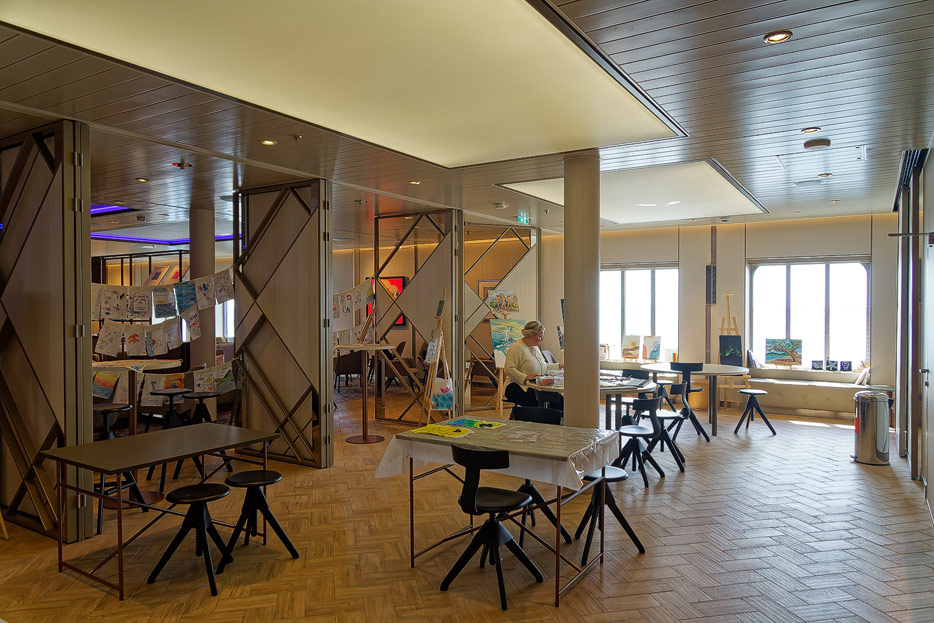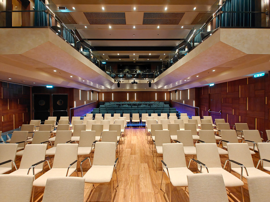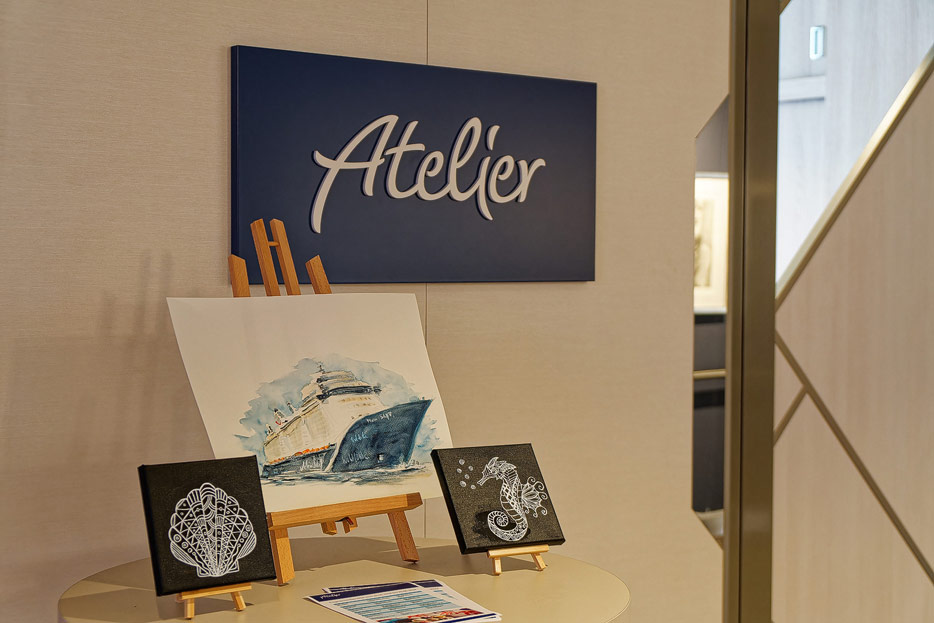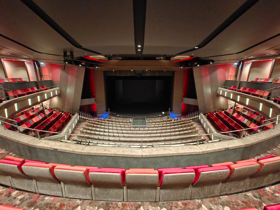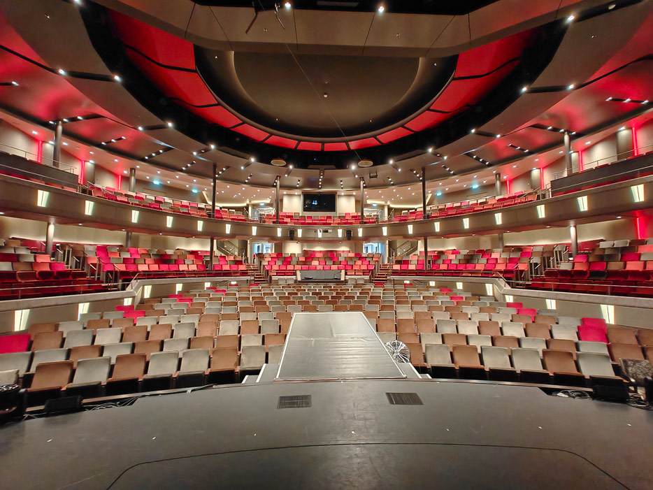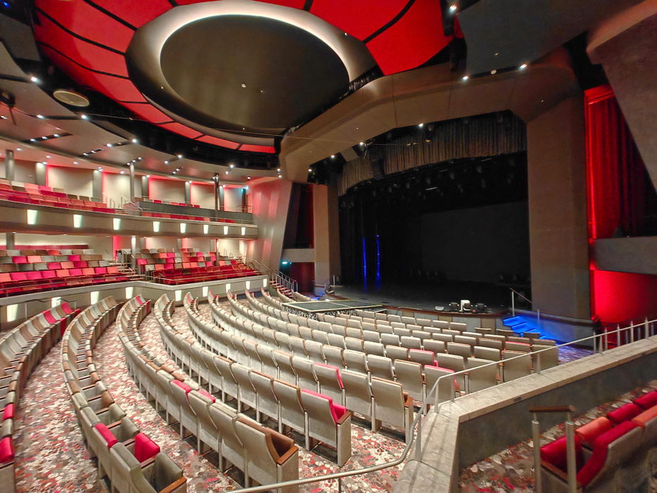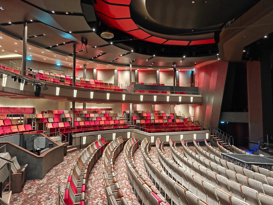 Bilder der wesentlichen Entertainment-Bereiche der Mein Schiff 7: Theater, Schaubühne und Atelier